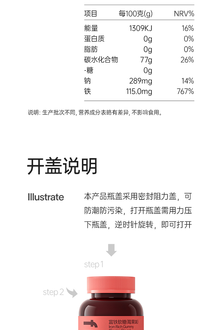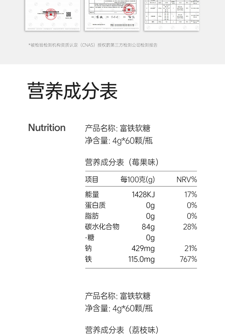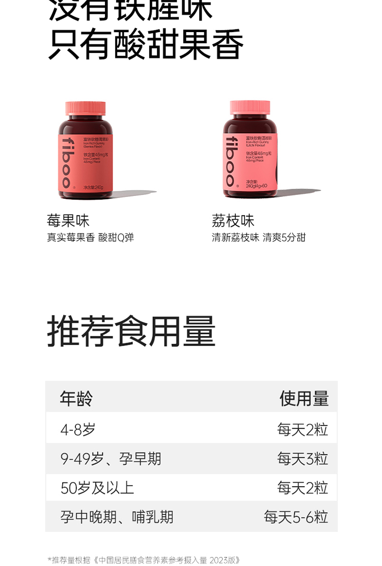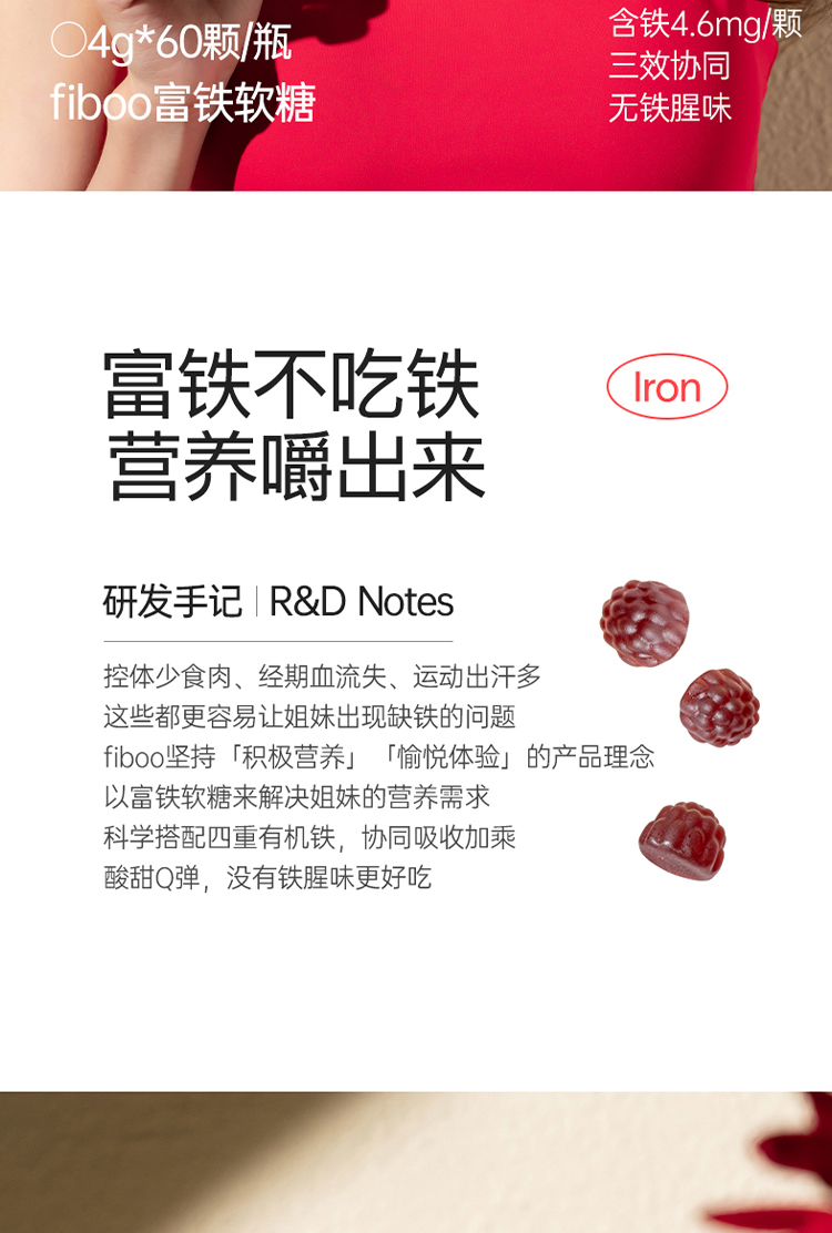 【每颗4.6mg铁】fiboo富铁软糖(莓果味/荔枝味)