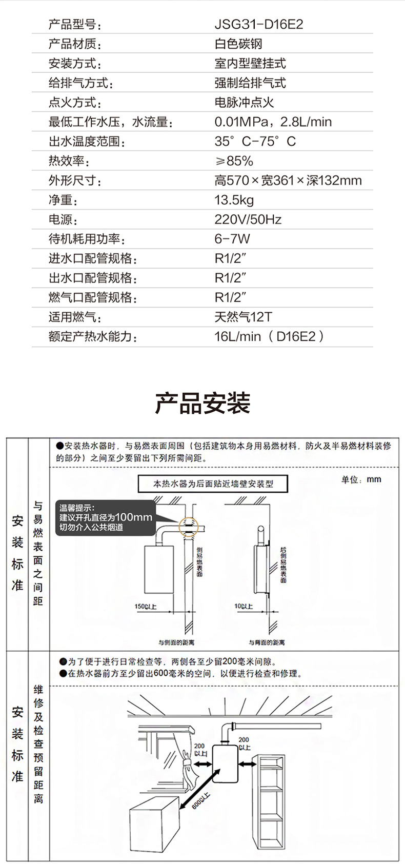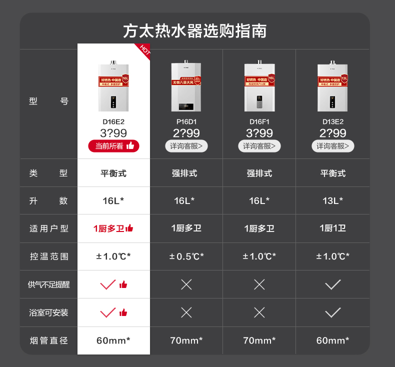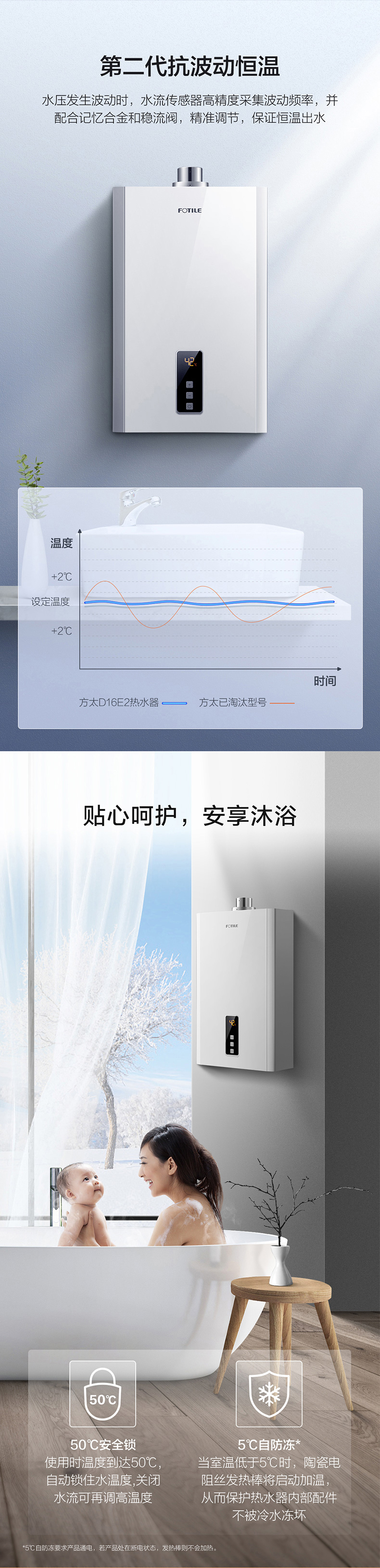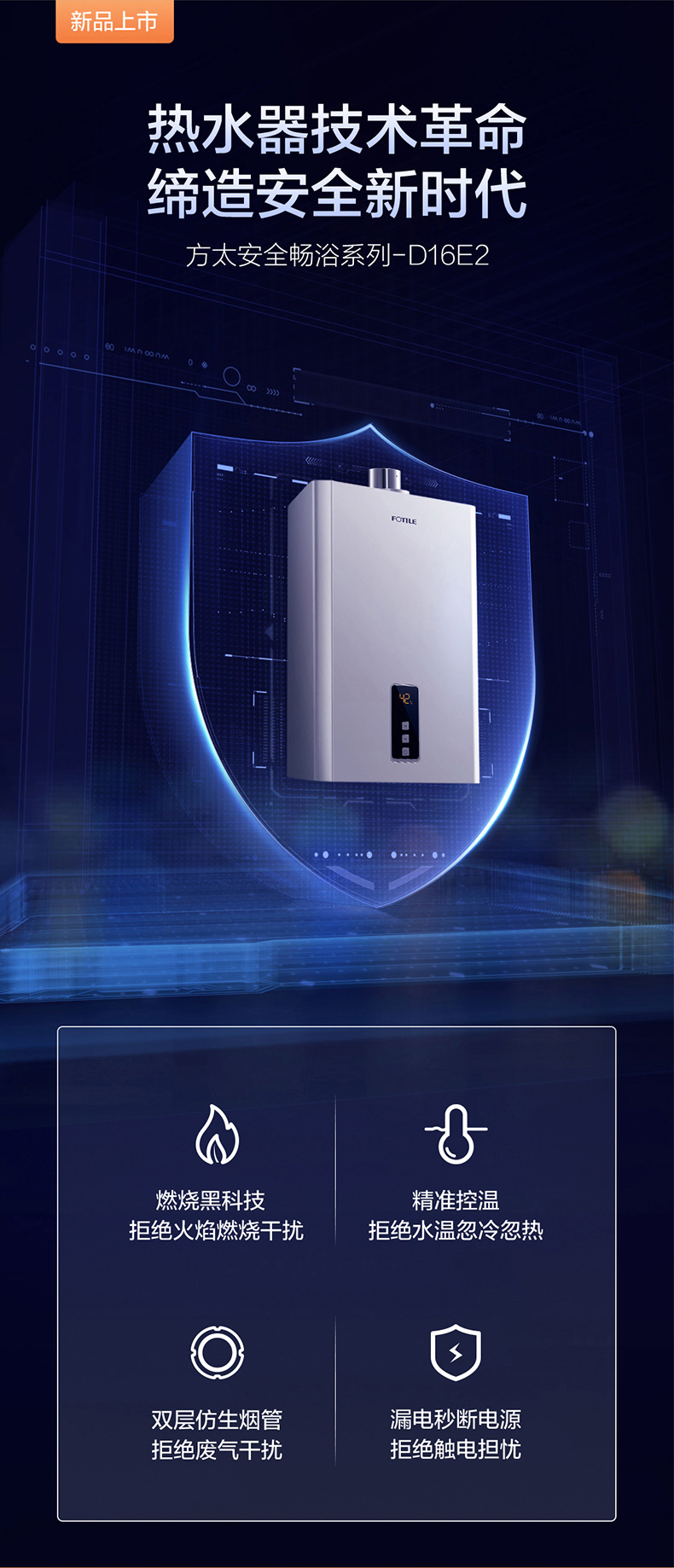方太 智能恒温燃气热水器 16升平衡式防冻热水器天然气 全密闭结构 JSG31-D16E2 以旧换新
