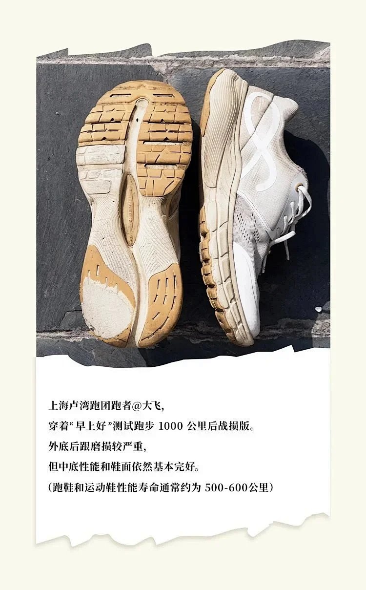 上海卢湾跑团跑者大飞穿着早上好跑鞋跑步1000公里的“战损版”⬇️