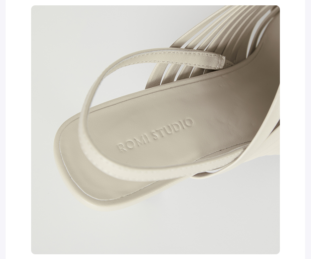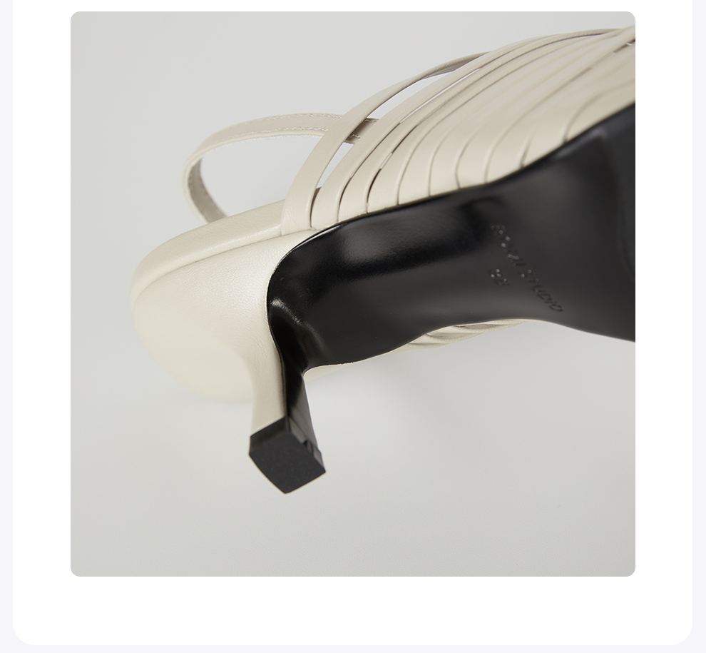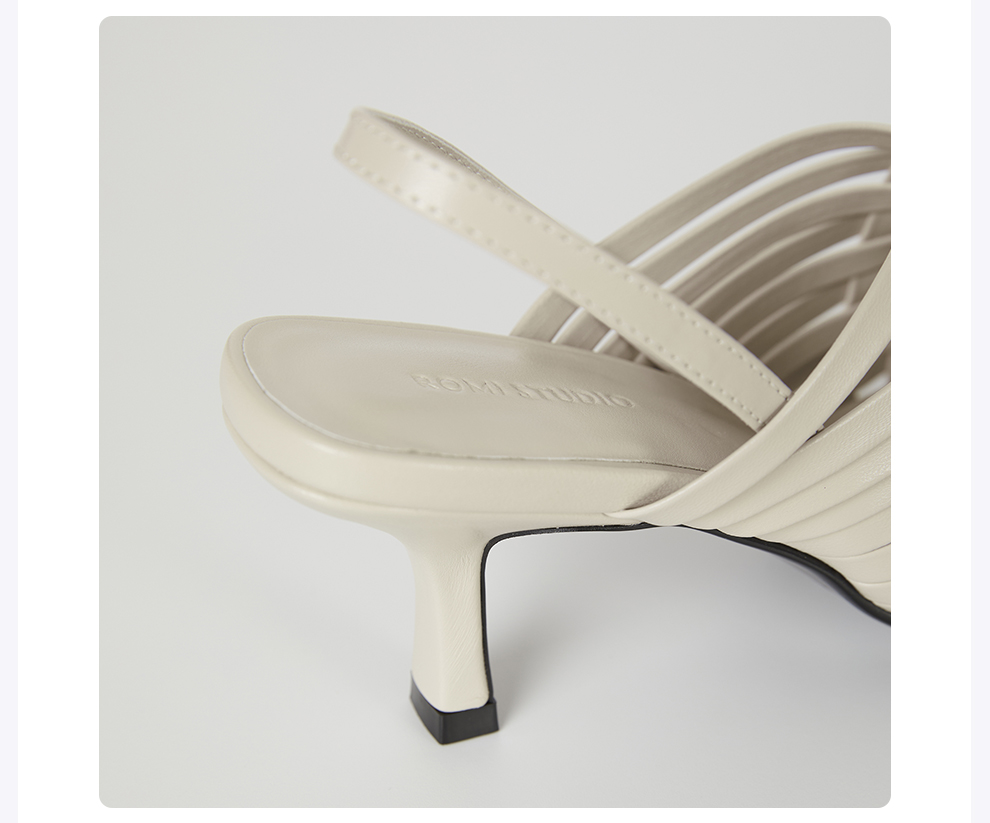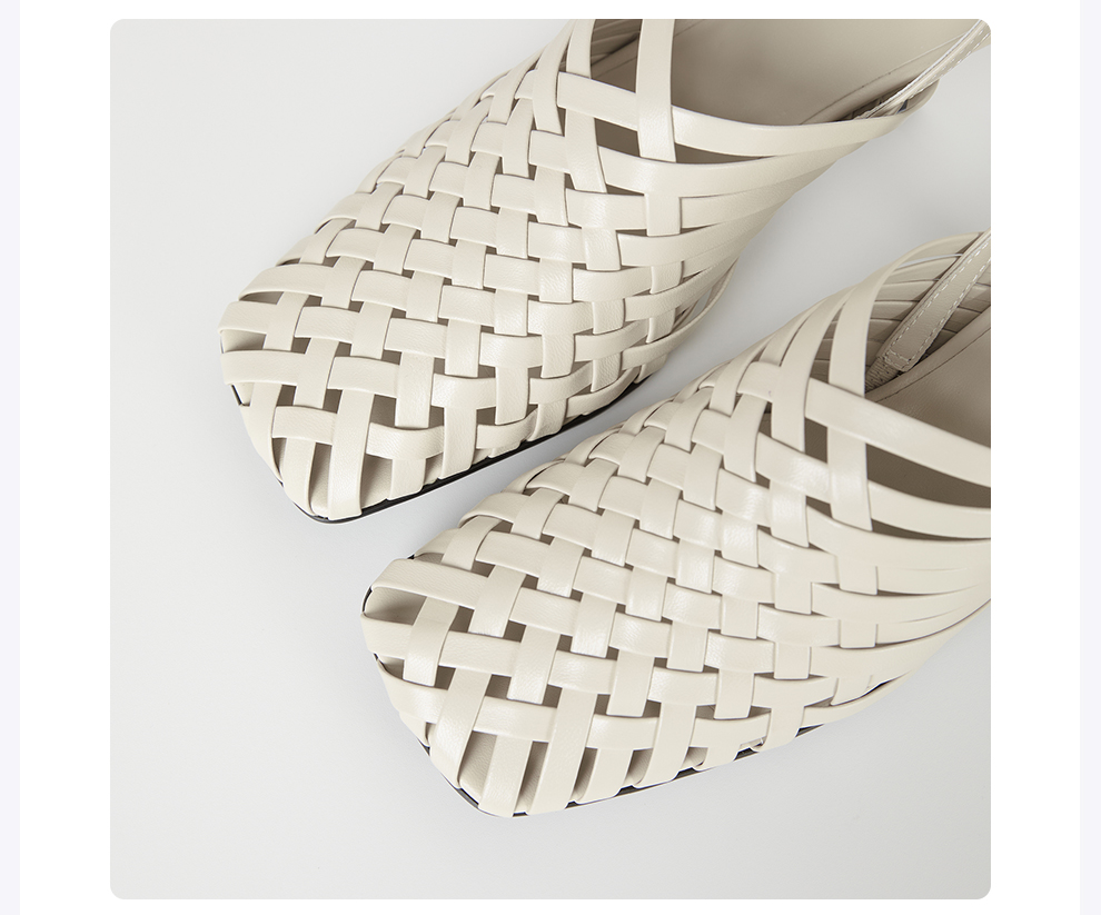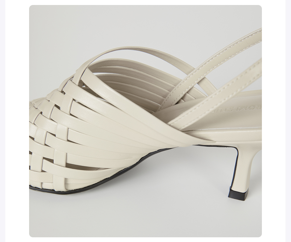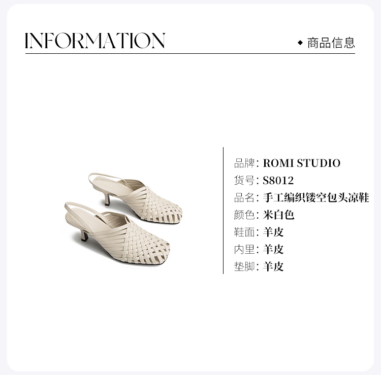 ROMI STUDIO“复古优雅”手工编织镂空包头细跟米白色方头凉鞋S8012