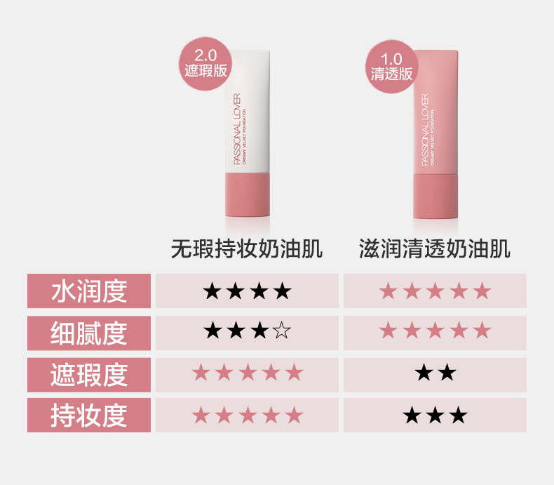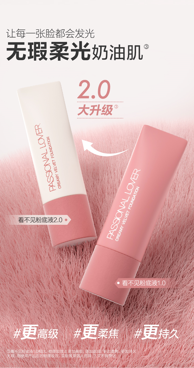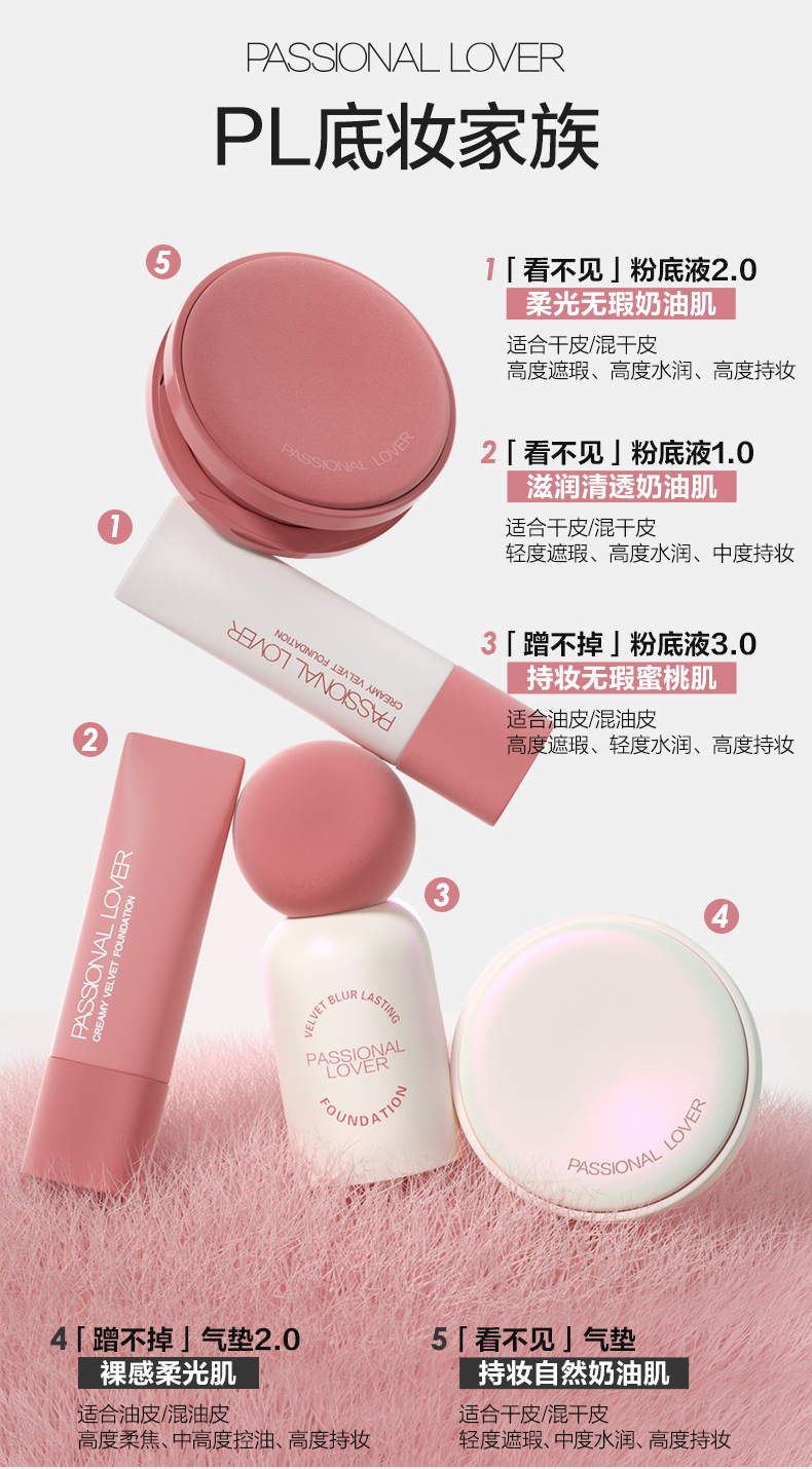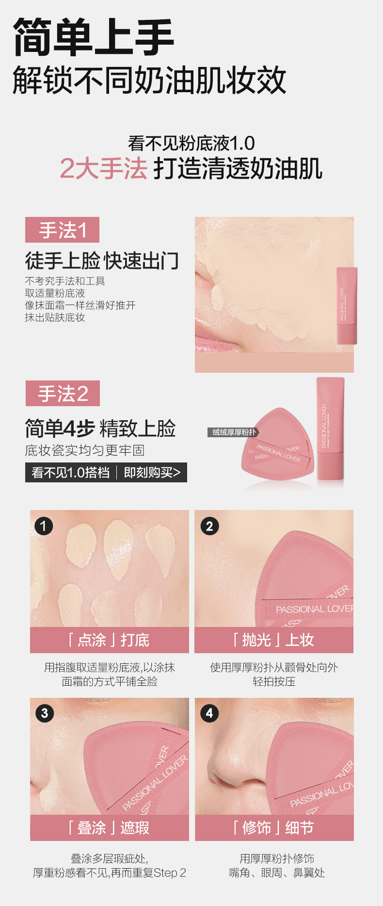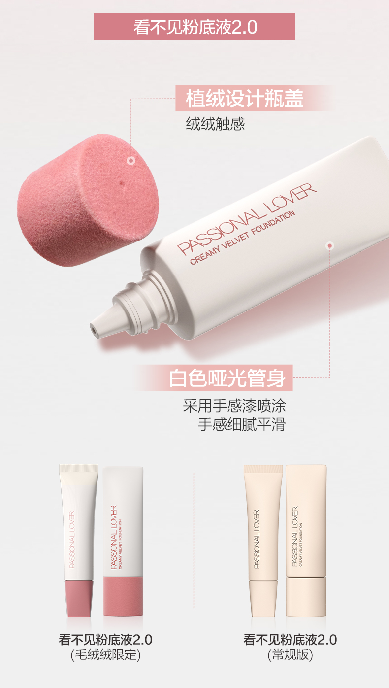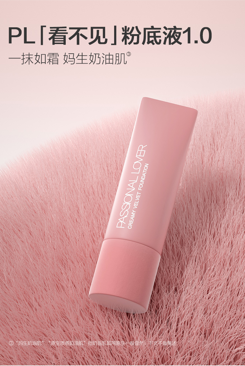 Passional Lover/PL 恋火奶油肌绒绒粉底液 30g 1.0清透版(绒绒限定) (赠粉底液体验装 0.15g*4(1.0)*1,绒绒限定粉扑*1,干湿两用粉扑*4,美妆蛋*1)