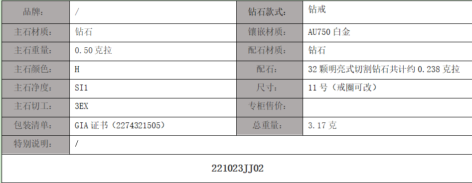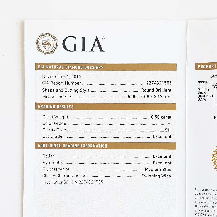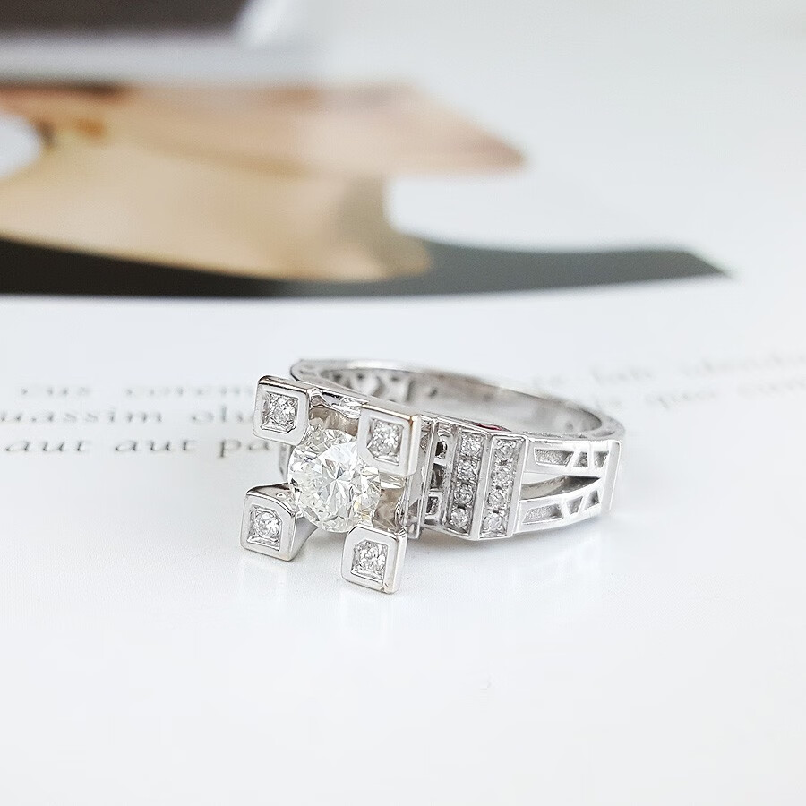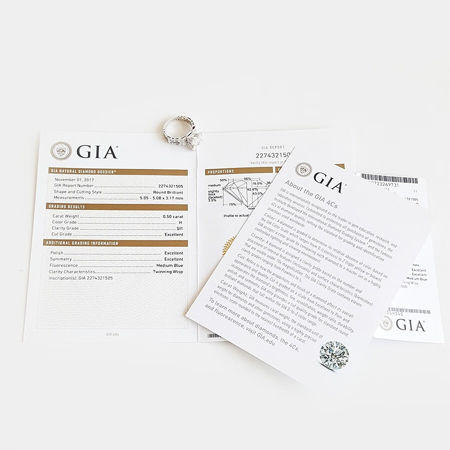 【天然正品】AU750白金钻戒钻石0.50克拉H SI1 3EX GIA证书 11号(戒圈可改) 221023JJ02