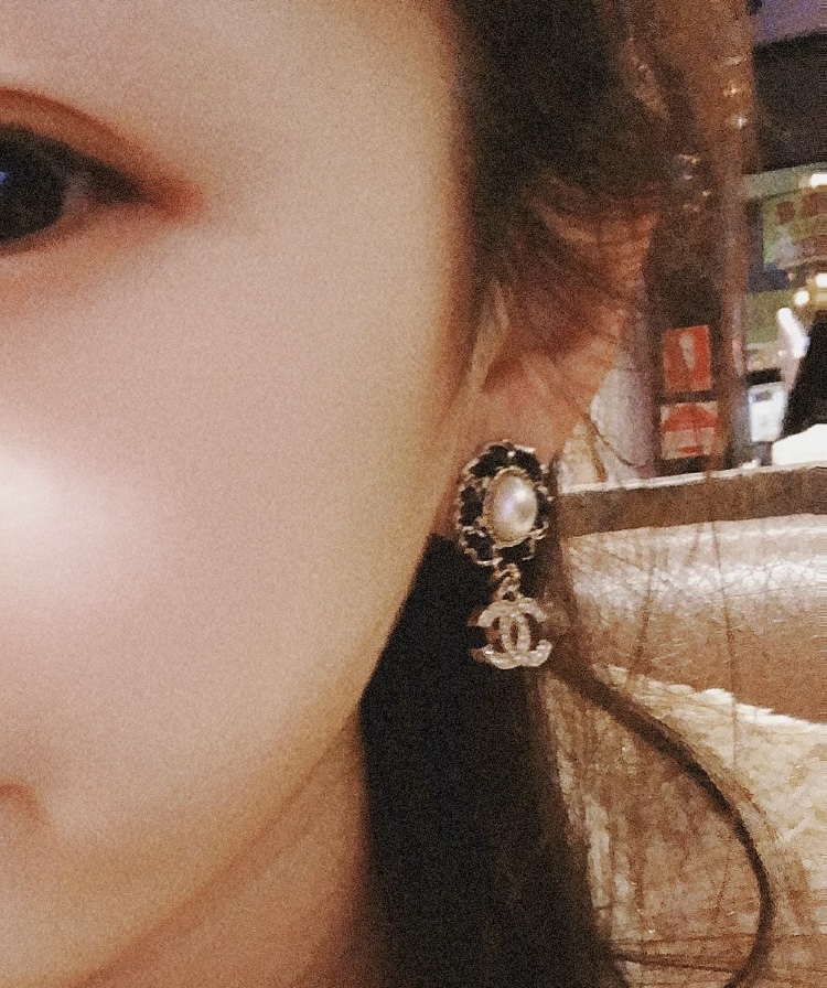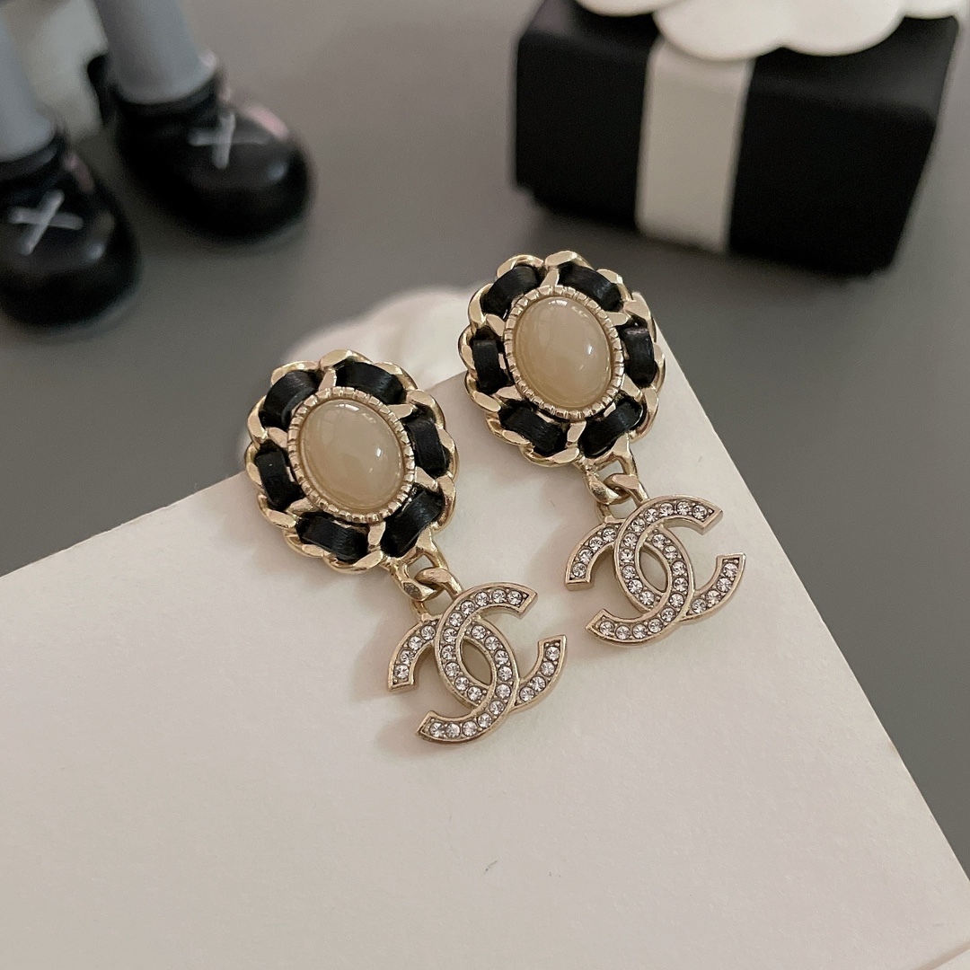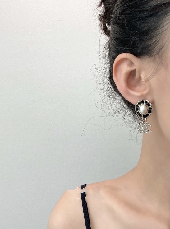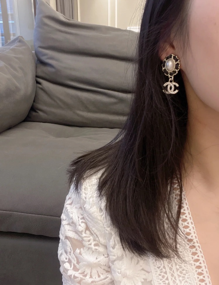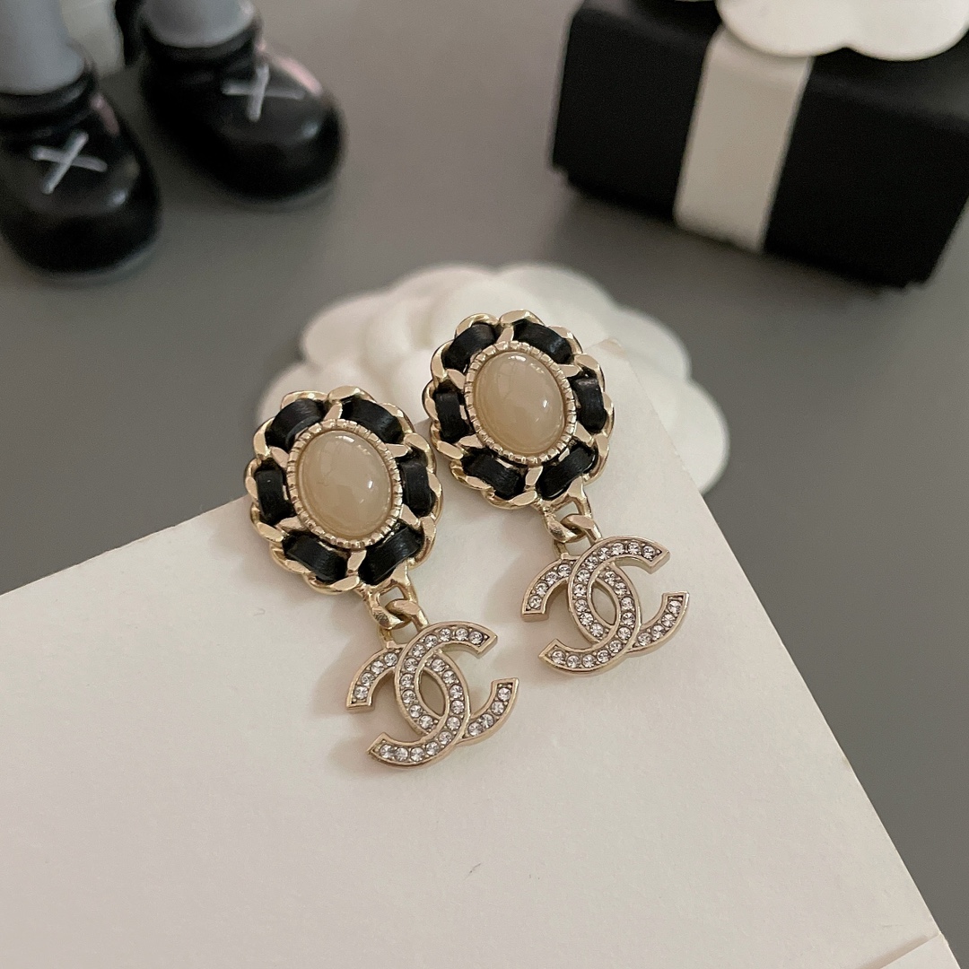 香奈儿 链条皮耳钉 纯手工穿皮,施华洛珍珠+水晶,五金链条侧面边缘手工抛光,非常的光亮 (XTY)