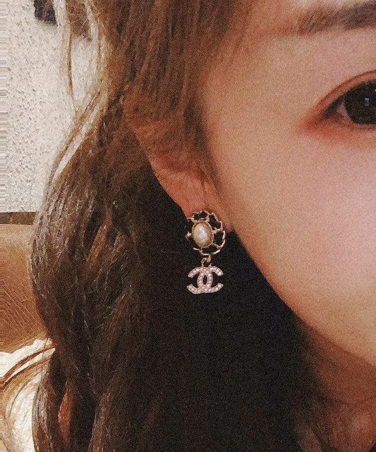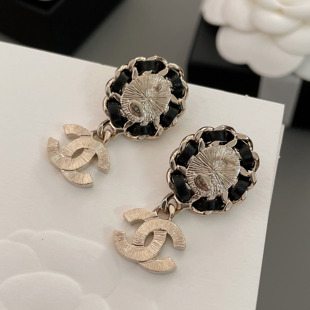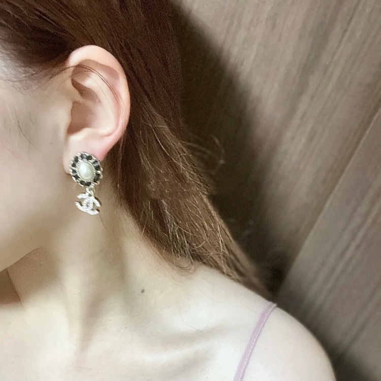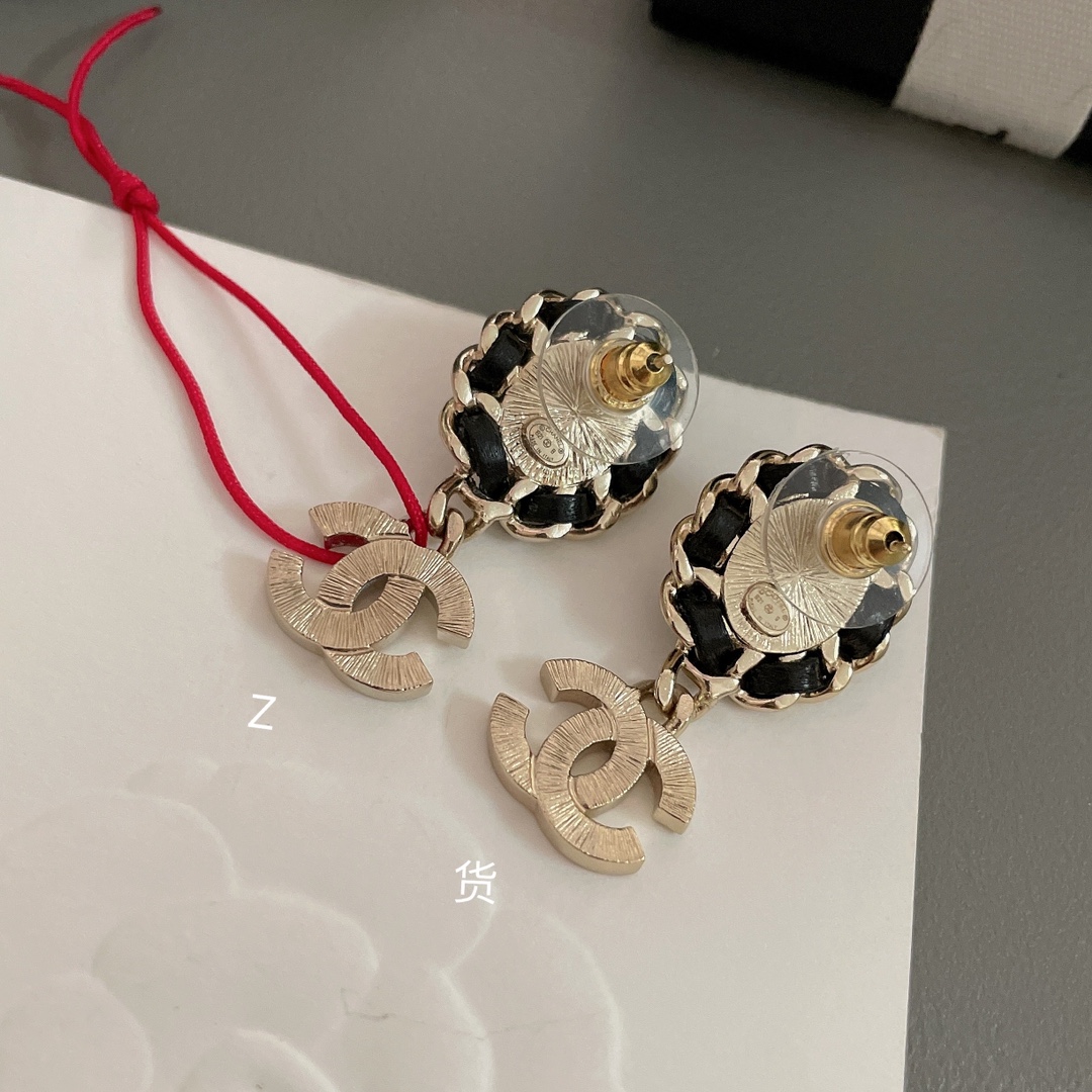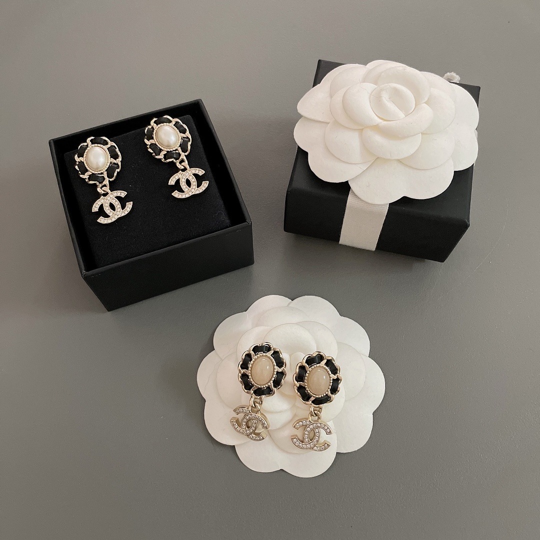 香奈儿 链条皮耳钉 纯手工穿皮,施华洛珍珠+水晶,五金链条侧面边缘手工抛光,非常的光亮 (XTY)