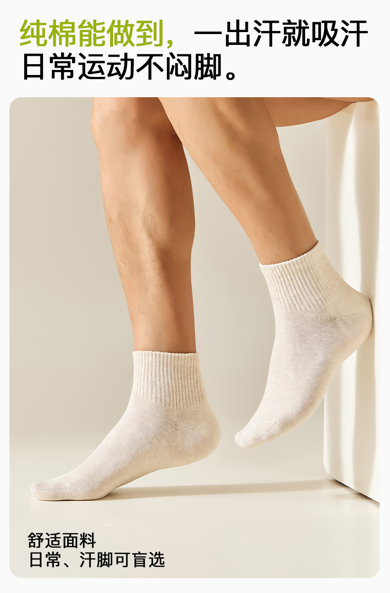 白色袜子男款纯棉中筒袜夏季薄款抗菌防臭袜吸汗男士无骨透气短袜