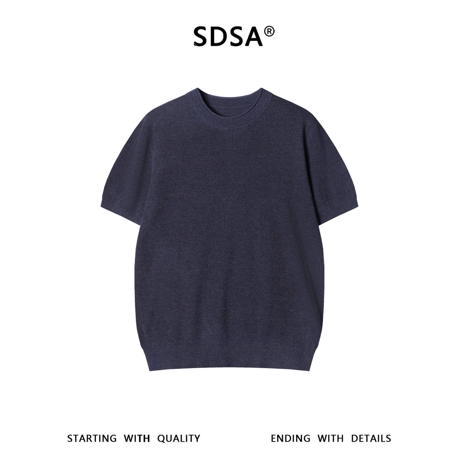 SDSA男装2026新款轻奢老钱风简约纯色针织圆领短袖T恤百搭休闲