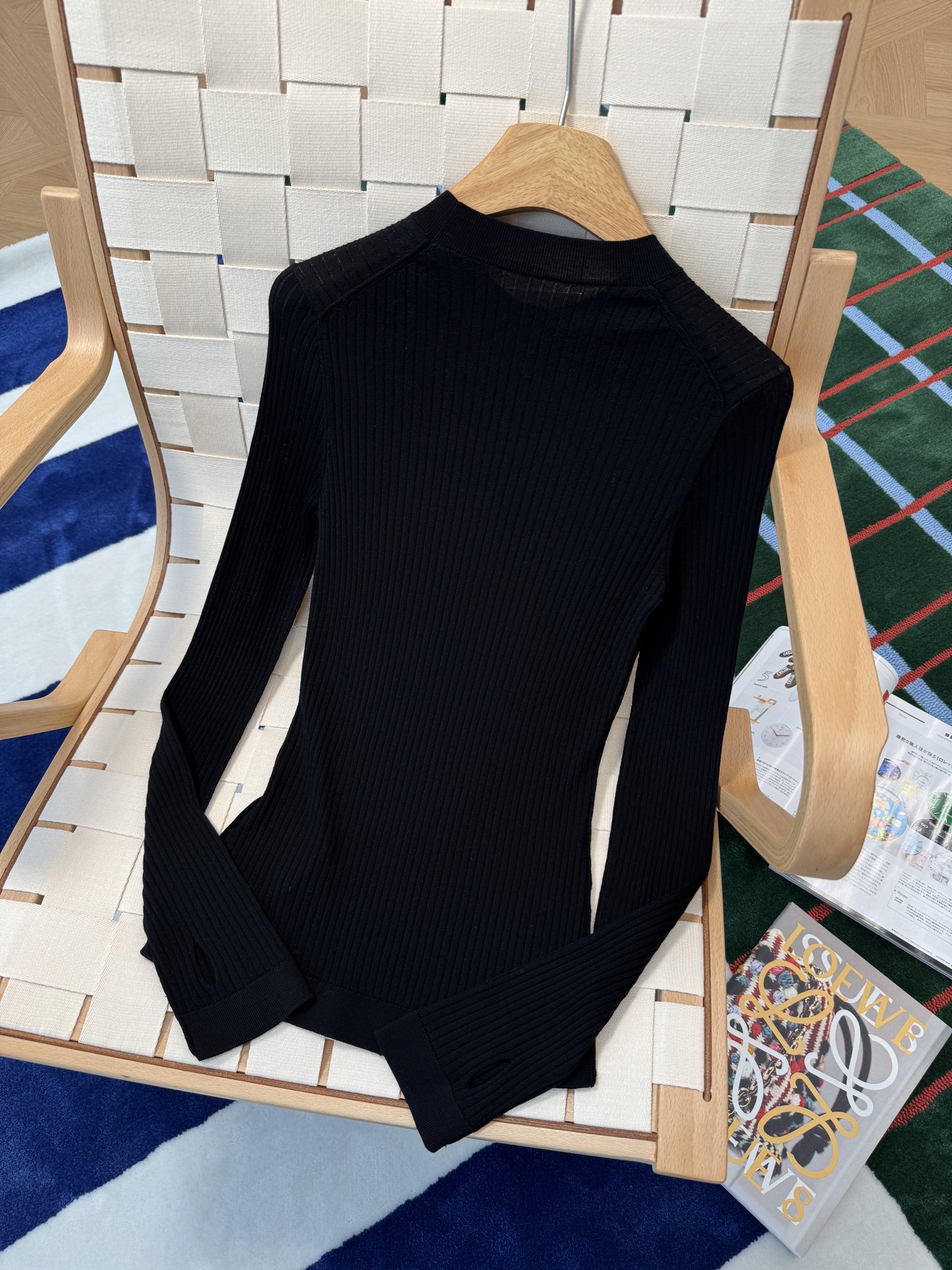 25年新品🆕基础款弹力打底衫,简约又好穿,休闲而精致的风格萦绕于此款针织打底💫修身版型🔜质感真的绝了🉑 软软糯糯,上身超舒服,极简风格真的很出彩,胸前嵌入字母提升精致度,贴身穿真的真的超舒服,真的是太太太好看啦‼️显瘦秒变纸片人✨ 可外穿可打底,必入款,黑/白两个色,码数SML
