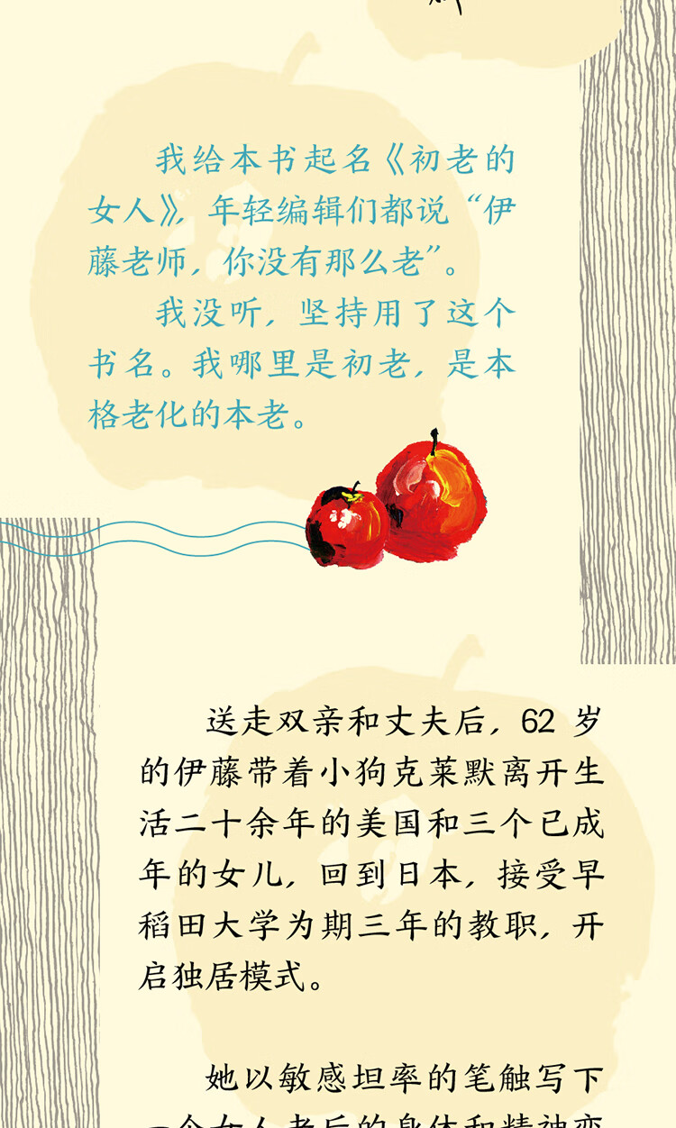 送走双亲和丈夫后,62岁的伊藤带着小狗克莱默离开美国,重回日本,开启“初老之女”的独居生活。在熟悉又陌生的故土上,将会发生什么新的故事。伊藤以敏感坦率的笔触写下一个女人老后的身体和精神变化,以及一个人生活的自由和寂寥。在不断的别离中,直面生命的荒芜。“现在身边一个家人都没有了,我真的自由了。”