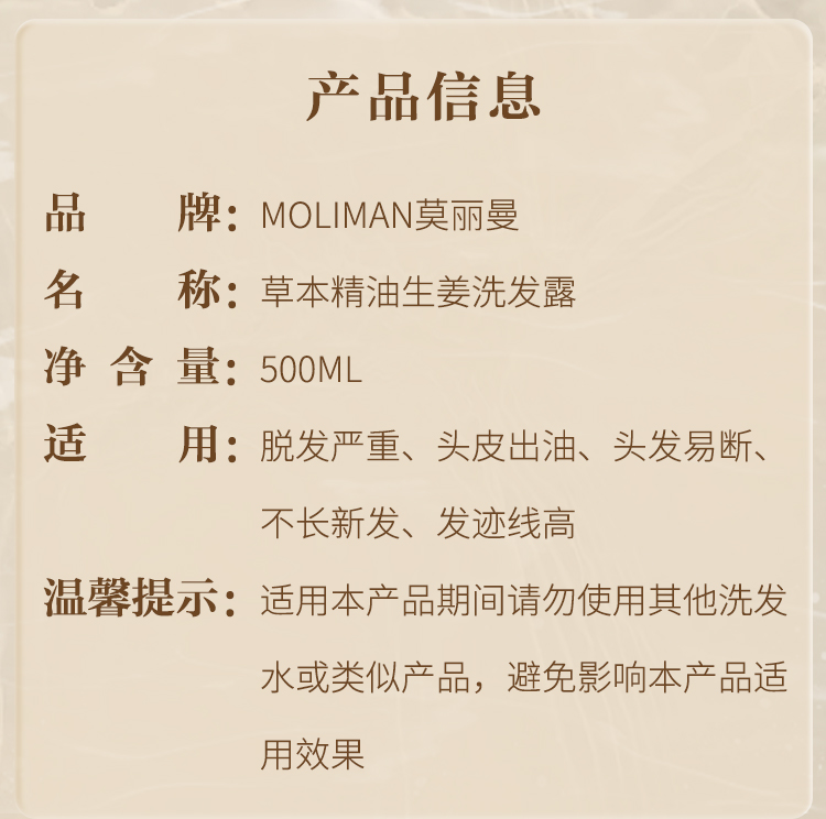 莫丽曼洗发水【官方正品】生姜草本精油洗发露洗头膏