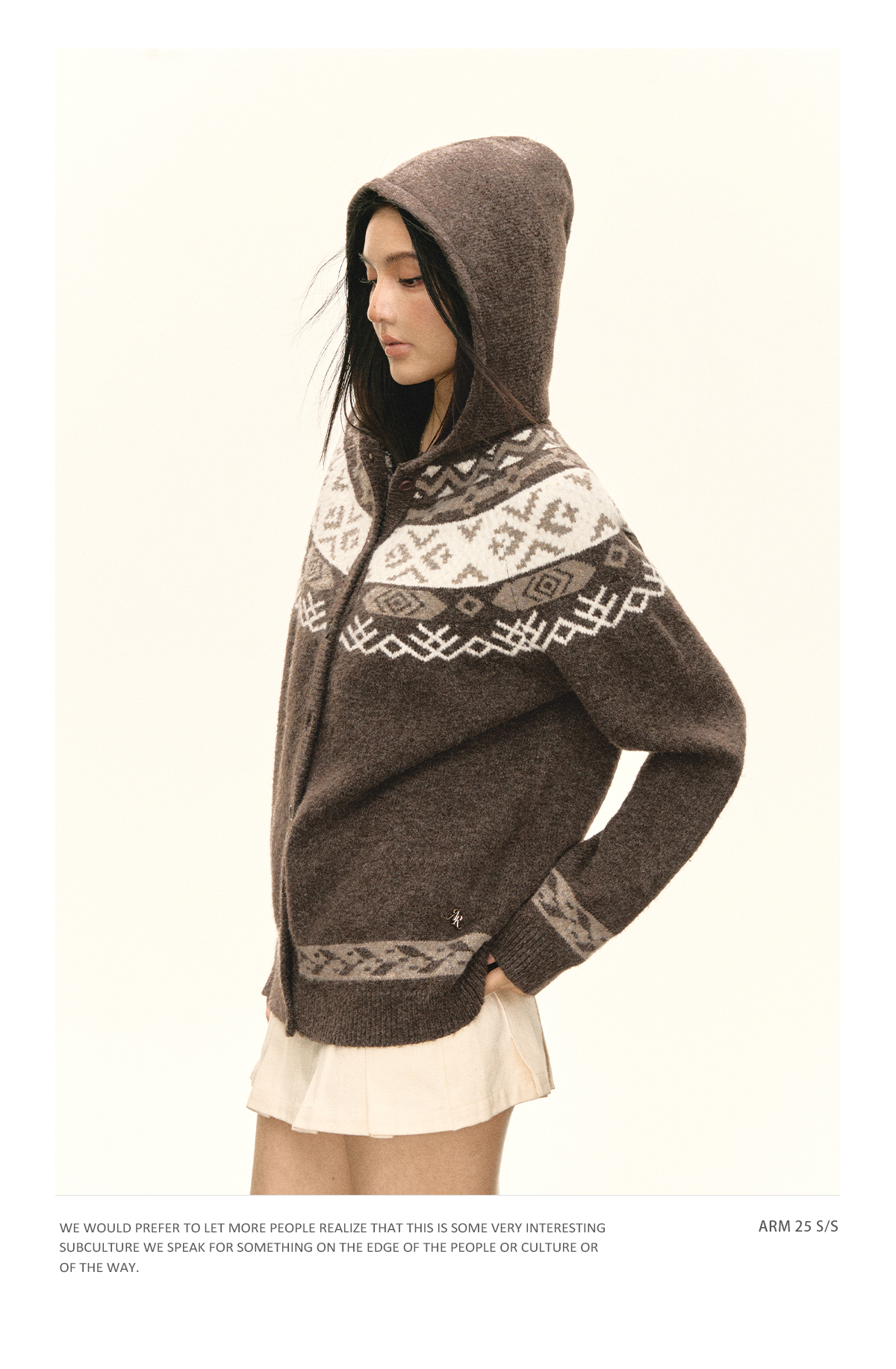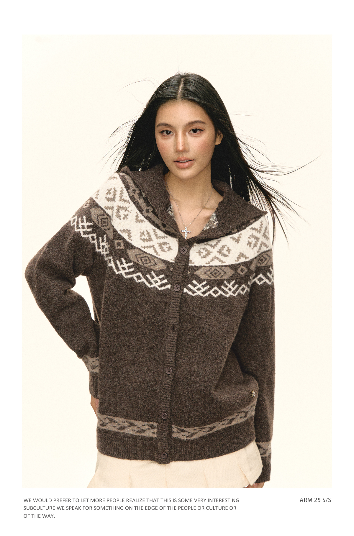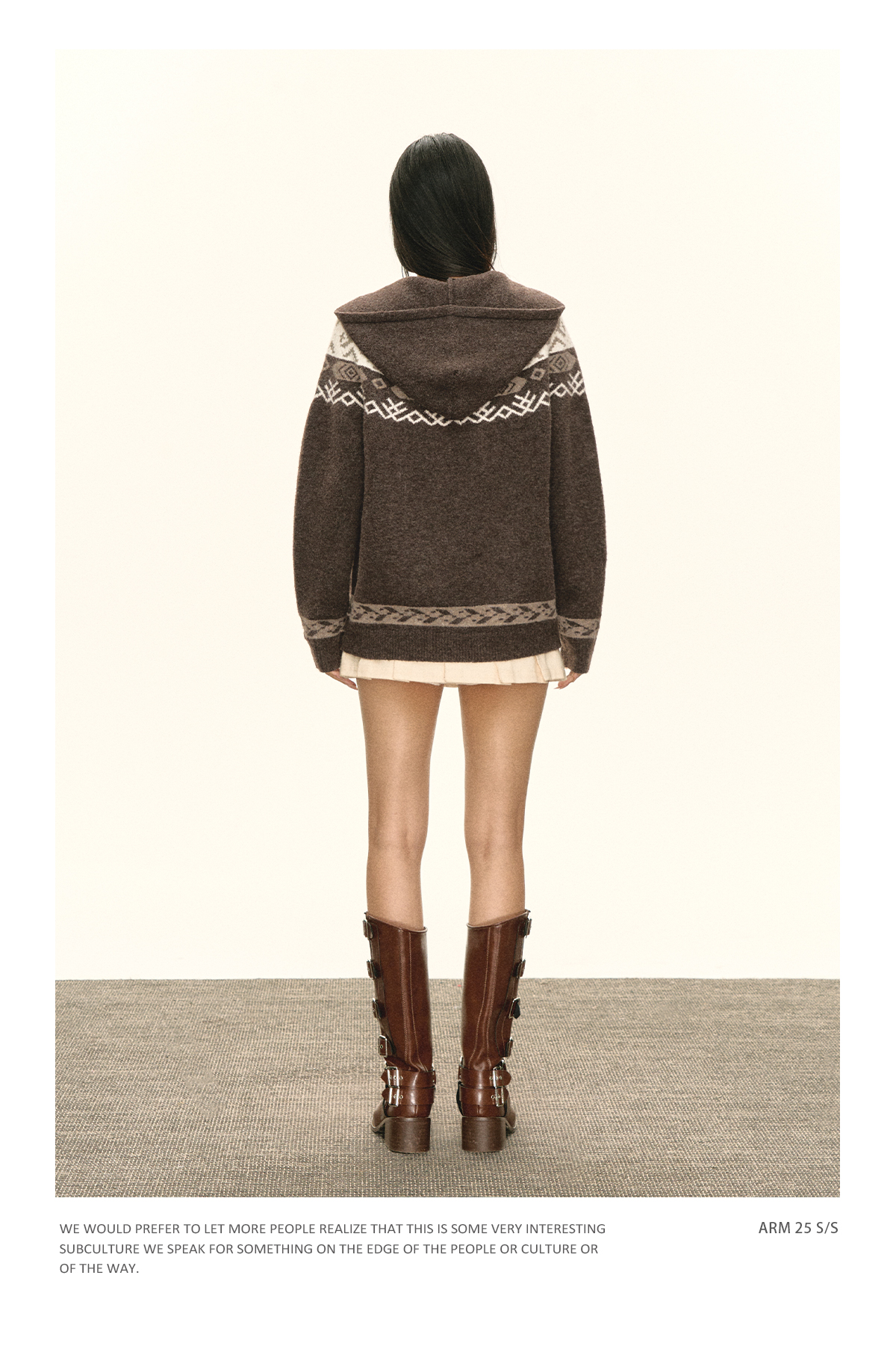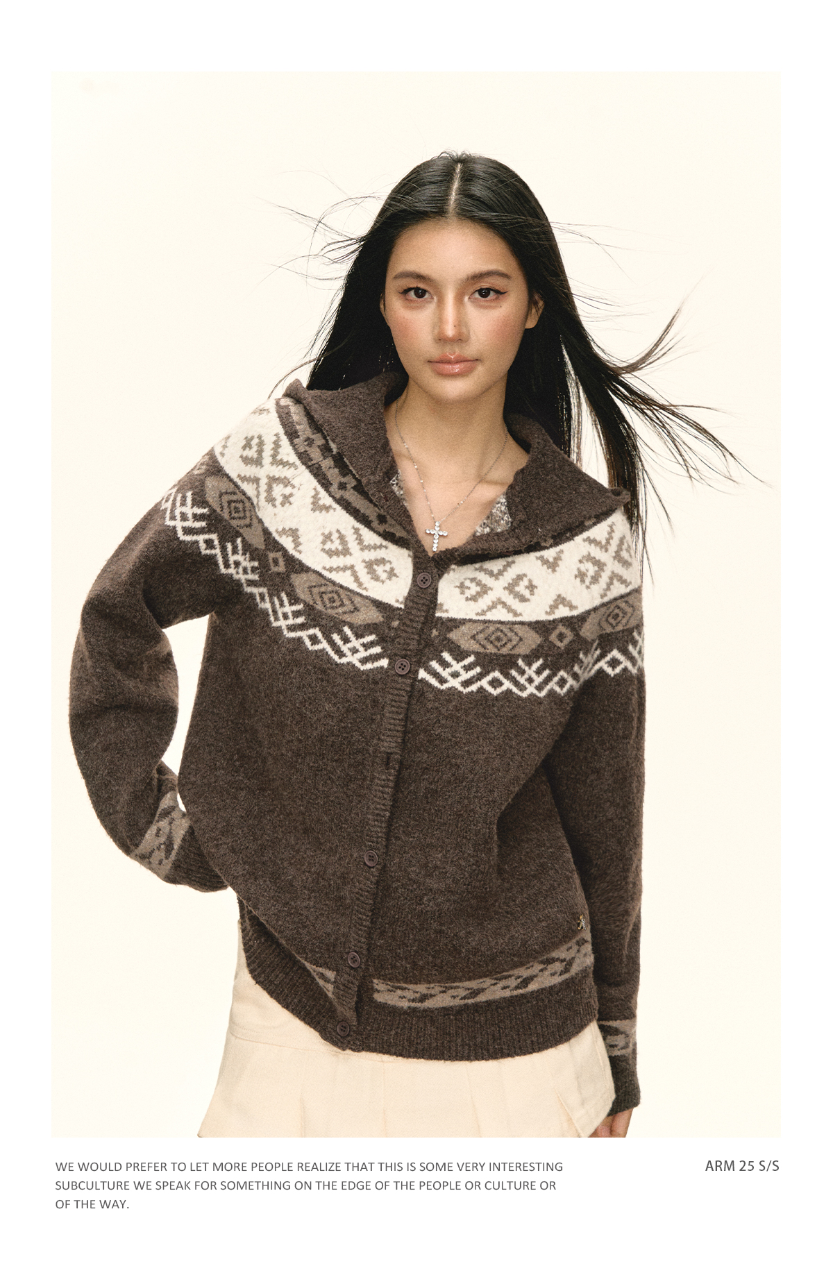 Ariseism 美式复古深卡其费尔岛连帽毛衣女秋季新款