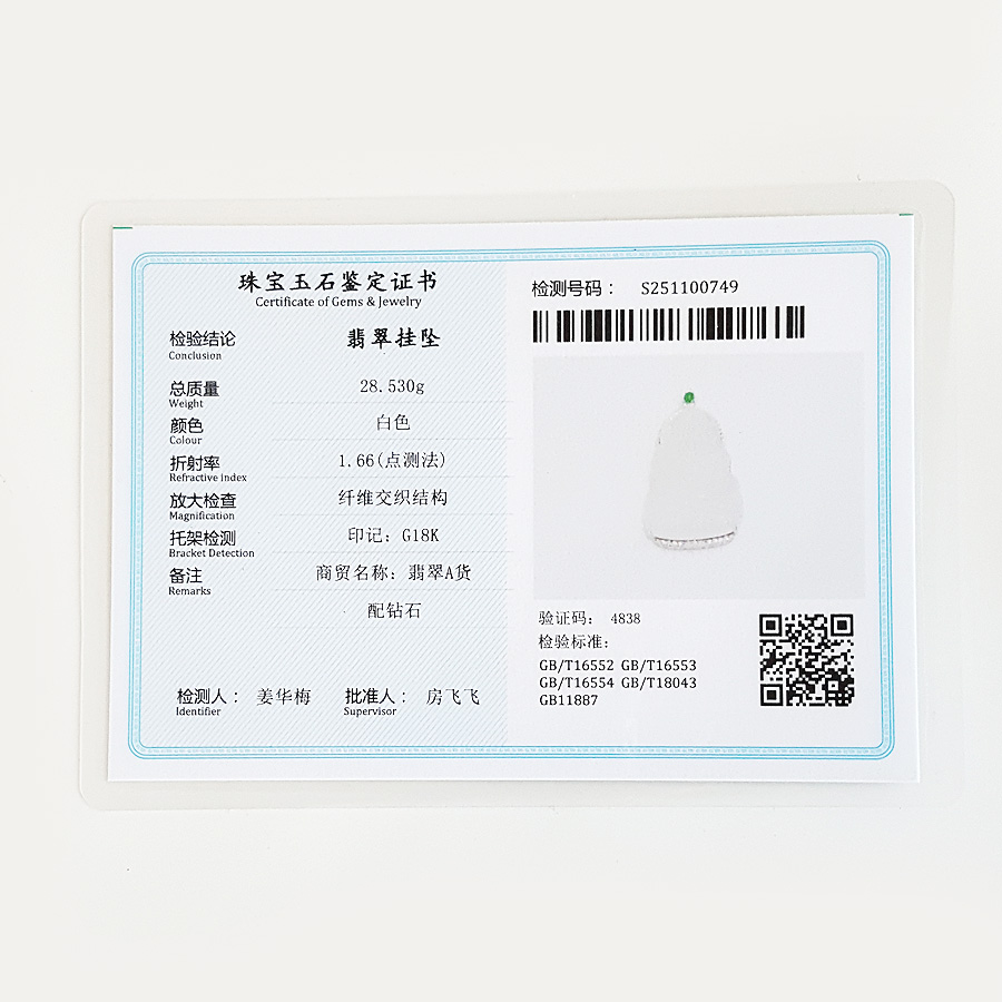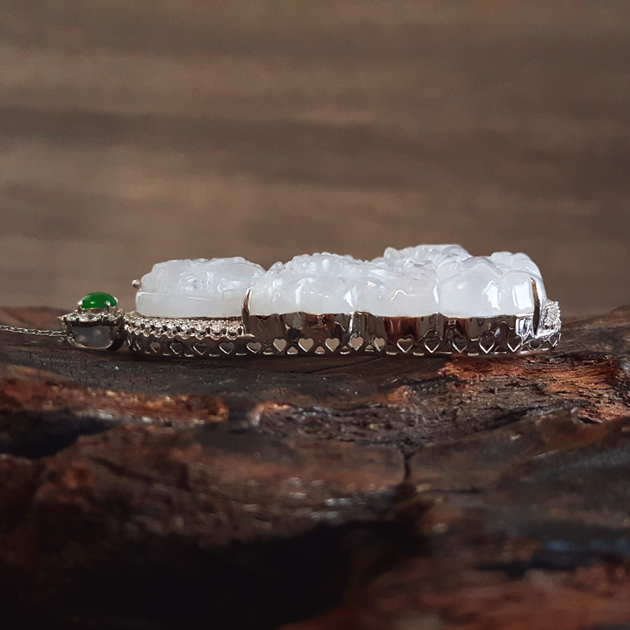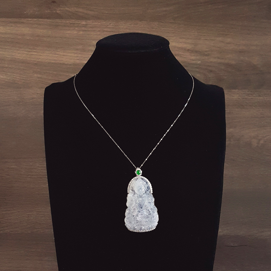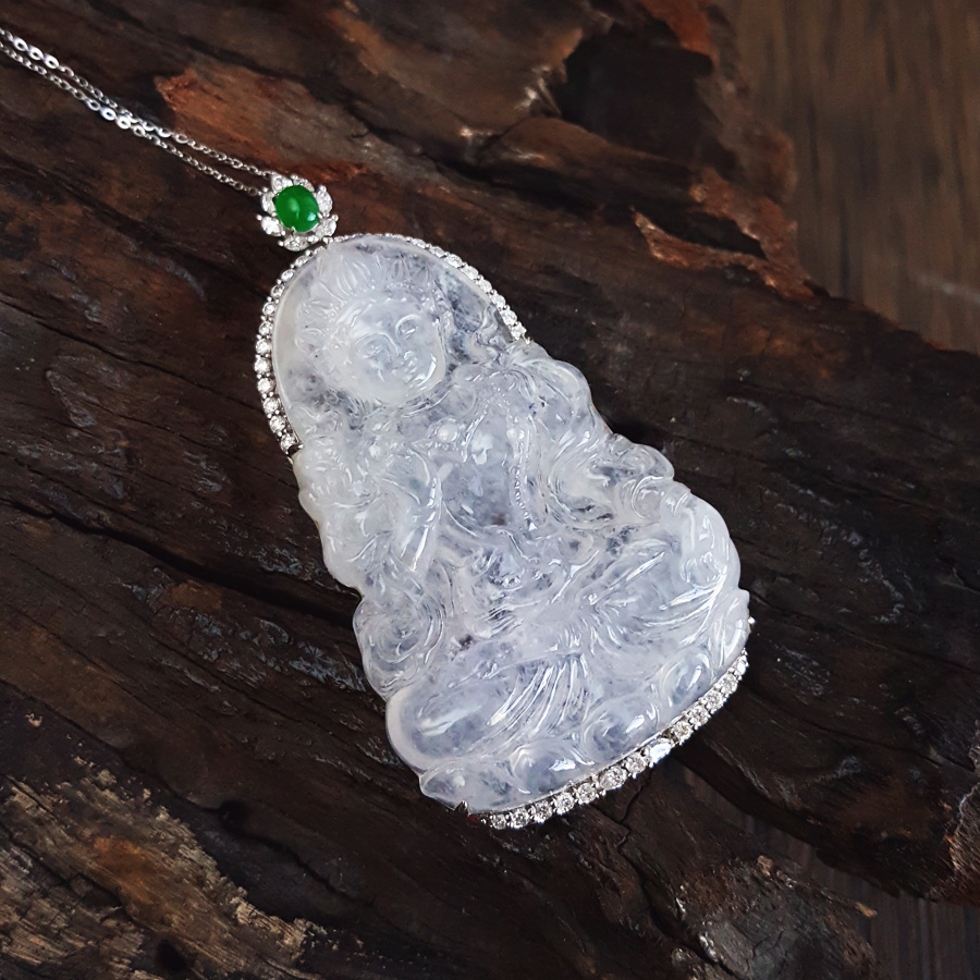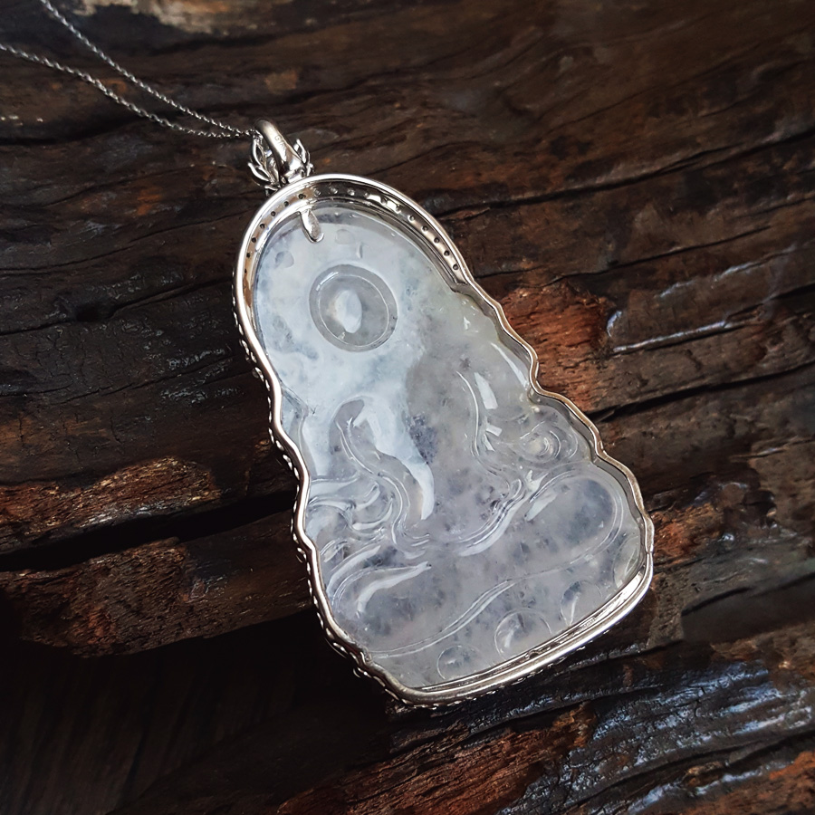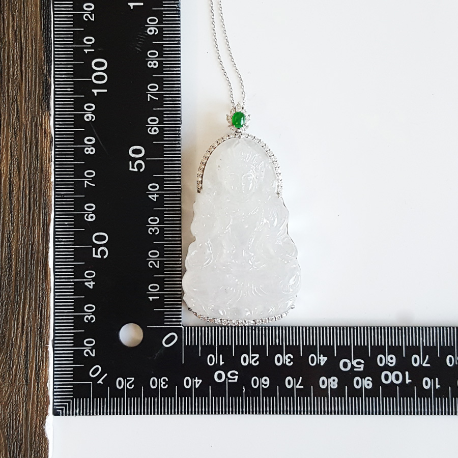 名称 | AU750收藏级白金镶钻镶天然细腻冰种白色度母翡翠吊坠项链 |