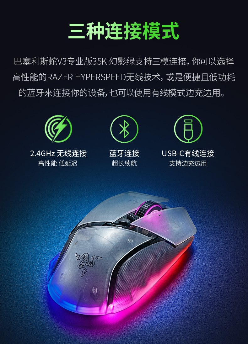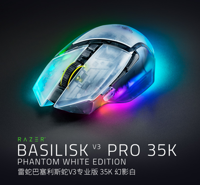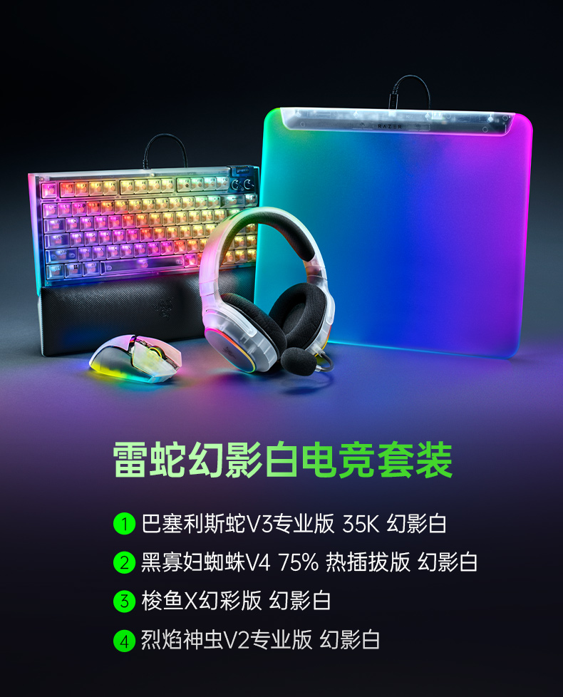 Razer雷蛇幻影白 巴塞利斯蛇V3 Pro专业版35K+黑寡妇蜘蛛V4 75%+梭鱼X幻彩+烈焰神虫V2+骑仕V3【雷蛇官方直营,延保一年】