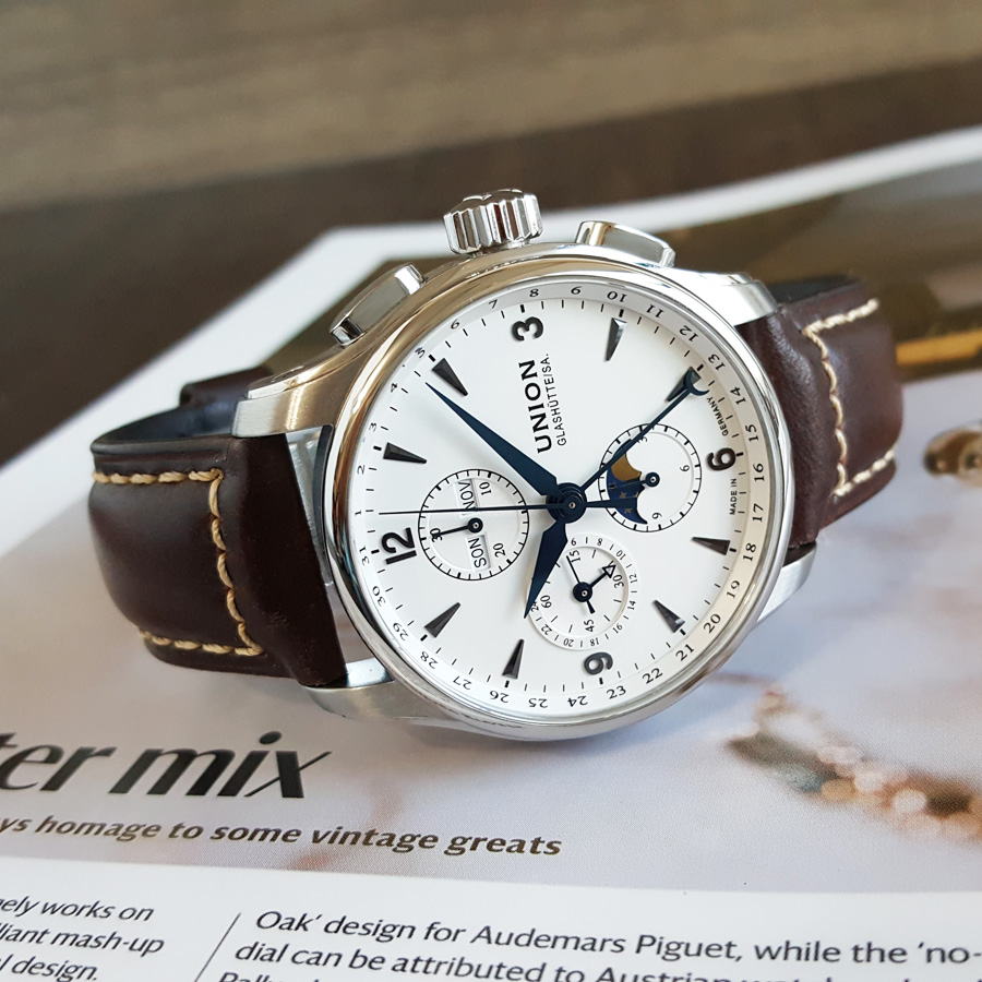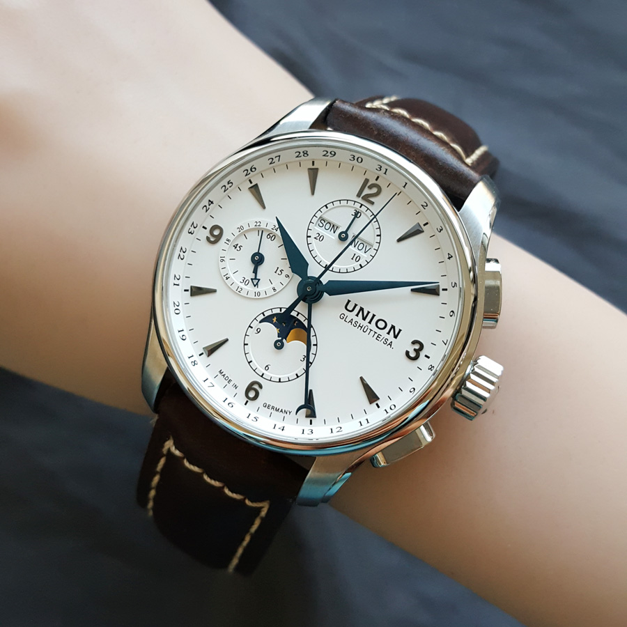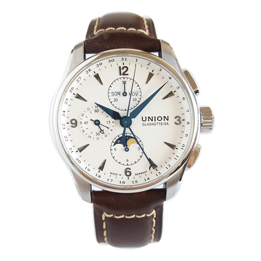 【95新】UNION 宇联 D002.425.16.037.00自动机械机芯日期、星期、月份显示;月相;计时BELISAR系列43MM(男款)精钢191025NJS20
