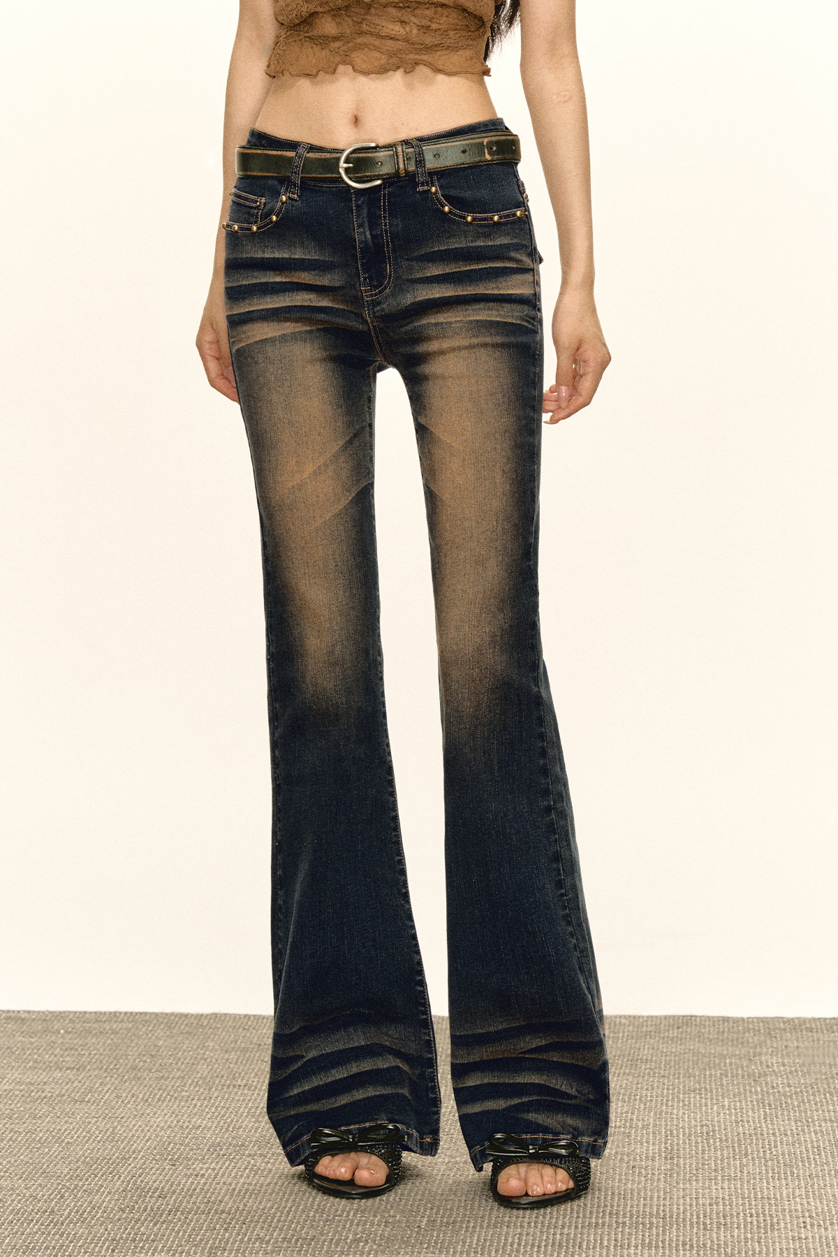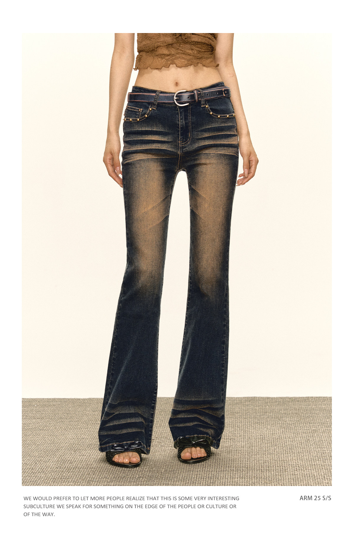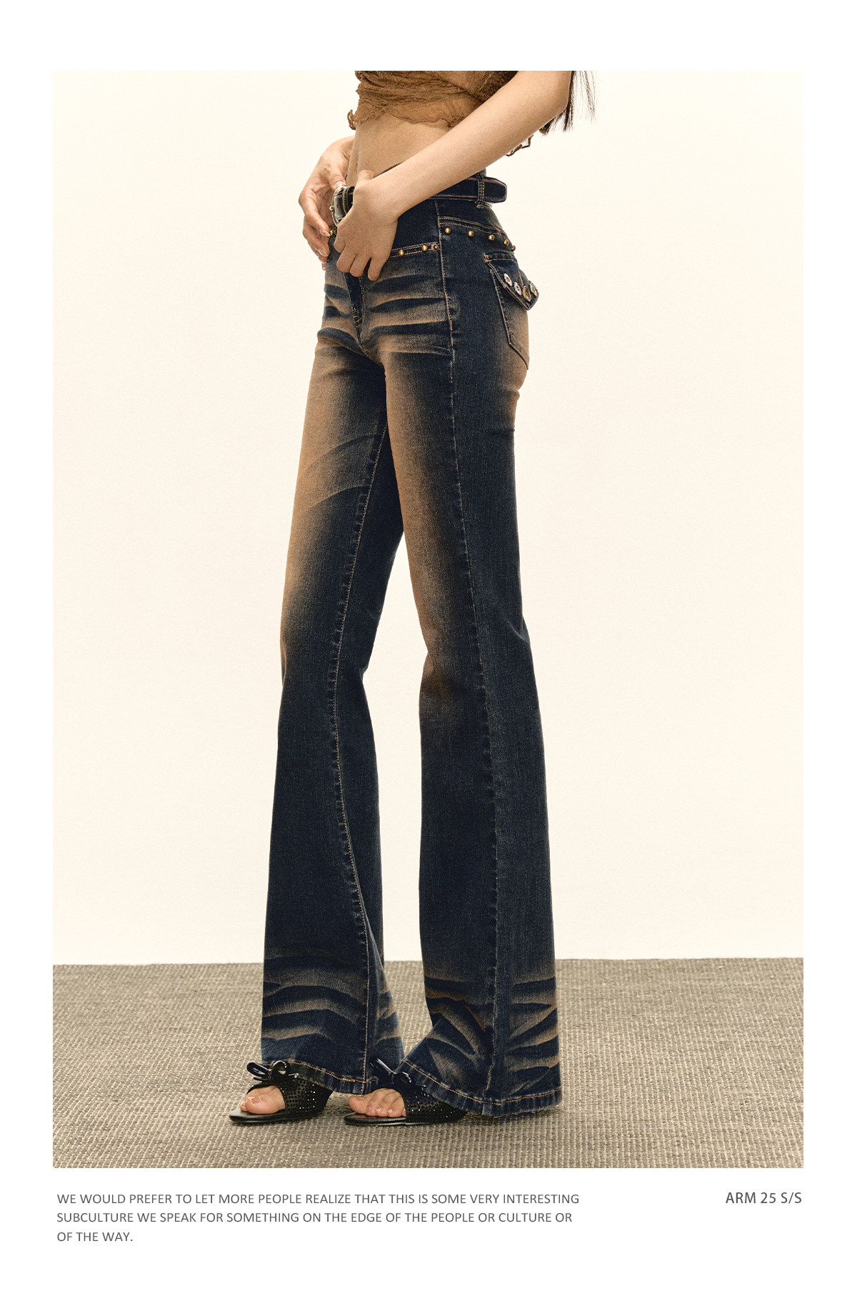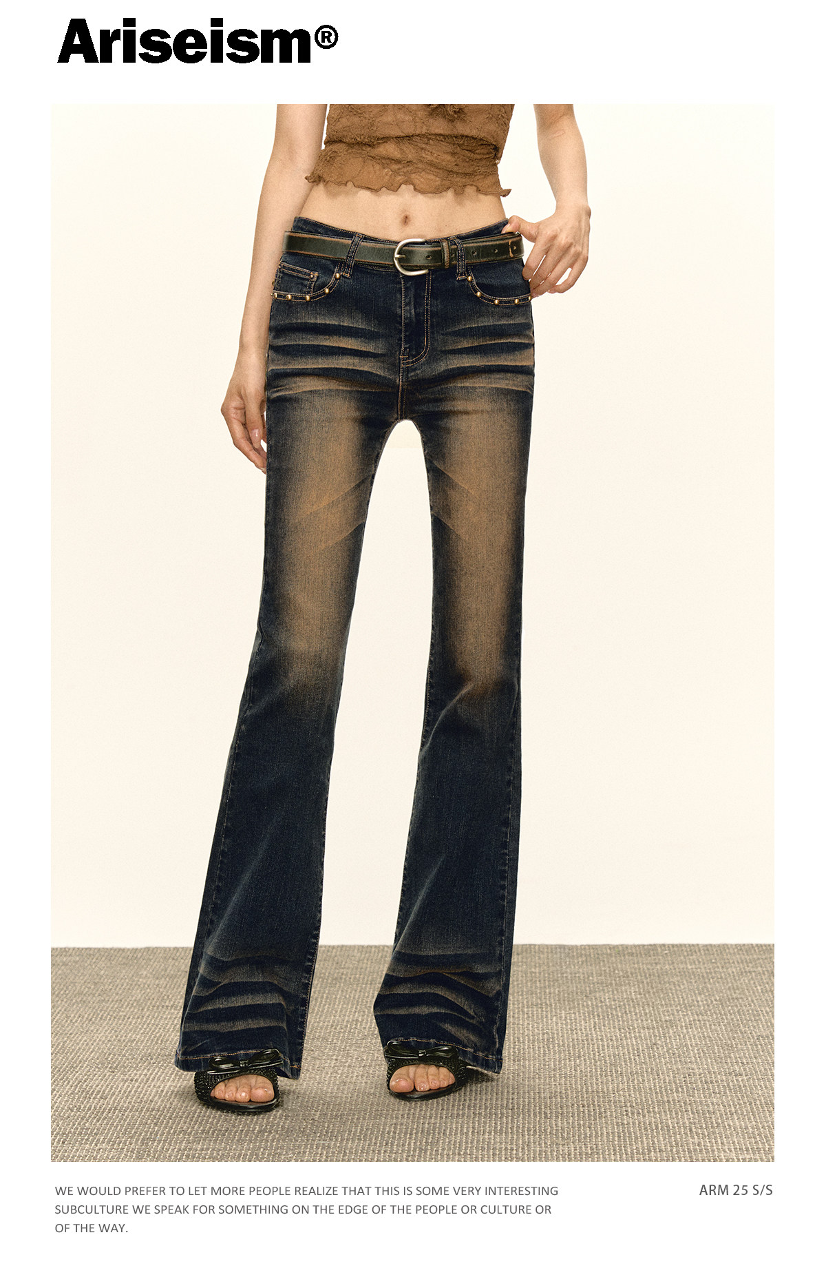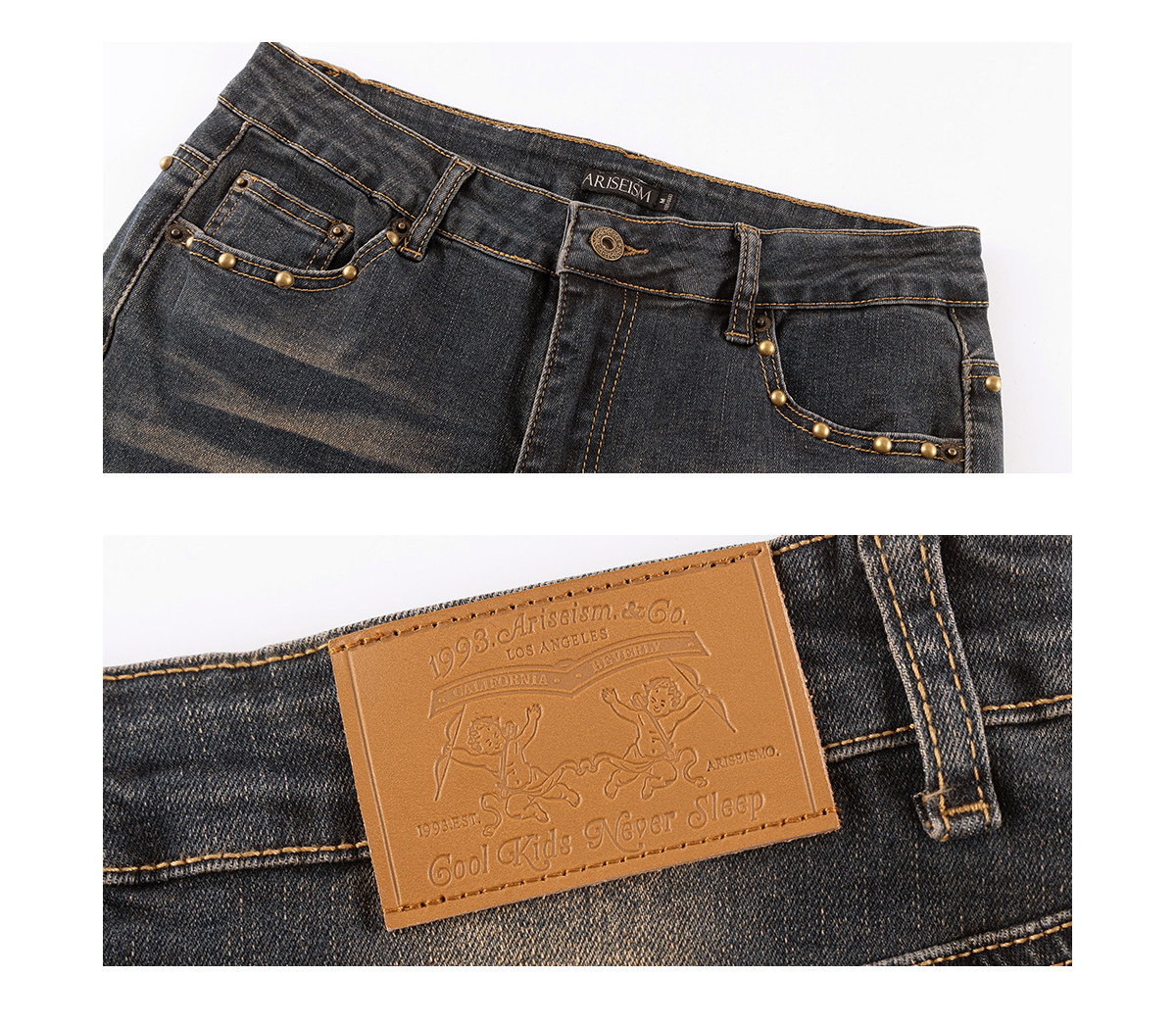 Ariseism 美式复古设计感修身牛仔裤女秋冬新款休闲长裤子