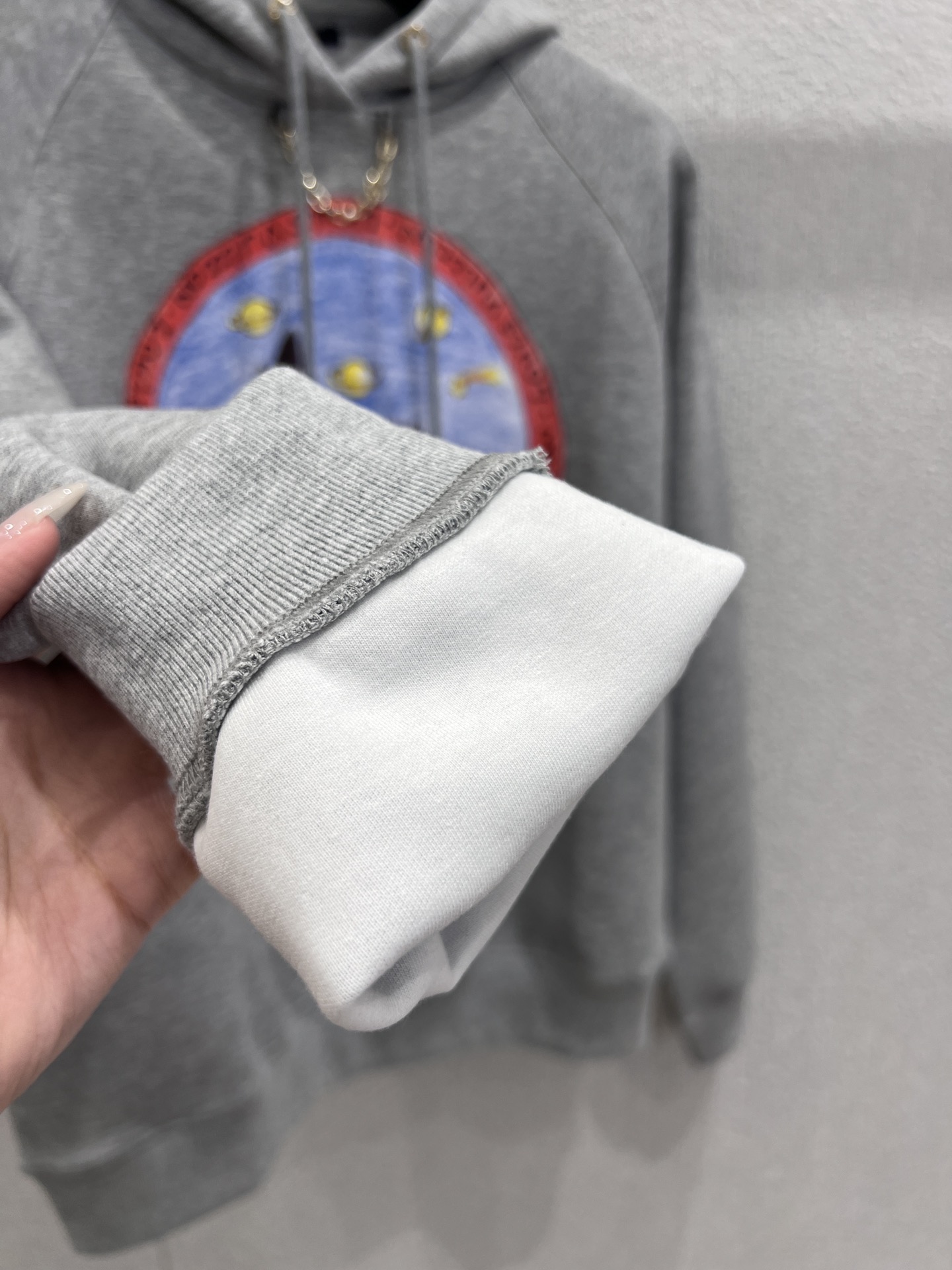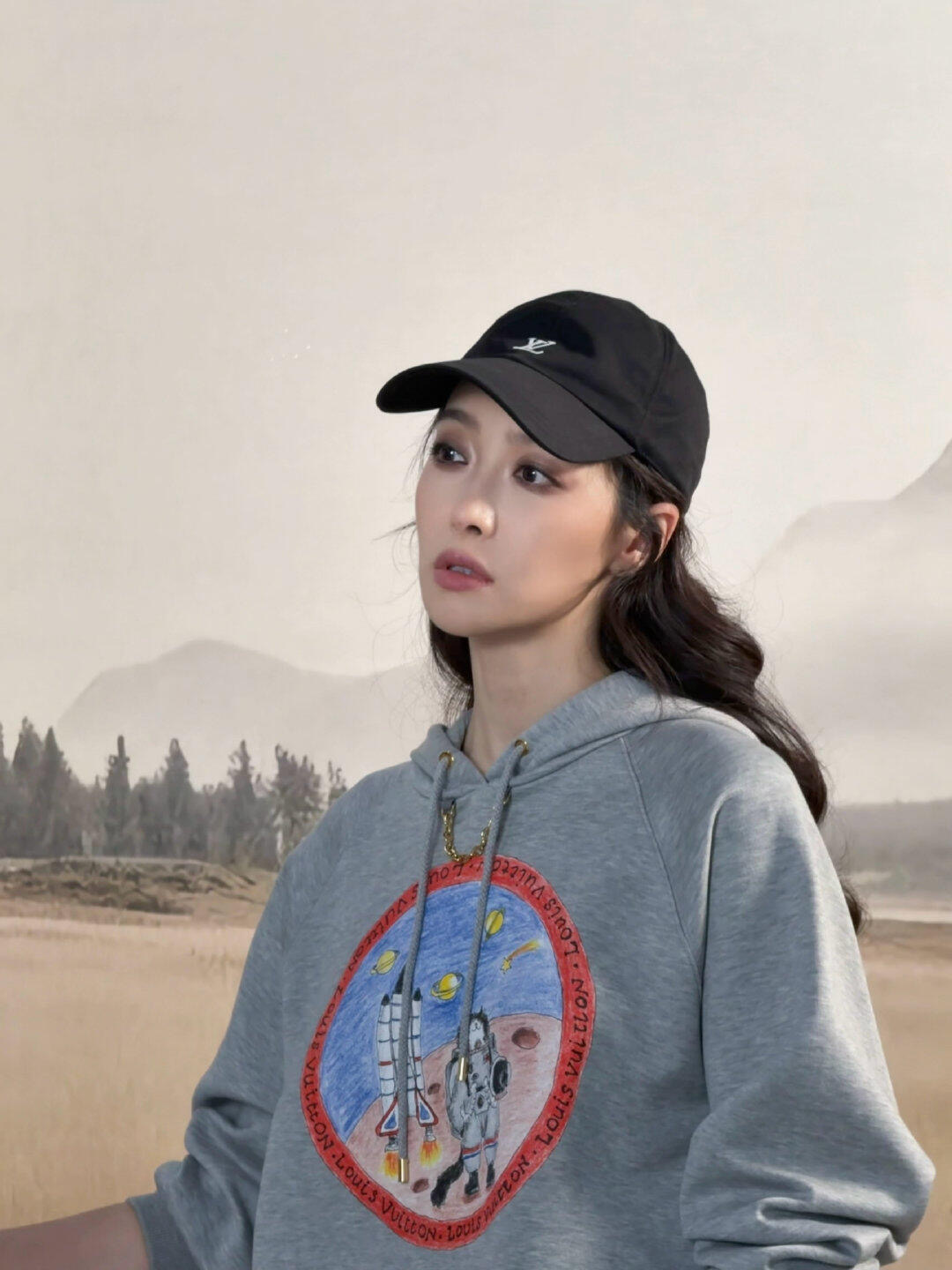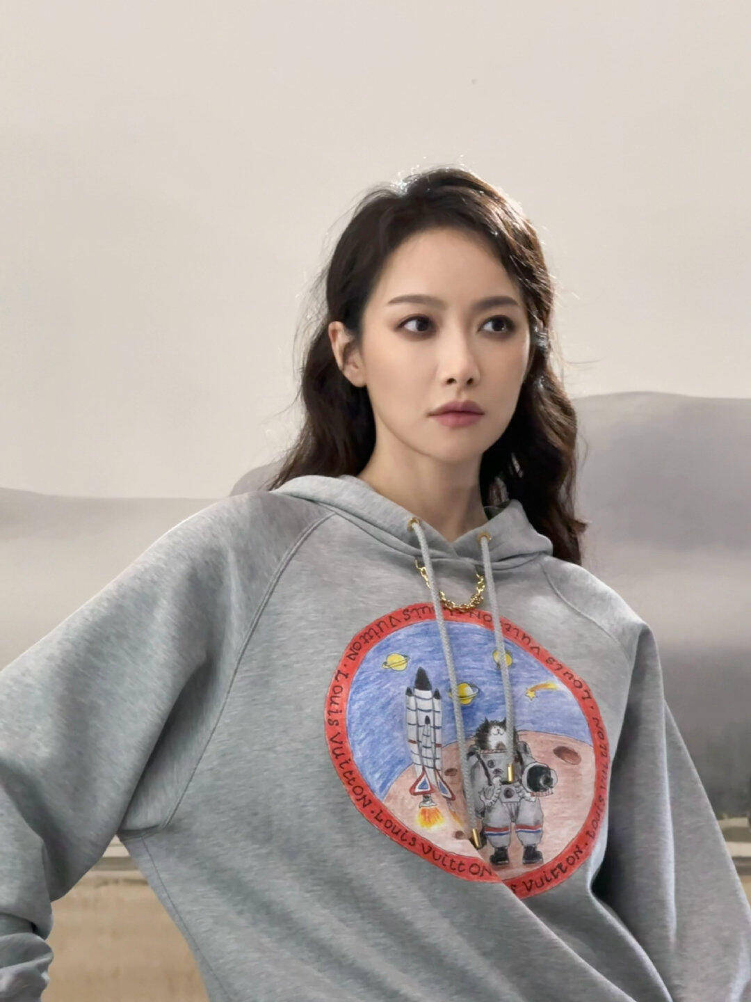 Louis Vui*ton 25FW秋冬新款 链条印花连帽卫衣丨⚠独家yb开发!高版出品!浅灰色卫衣基底简约大气,胸前圆形印花充满故事感:穿着宇航服的猫咪在火星地表探索,旁边火箭蓄势待发,周遭行星与星辰点缀,仿佛将宇宙冒险的浪漫画卷穿在身上;红色环形饰边印有品牌标识,细节处彰显奢华基因。现货发售S/M/L