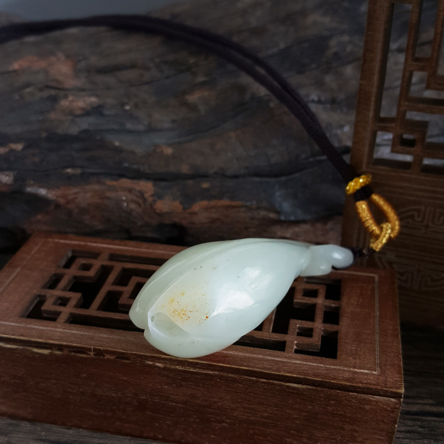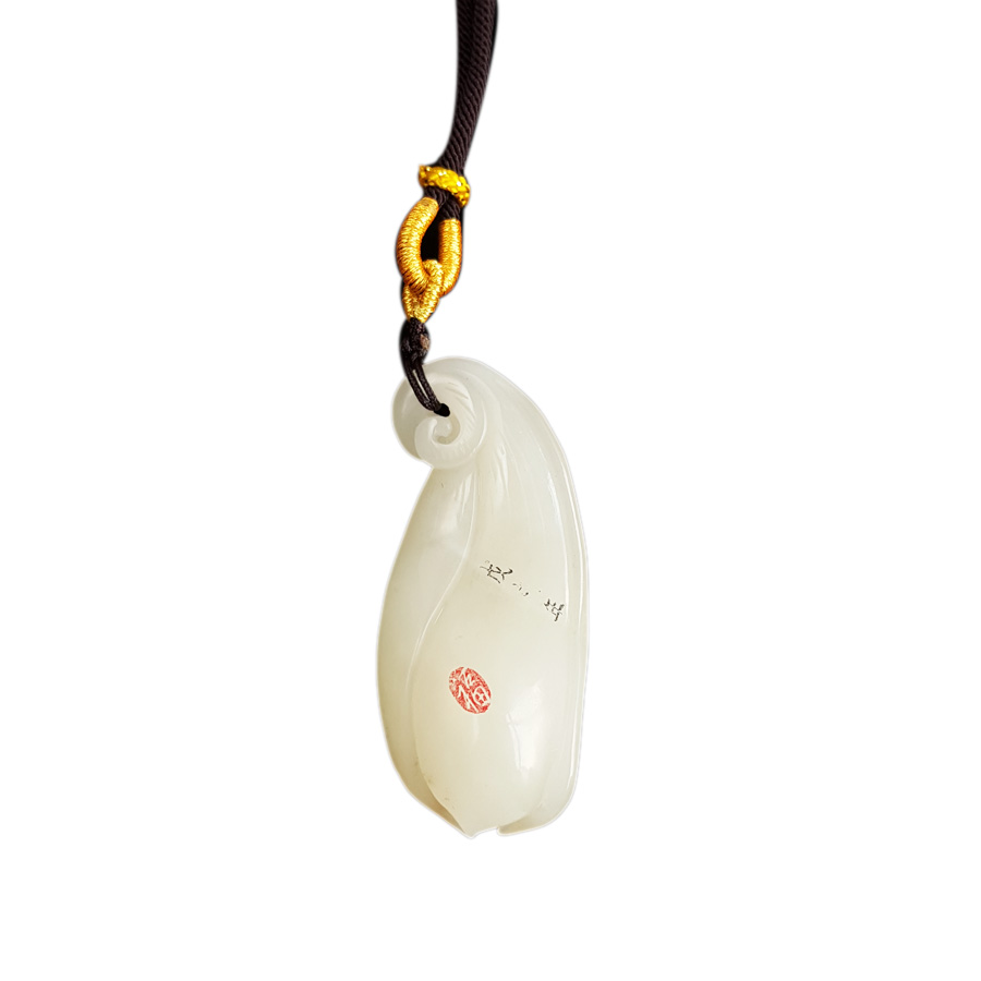 名称 | 天然细腻油润度佳新疆料雕白玉兰花和田玉吊坠 |