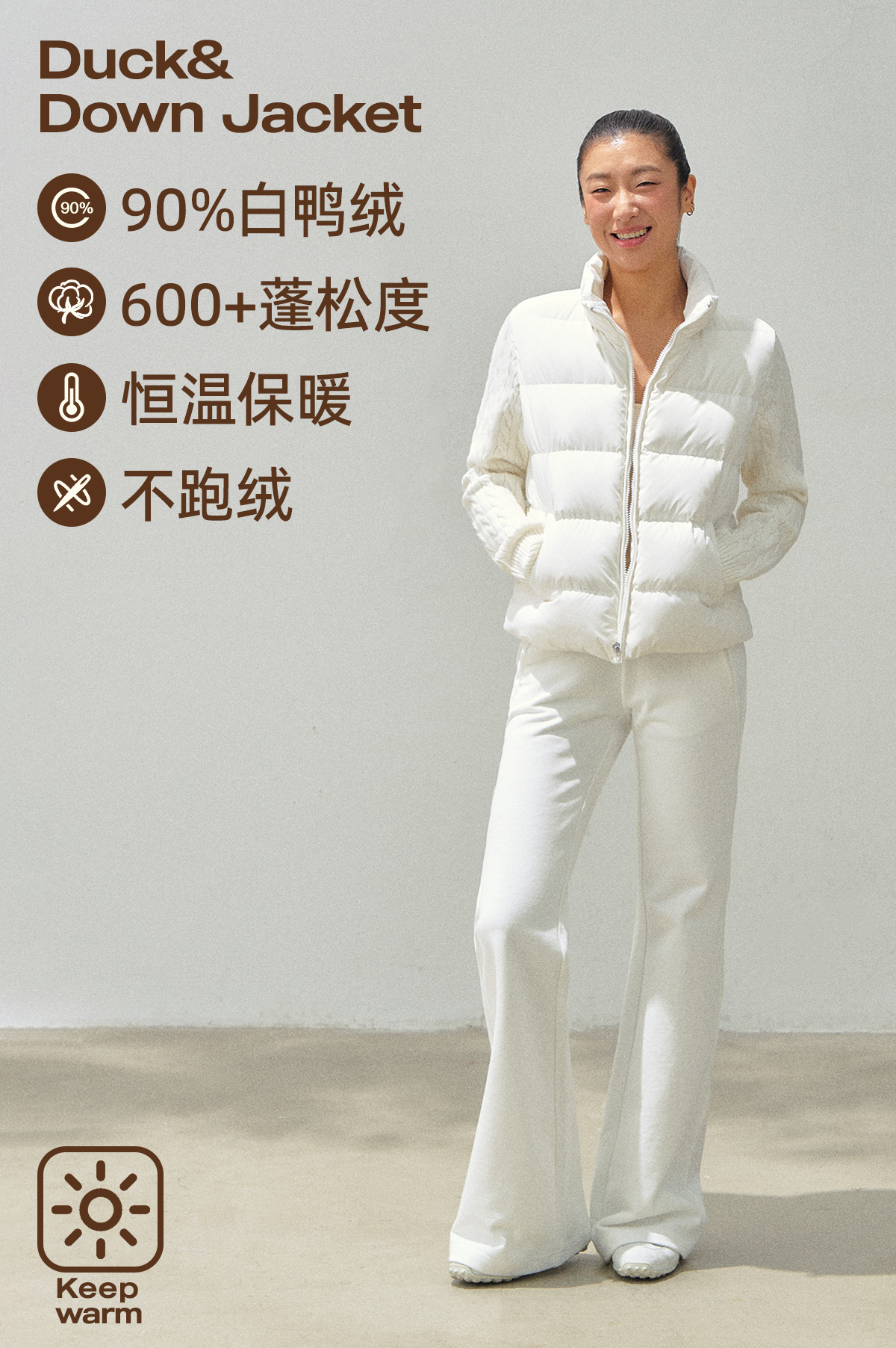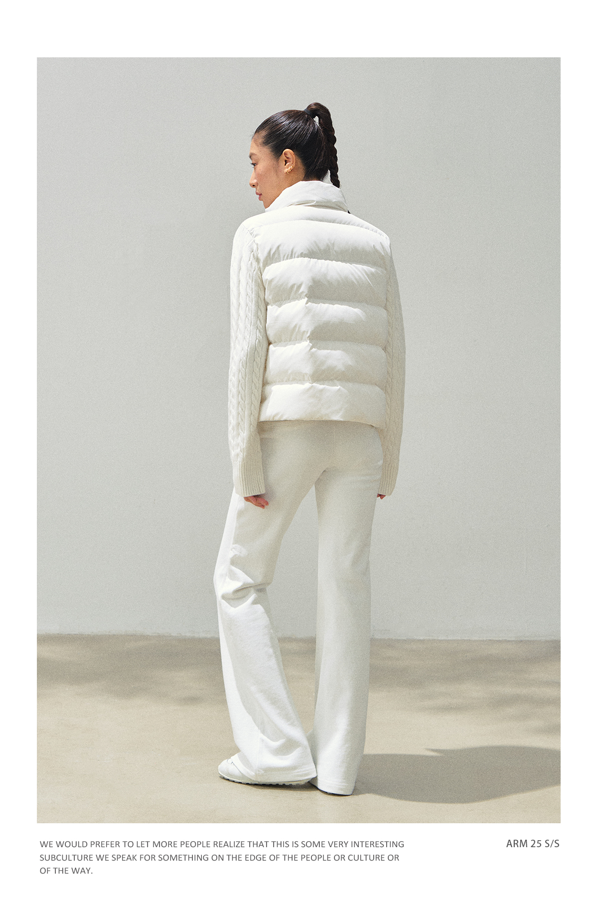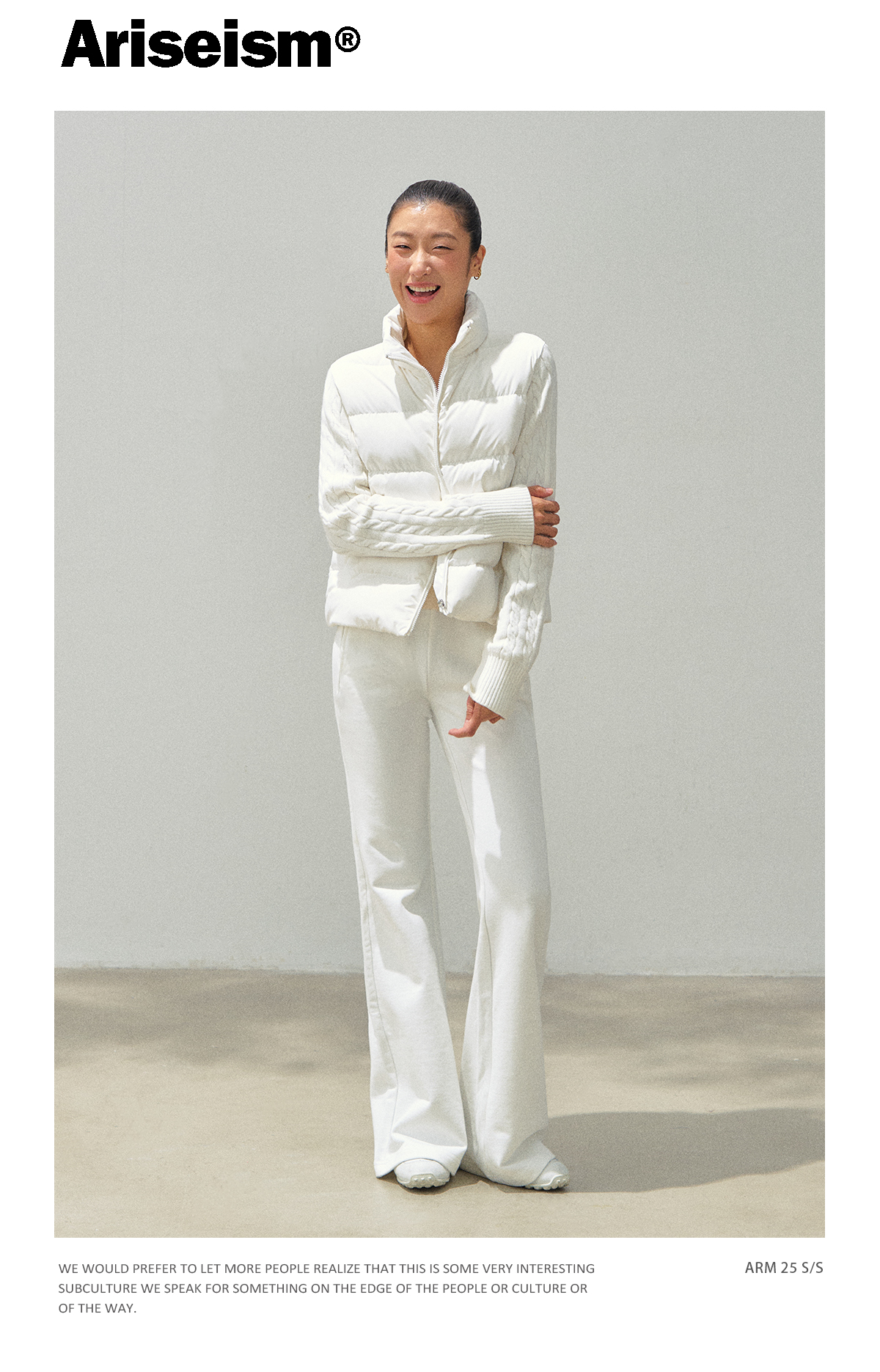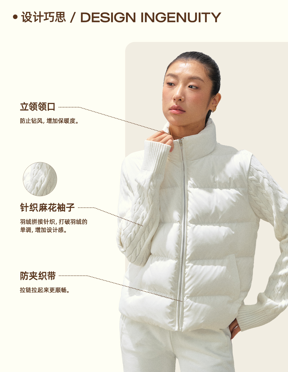 Ariseism 美式复古设计感立领针织拼接羽绒服女秋冬新款保暖上衣