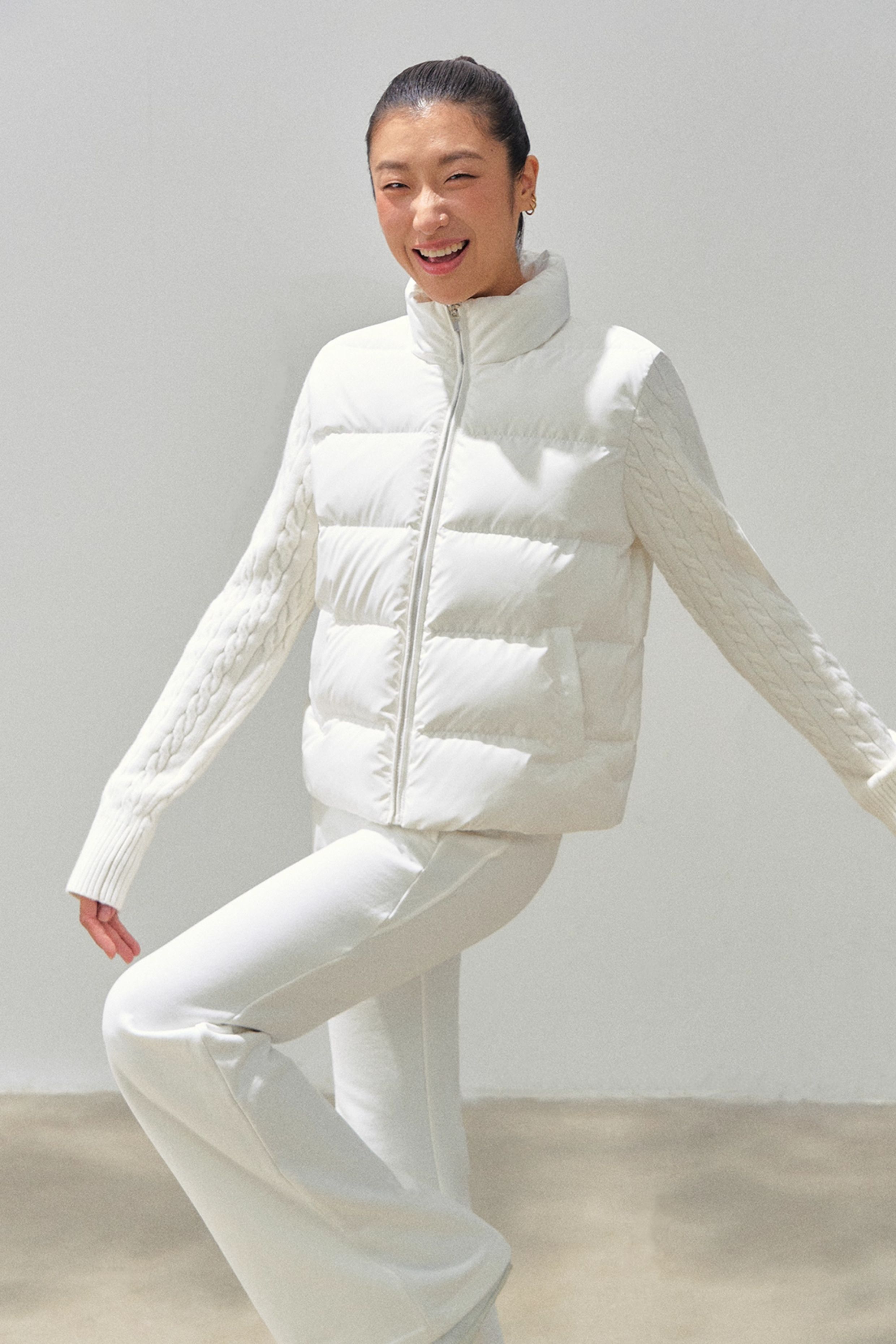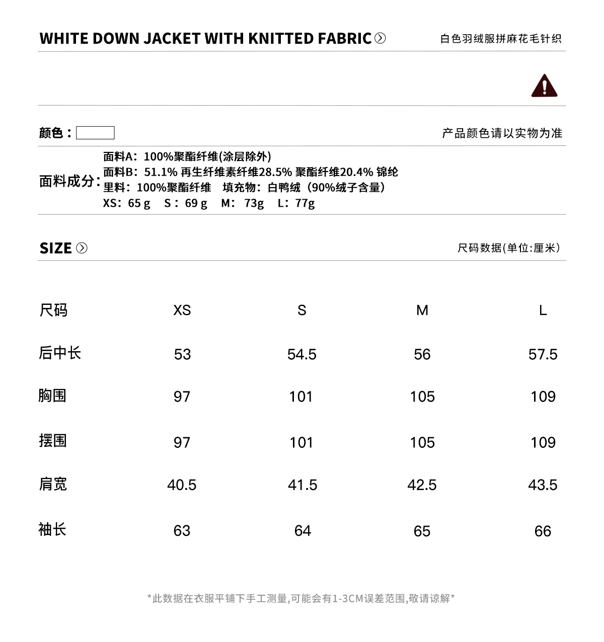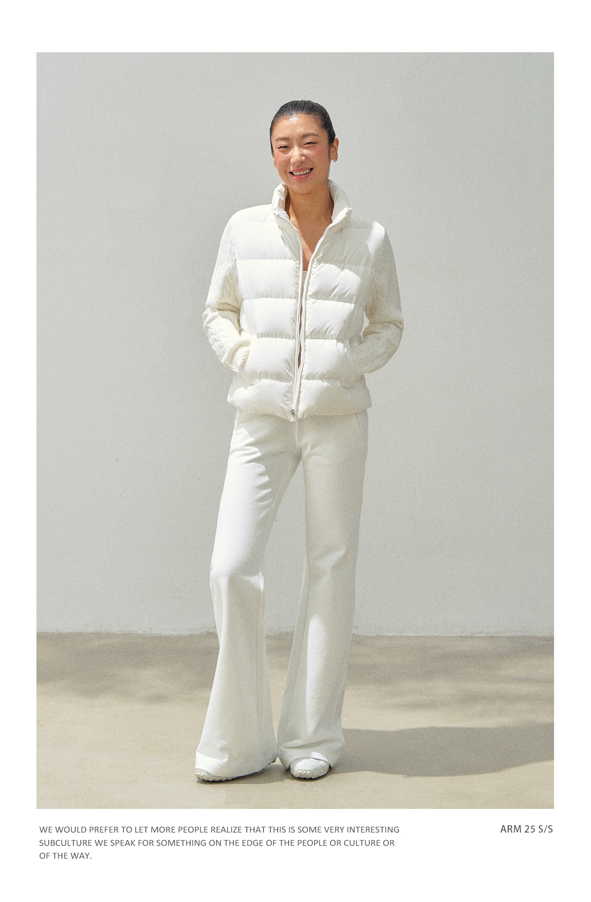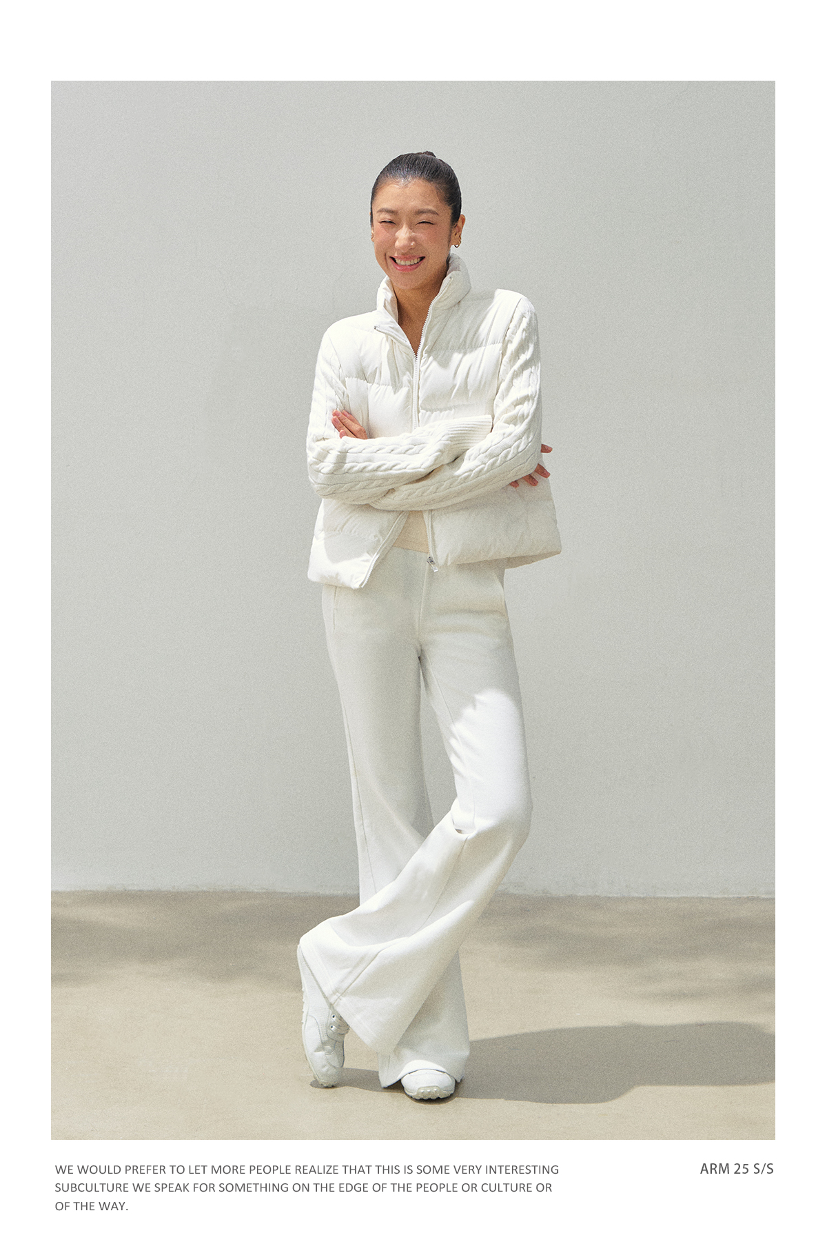 Ariseism 美式复古设计感立领针织拼接羽绒服女秋冬新款保暖上衣