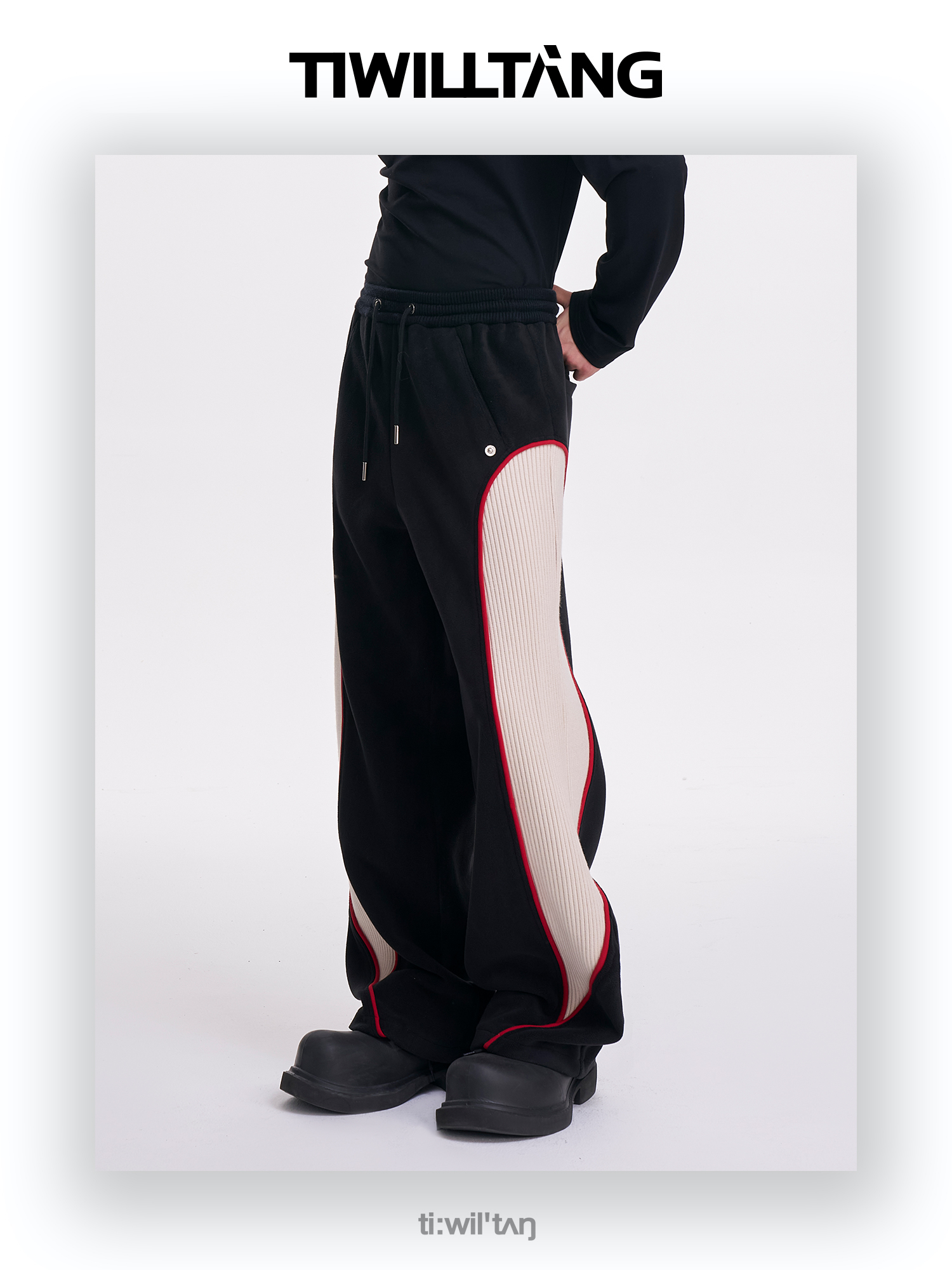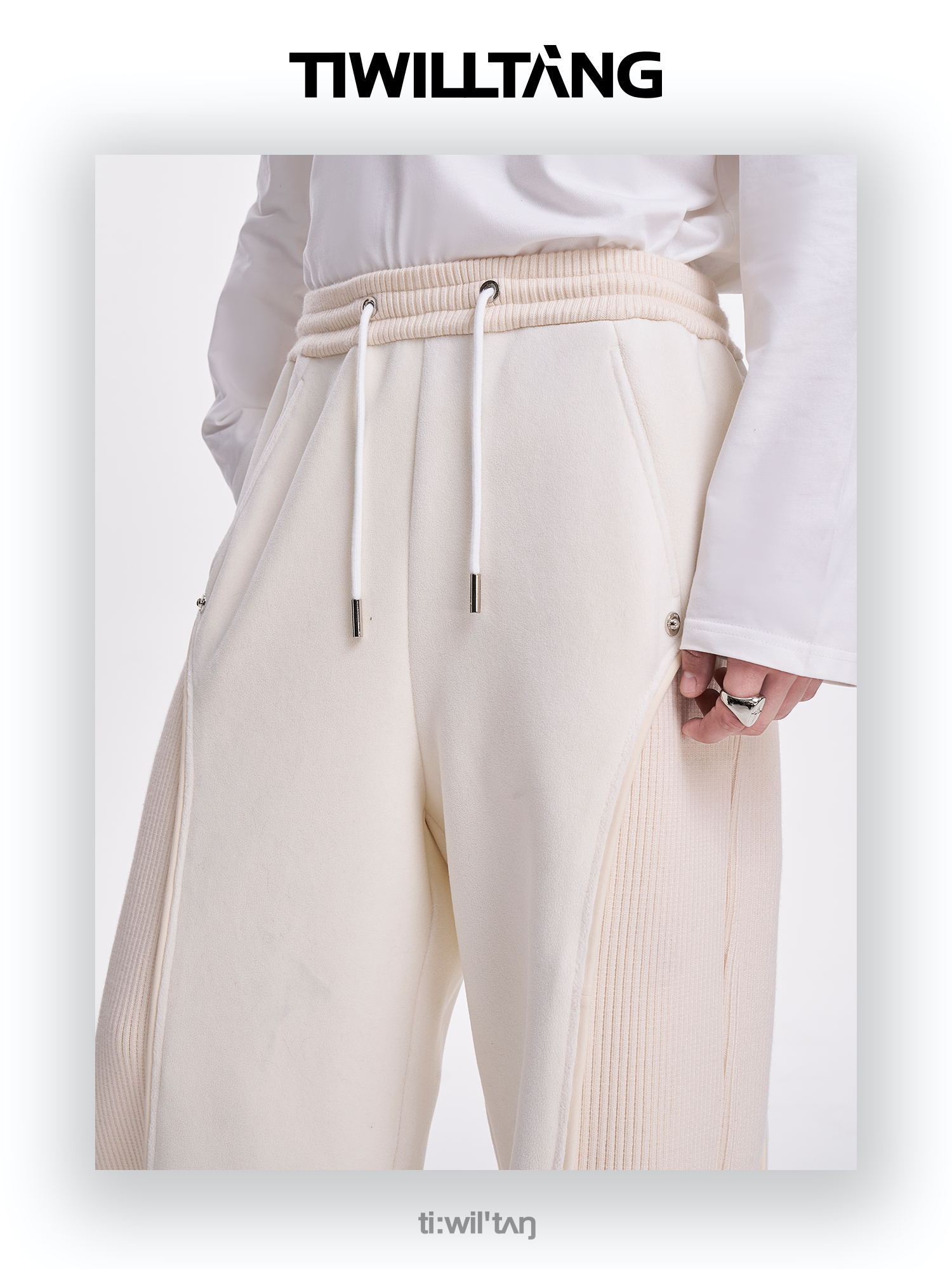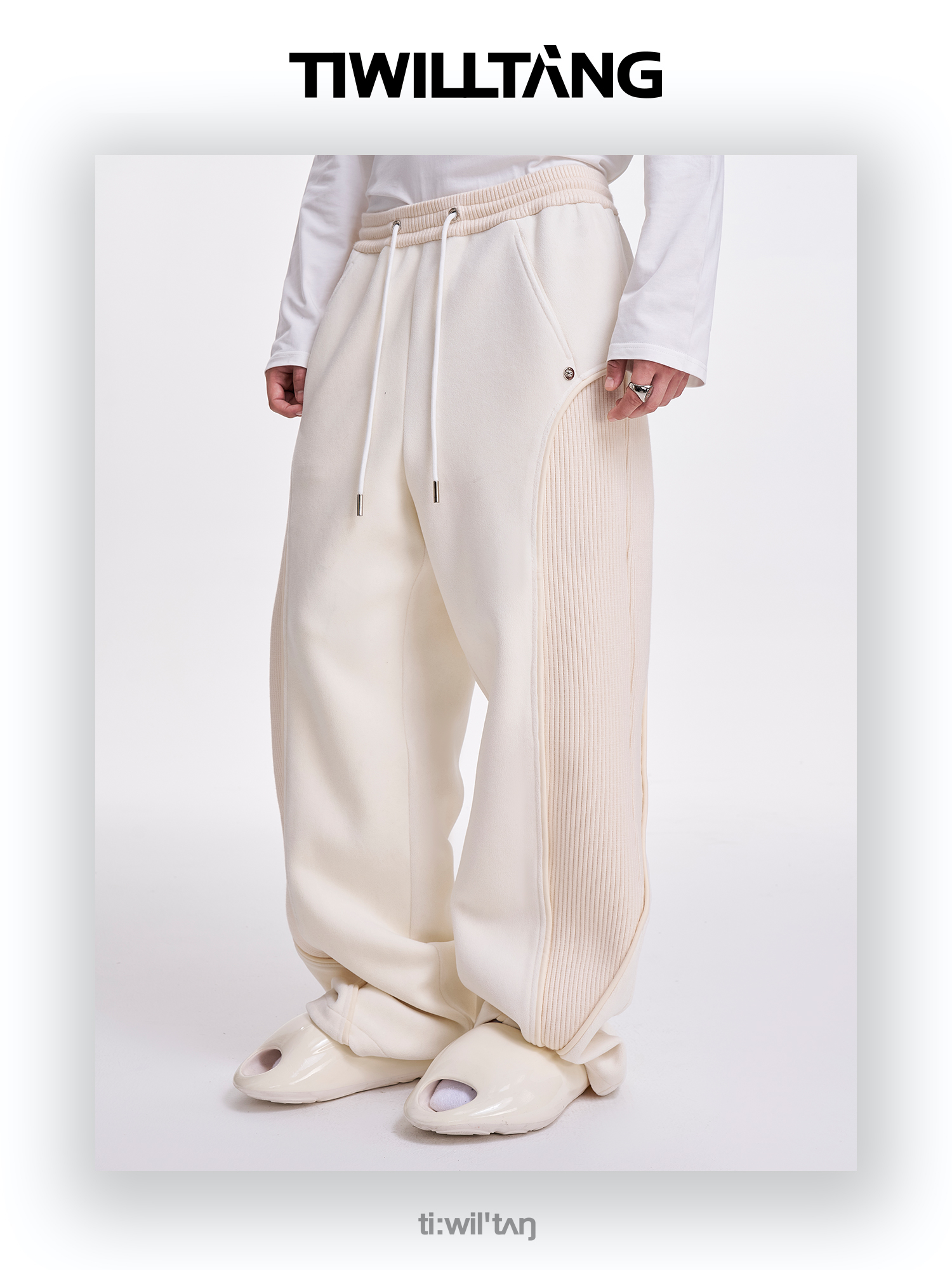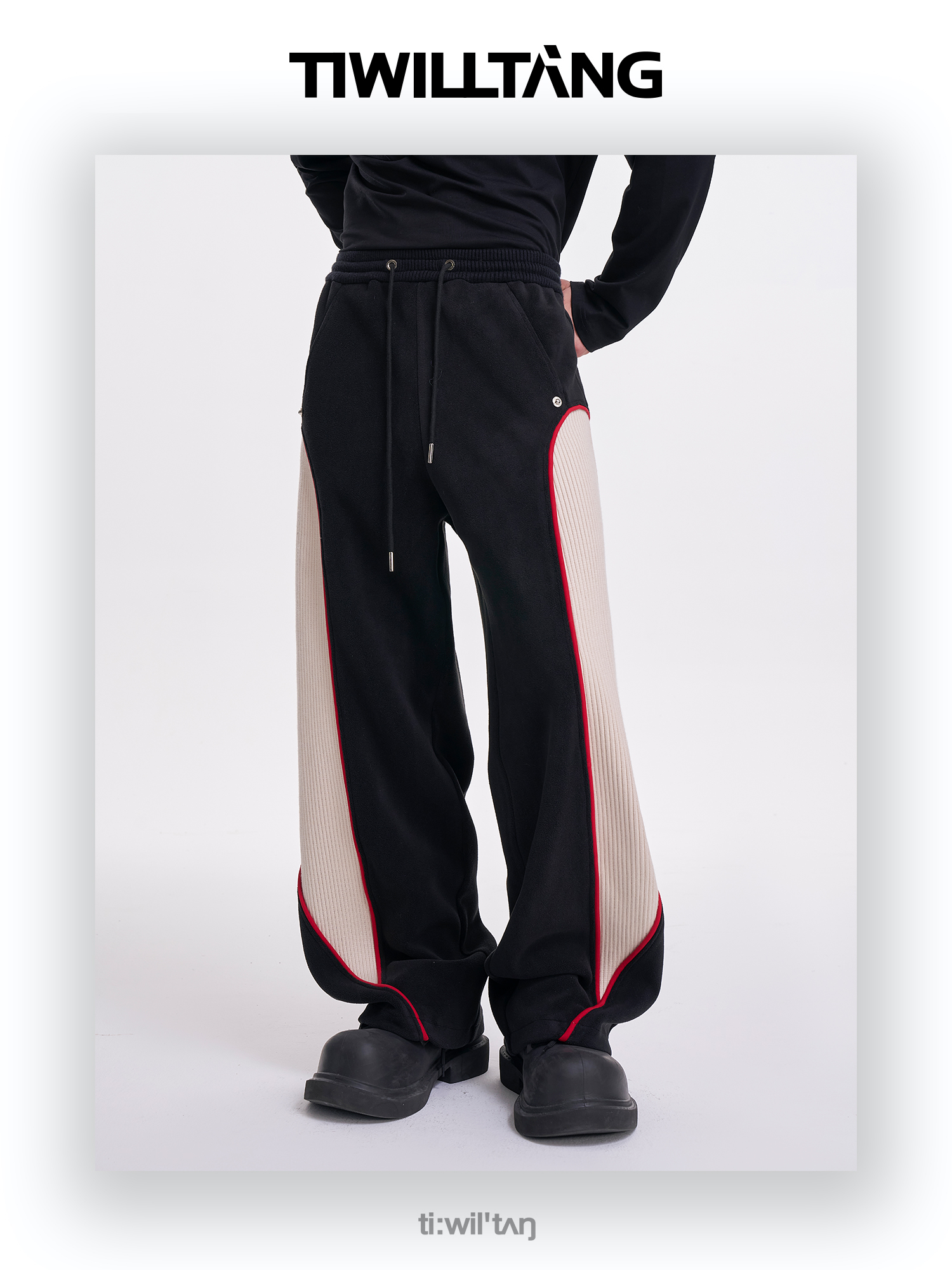TIWILLTANG启世录“坞昼烛曳”颗粒绒螺纹卫裤