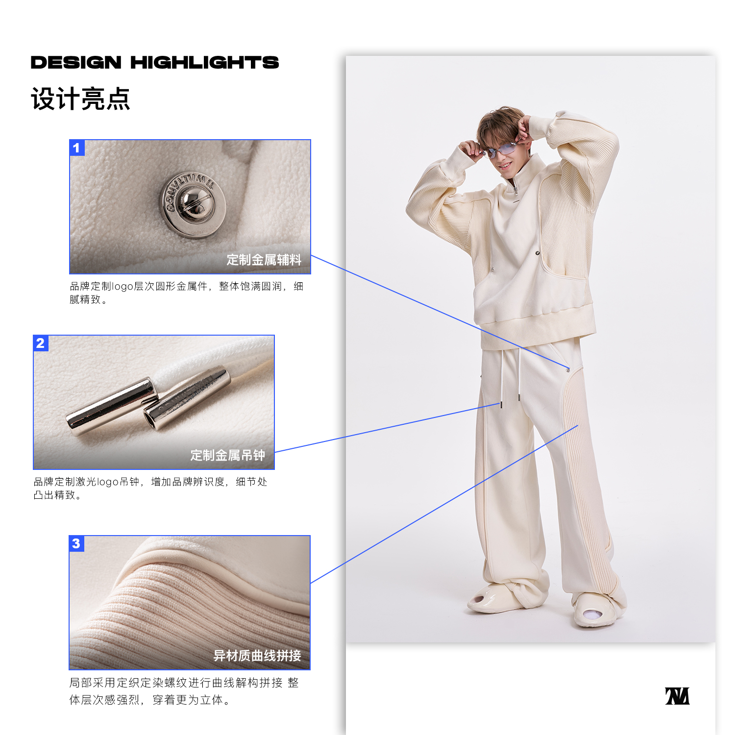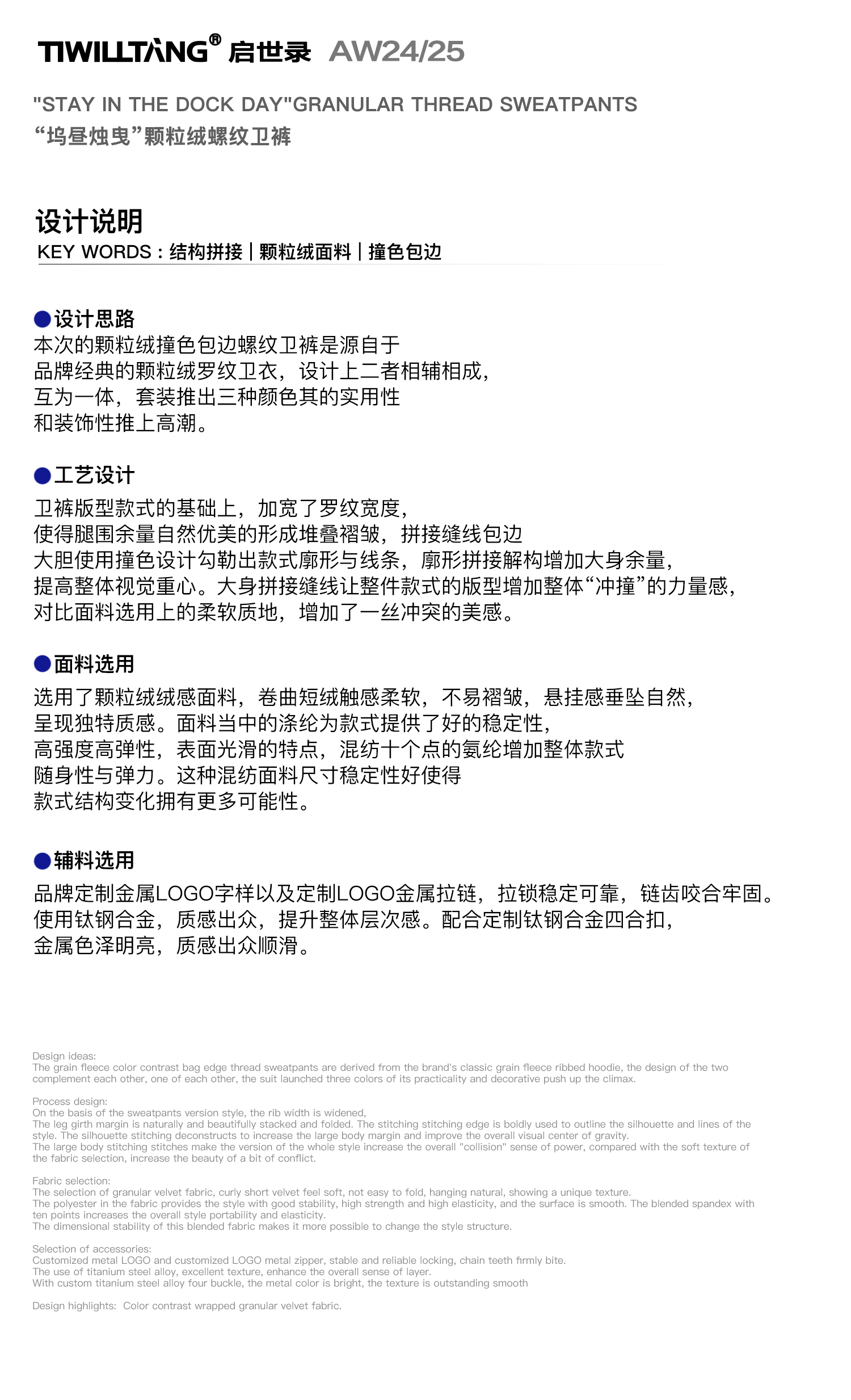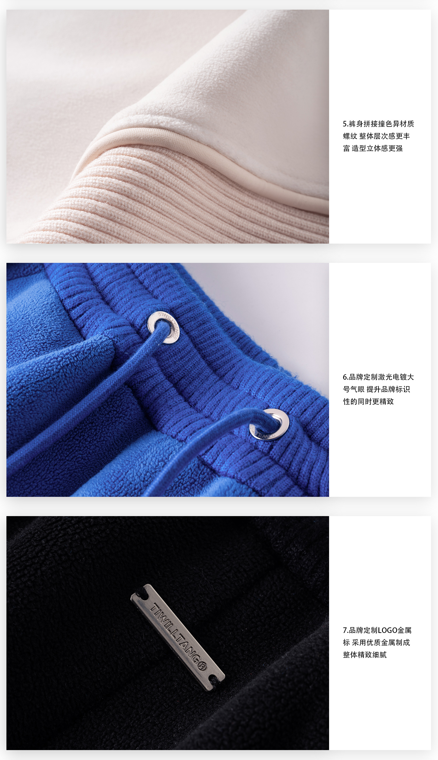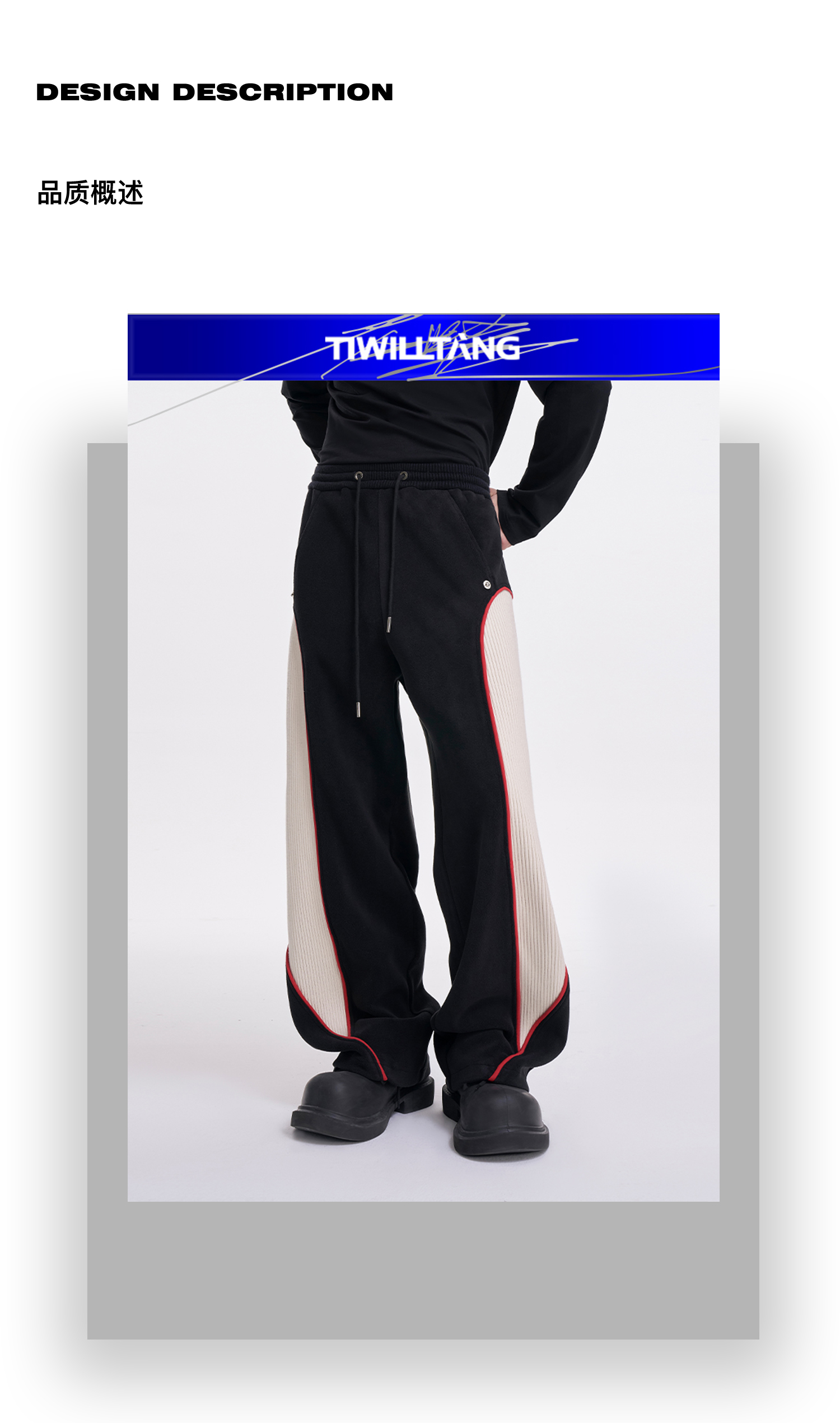 TIWILLTANG启世录“坞昼烛曳”颗粒绒螺纹卫裤