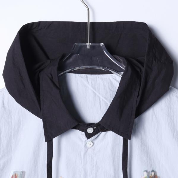 SS31227SDSA男士秋冬新款痞帅男装美式撞色人物印花连帽衬衫百搭宽松衬衣