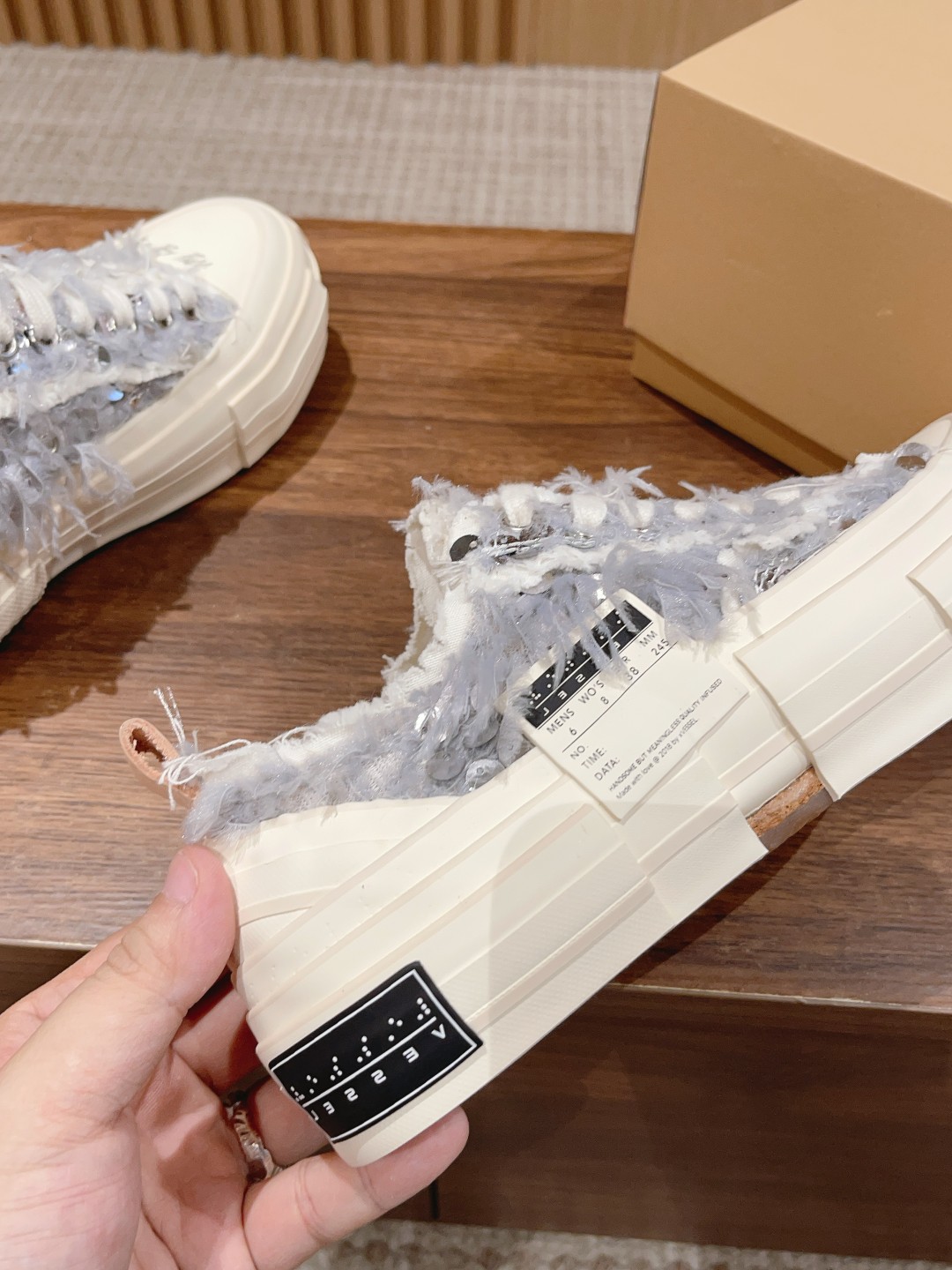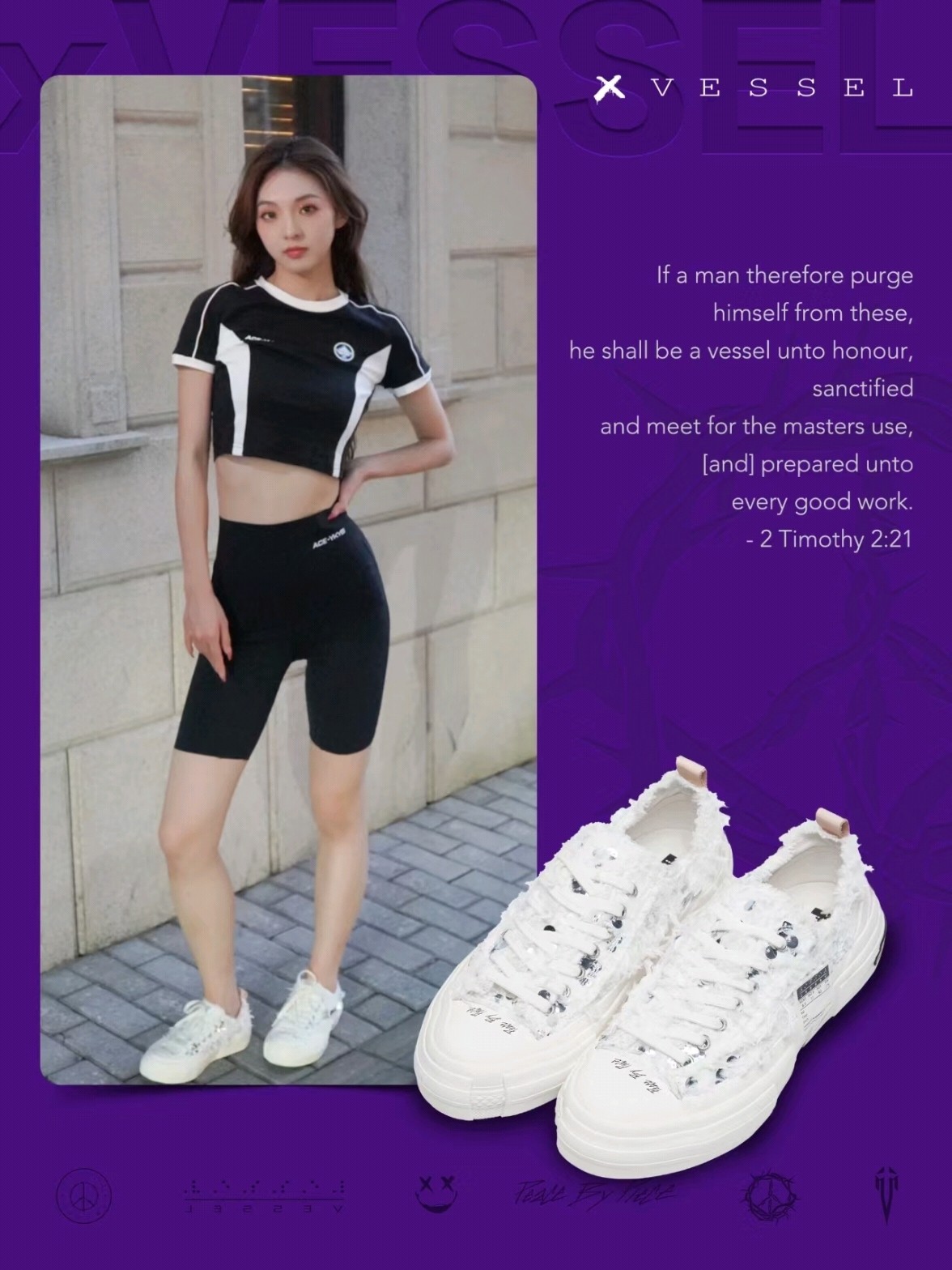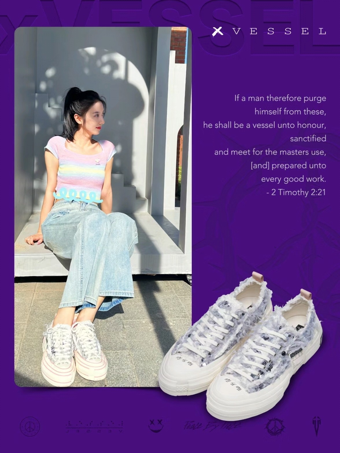 吴建豪 x Vessel 乞丐硫化帆布鞋——这款帆布鞋设计前卫,以三双拼接一双,鞋带和鞋舌的地方运用了毛边的设计,乞丐系列 号称是世界上第一双软木硫化鞋的鞋,充满了艺术感和复古的感觉,同时鞋子的设计颇有解构与重组的设计感,这也是这双鞋看起来像帆布鞋,却很有科幻感和空间感的原因所在。 中底软木填充 把古法手工皮鞋工艺与硫化鞋完美结合鞋面的设计也是沿袭了解构与重组的设计风格,将酷帅进行到底