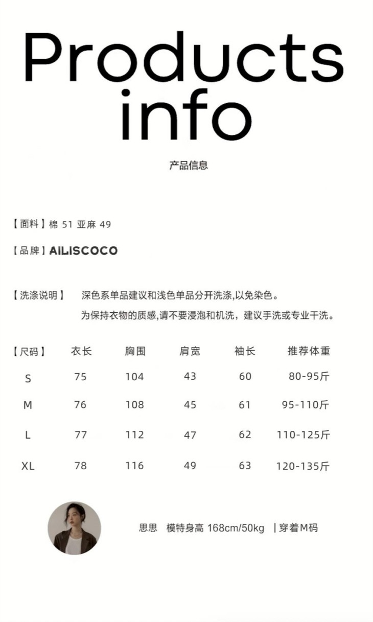 品名:法式翻领棉麻衬衫 规格:高雅黑、复古杏、复古粉 面料:51%棉、49%亚麻 发货地:广东 发货时间:下单一般48小时内发货(周末、节假日除外) 发货快递:中通快递(暂不支持指定快递) 运费政策:该商品全国部分地区包邮(新疆、西藏,港澳台地区不发货,请知悉) 售后政策:本品包装配件完整、未拆封、未水洗、不影响二次销售支持7天无理由退换货(无运费险),请知悉 温馨提醒:因显示器像素差异与拍摄灯光原因,图片与实物颜色可能存在些许色差,具体请以收到实物为准。 |