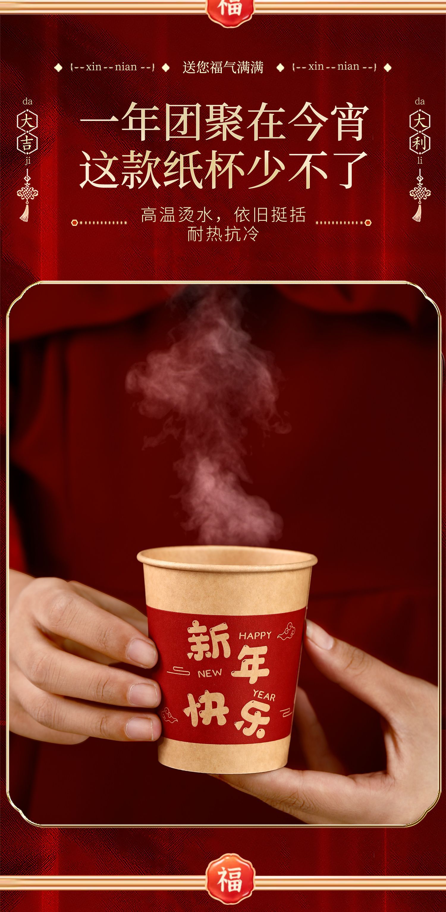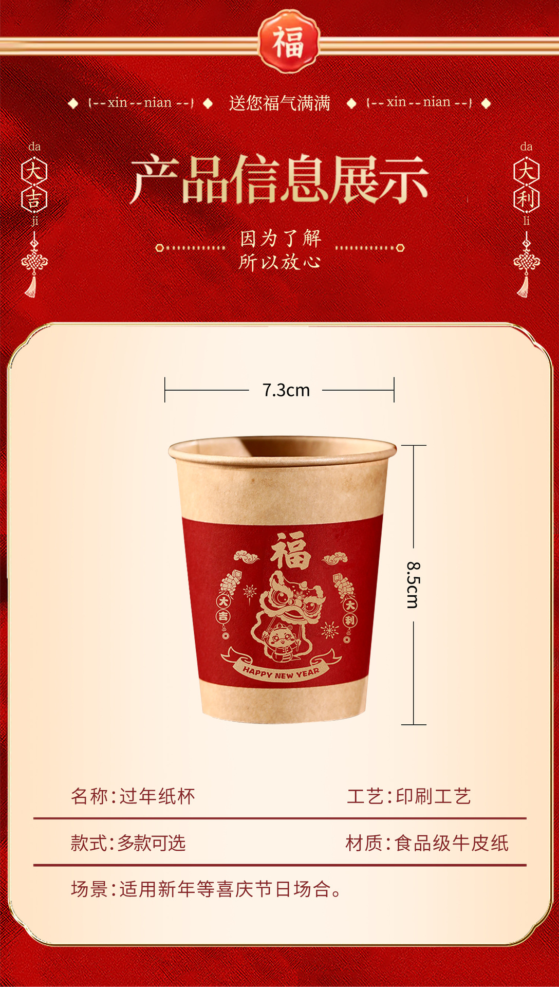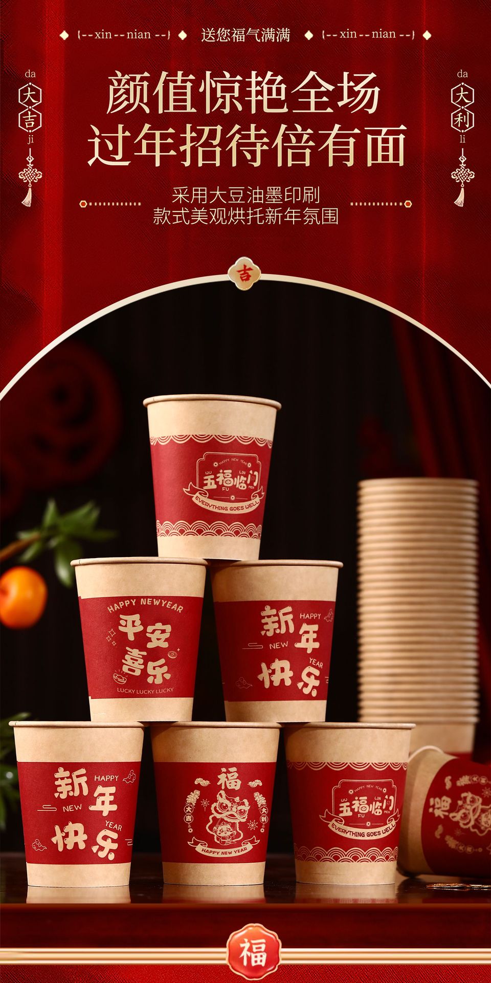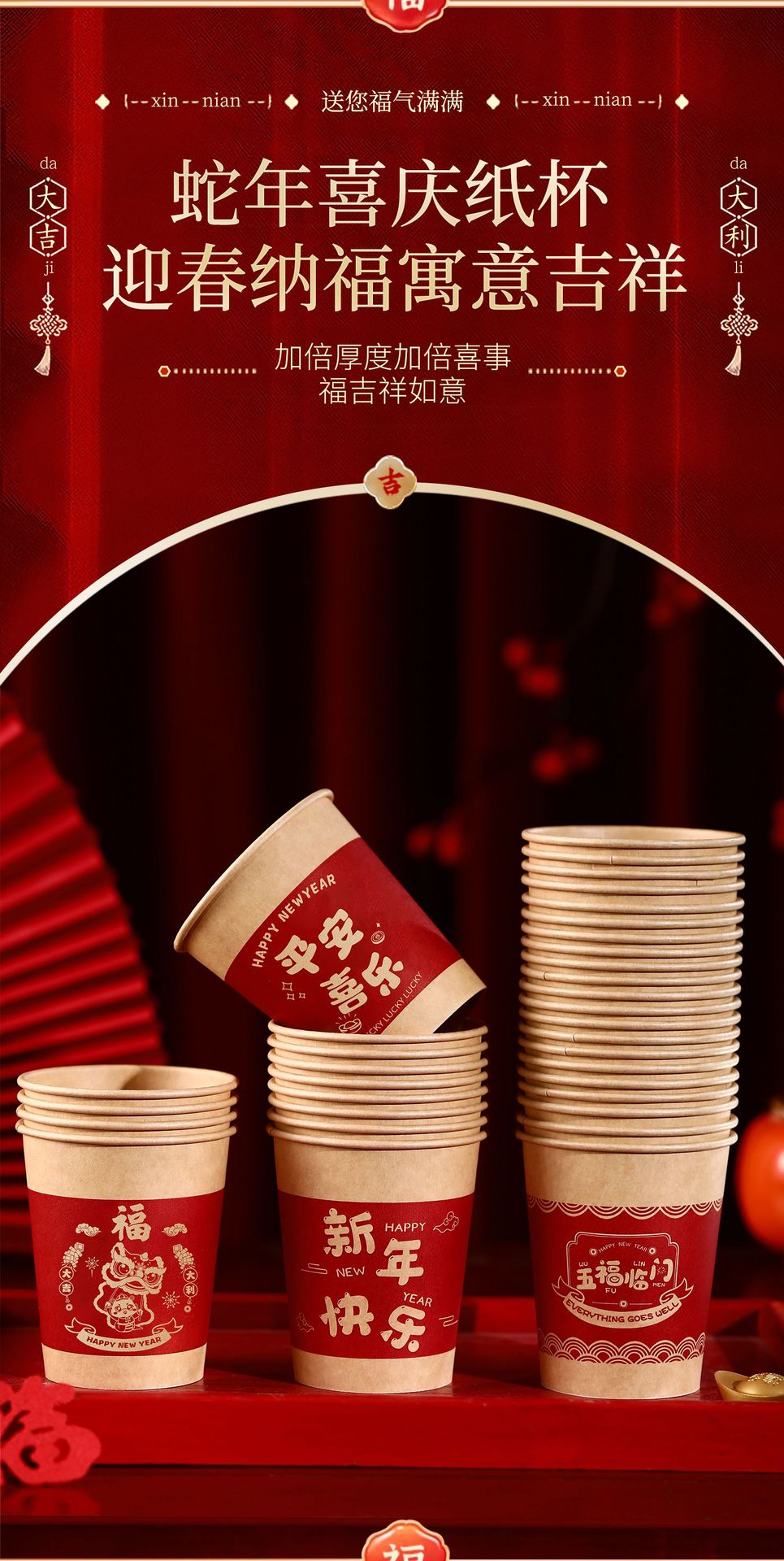 【合家欢聚其乐融!举杯共庆迎新年】2025新款一次性纸杯新年喜庆家用杯子加厚水杯蛇年年货春节用品。ry