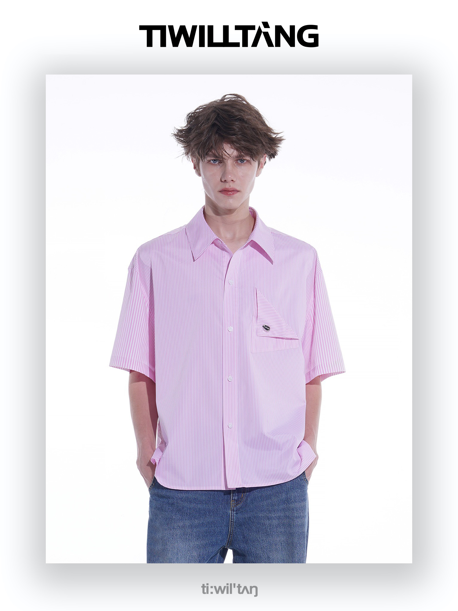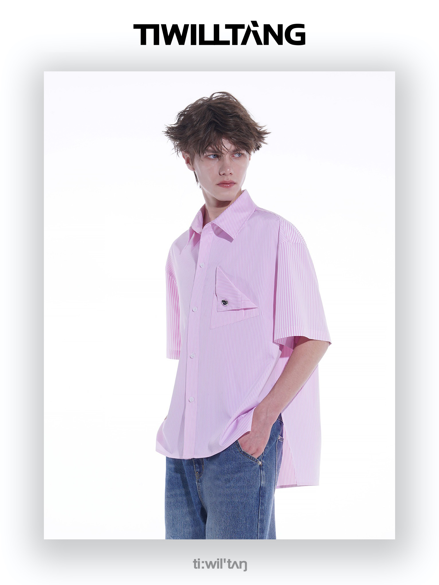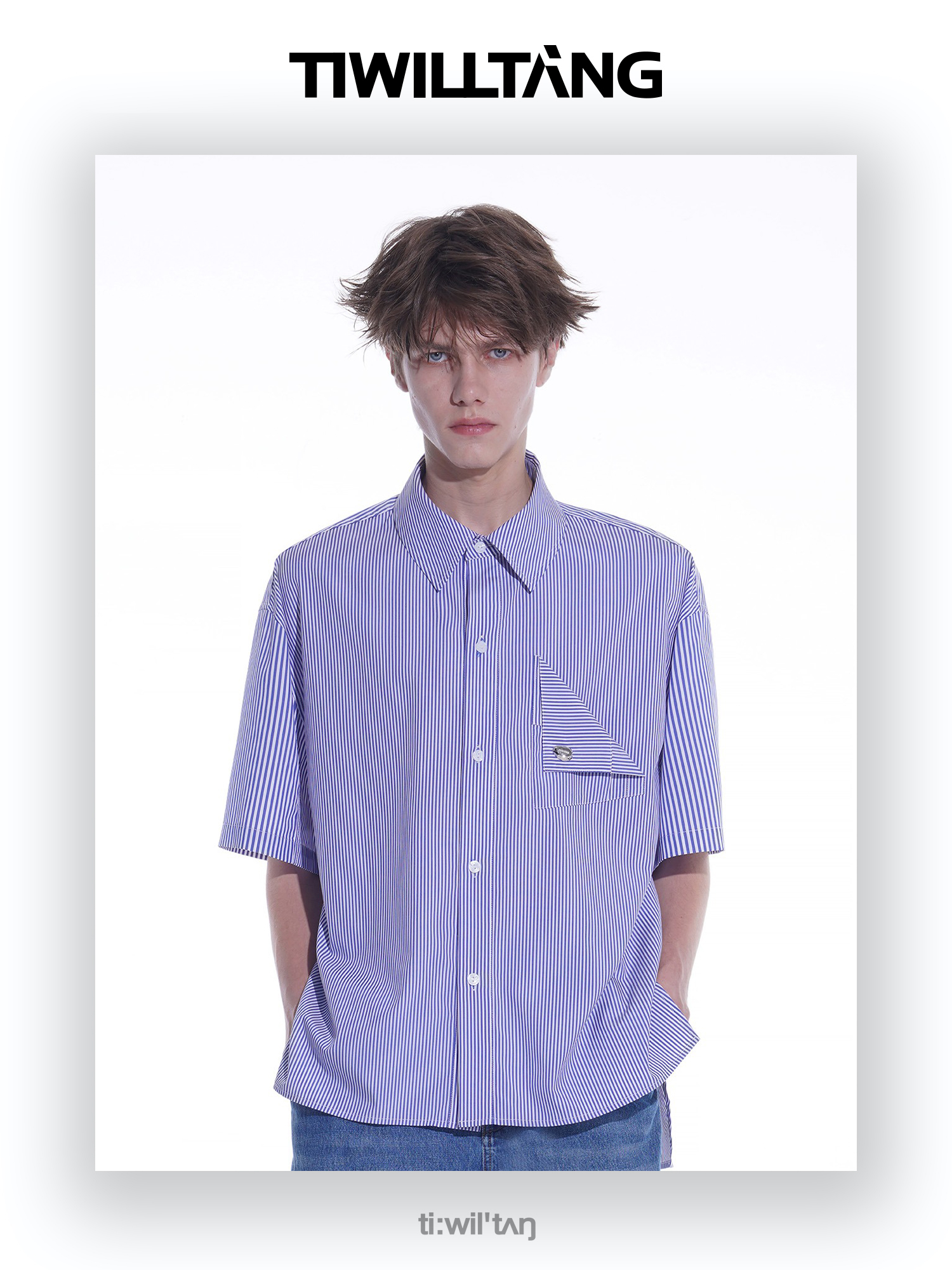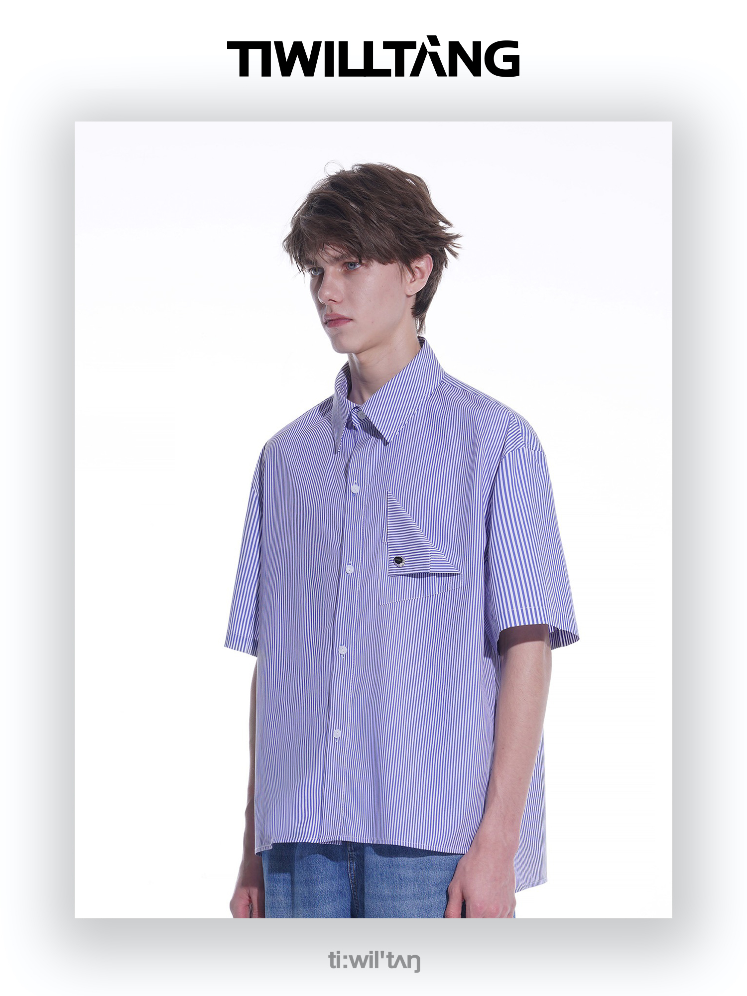 启世录TIWILLTANG“夏日门票”条纹短袖衬衫夏日男款设计感衬衣