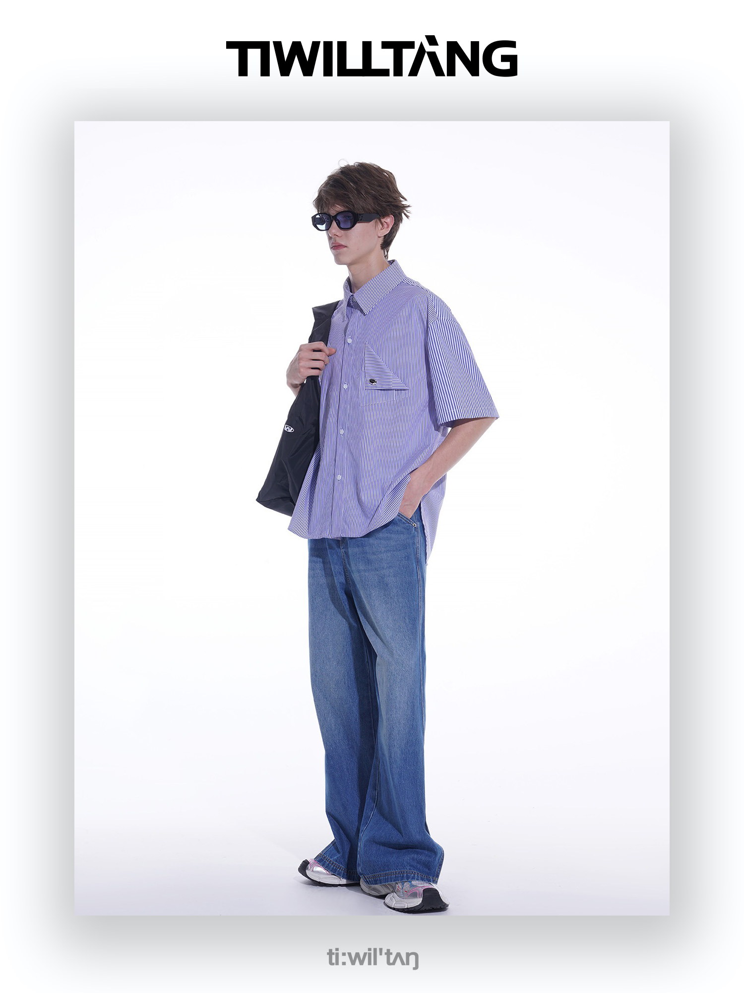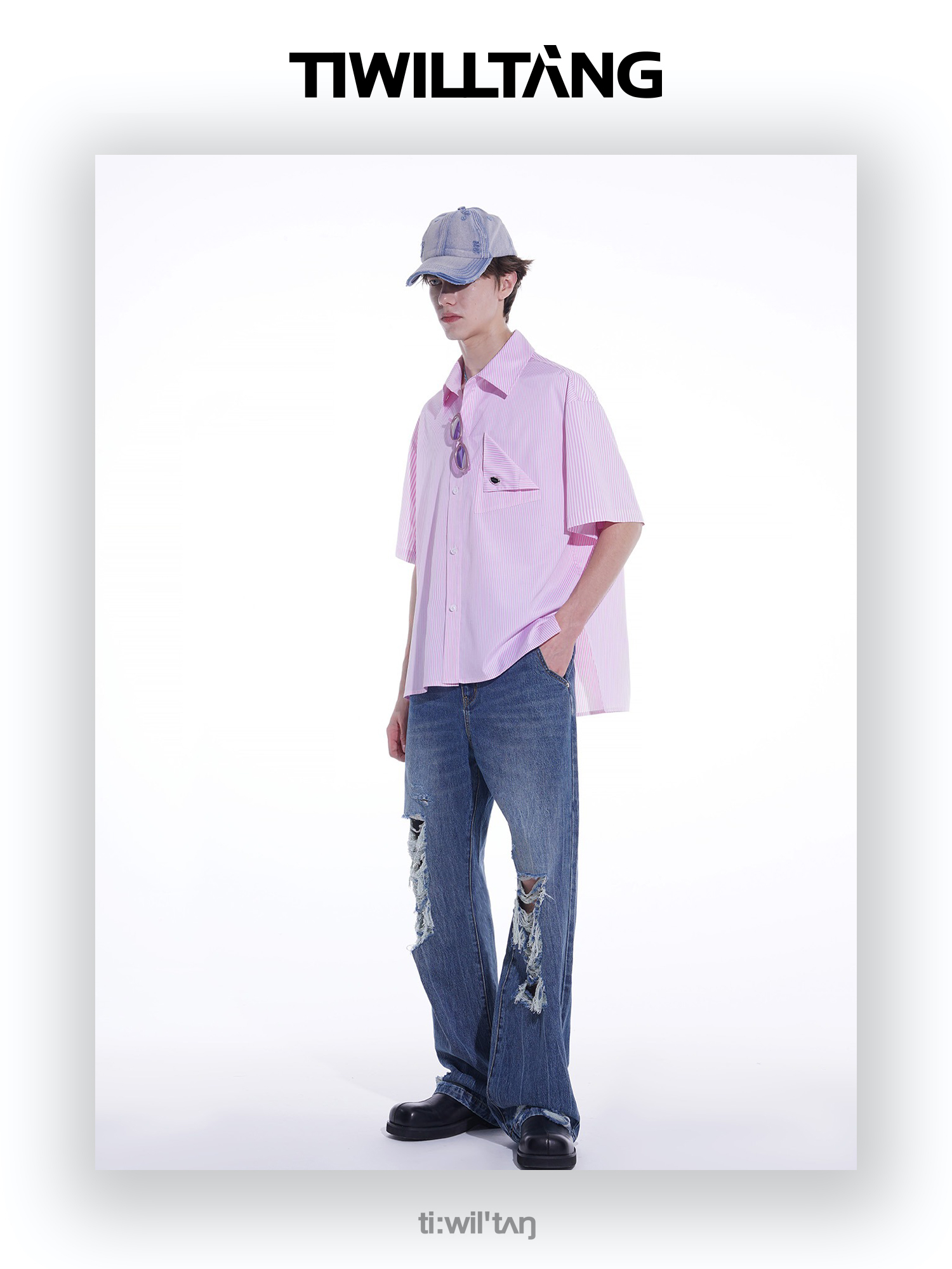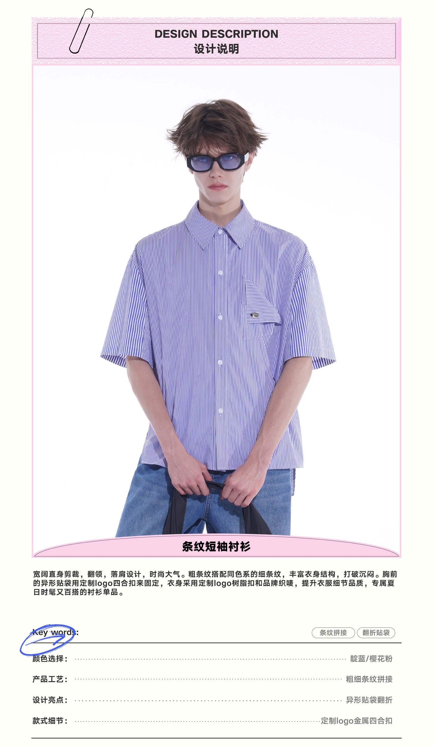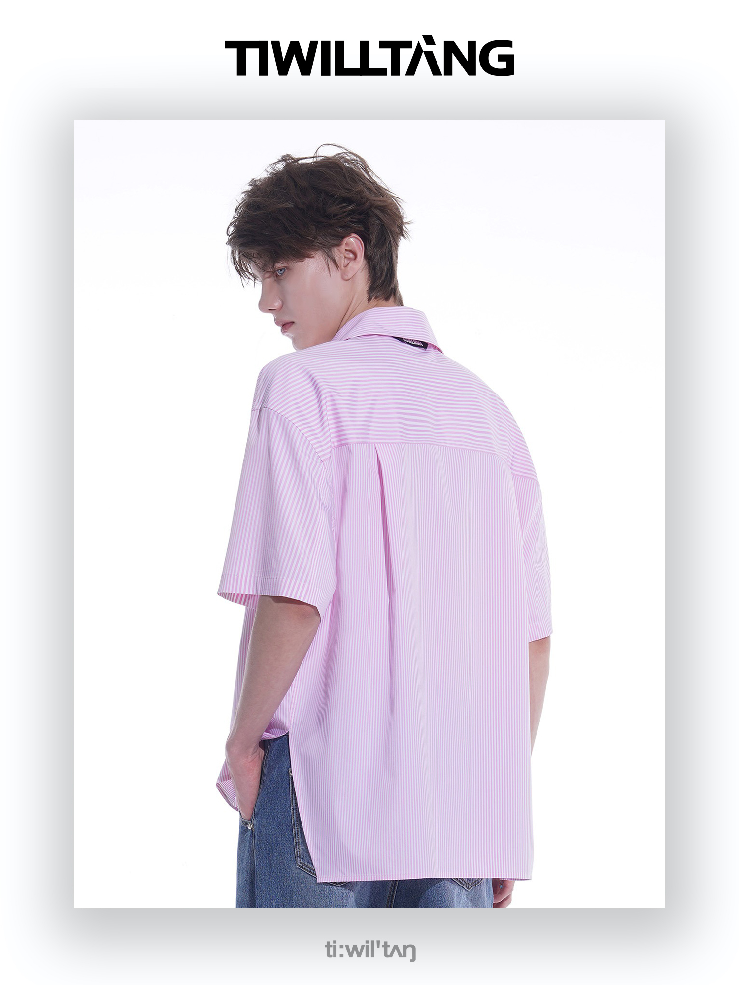 启世录TIWILLTANG“夏日门票”条纹短袖衬衫夏日男款设计感衬衣