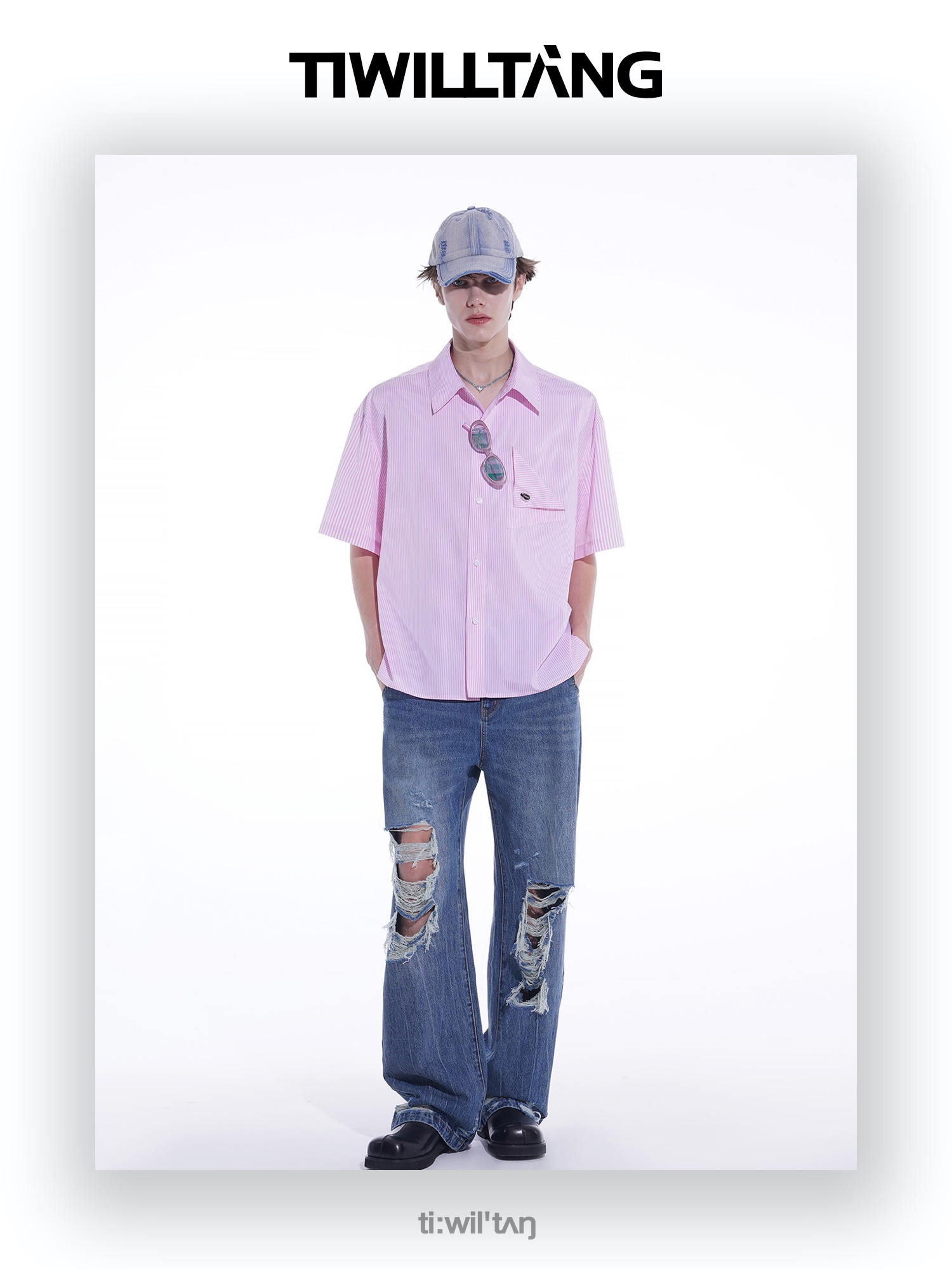 启世录TIWILLTANG“光钦予焕”垂感短袖衬衫男休闲短裤套装夏背心