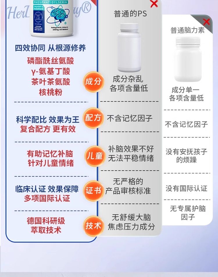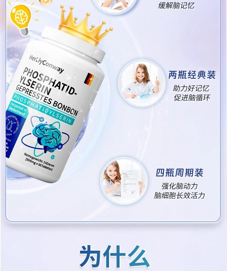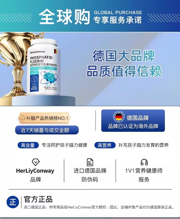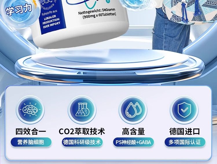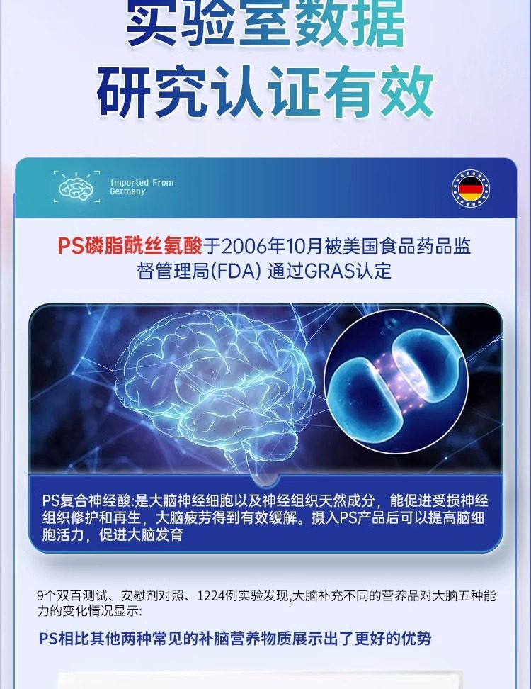 德国品牌进口脑黄金神经酸磷酯酰丝氨酸补脑青少年记忆力儿童增强