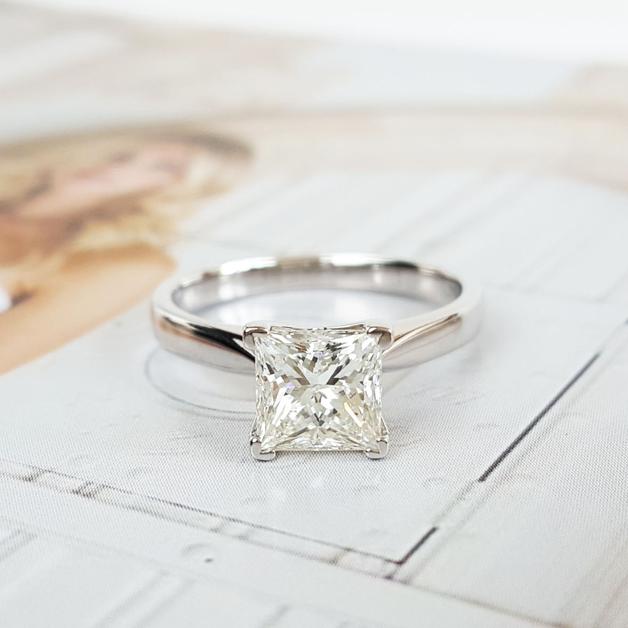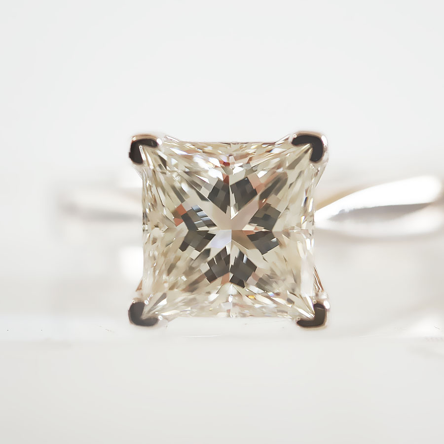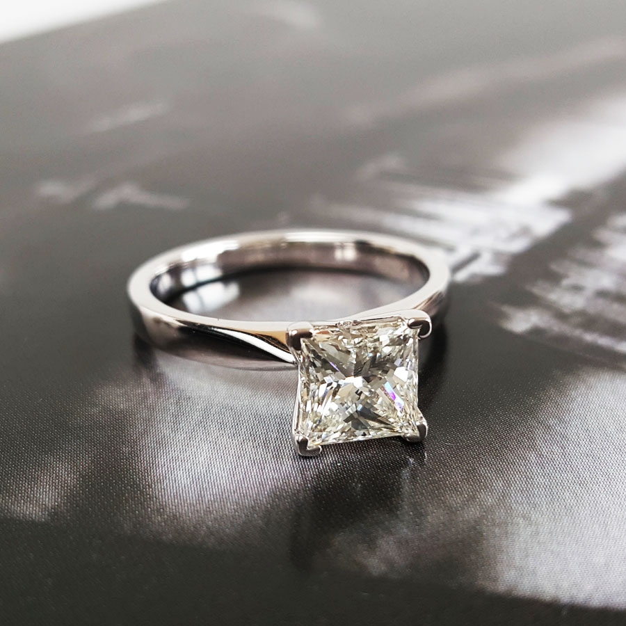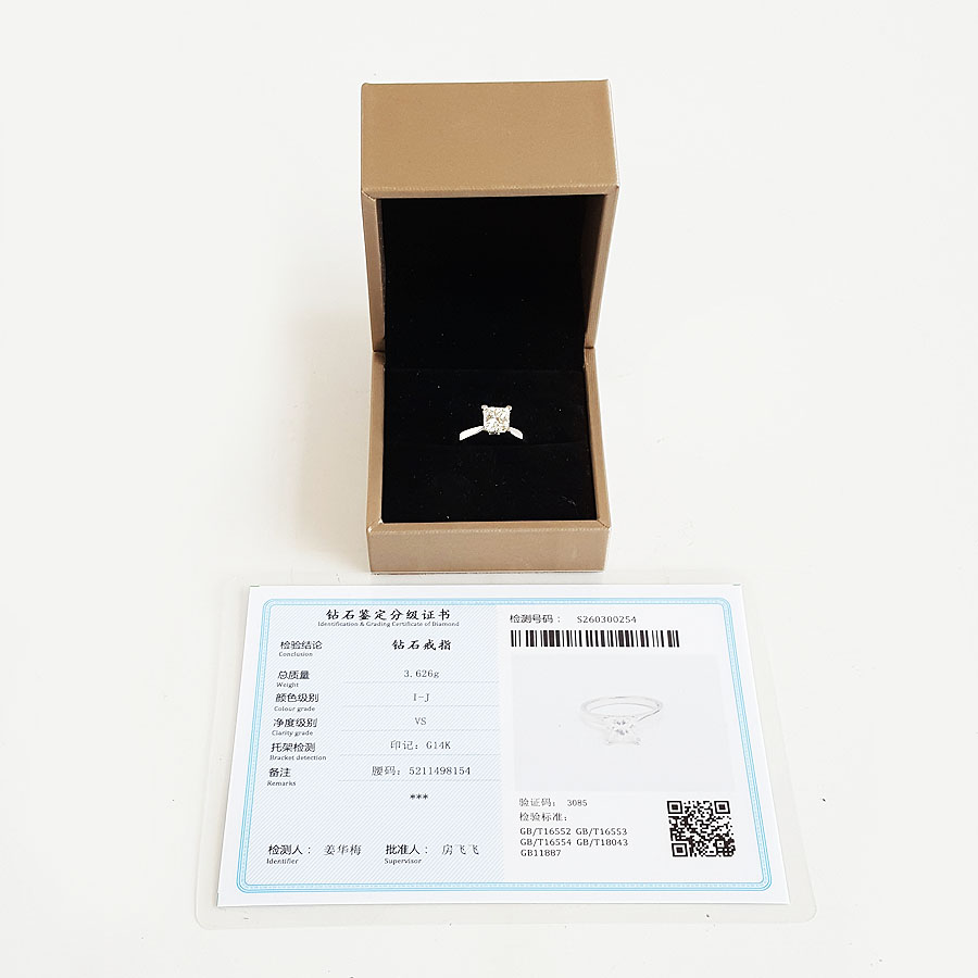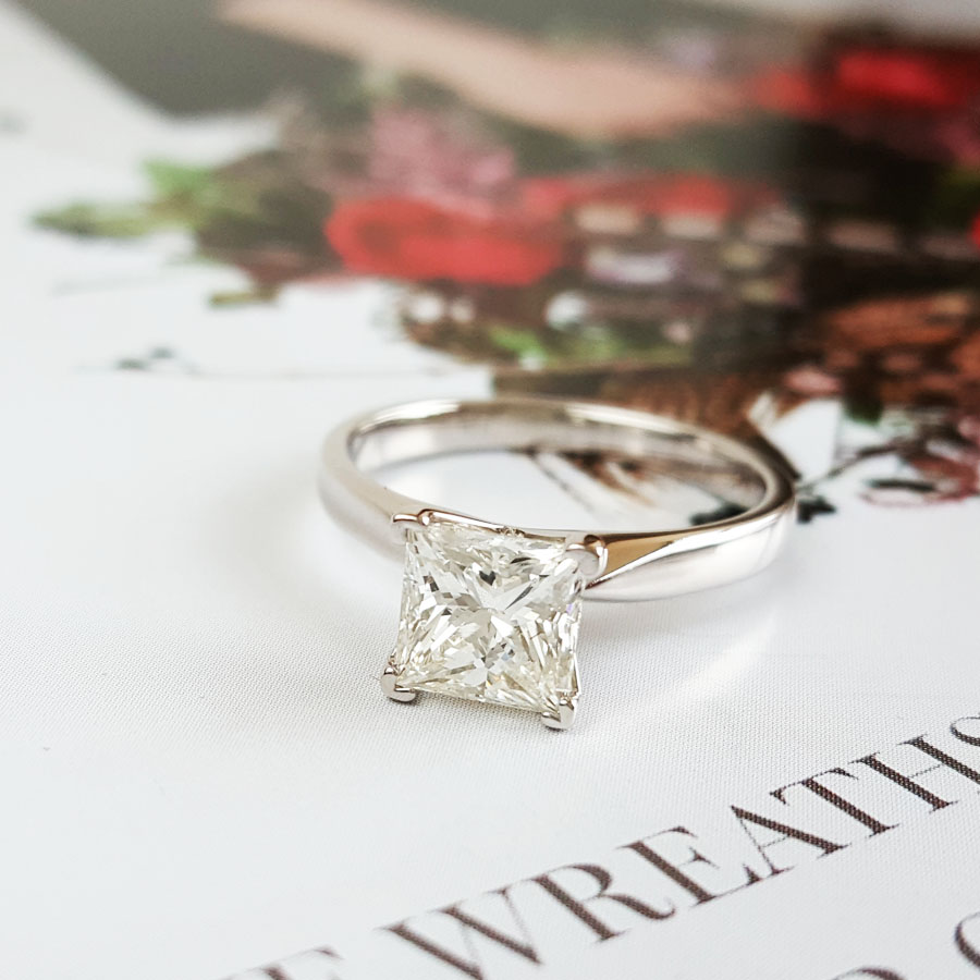 款式 | AU585白金经典时尚四爪款公主方形1.51克拉钻石戒指 |