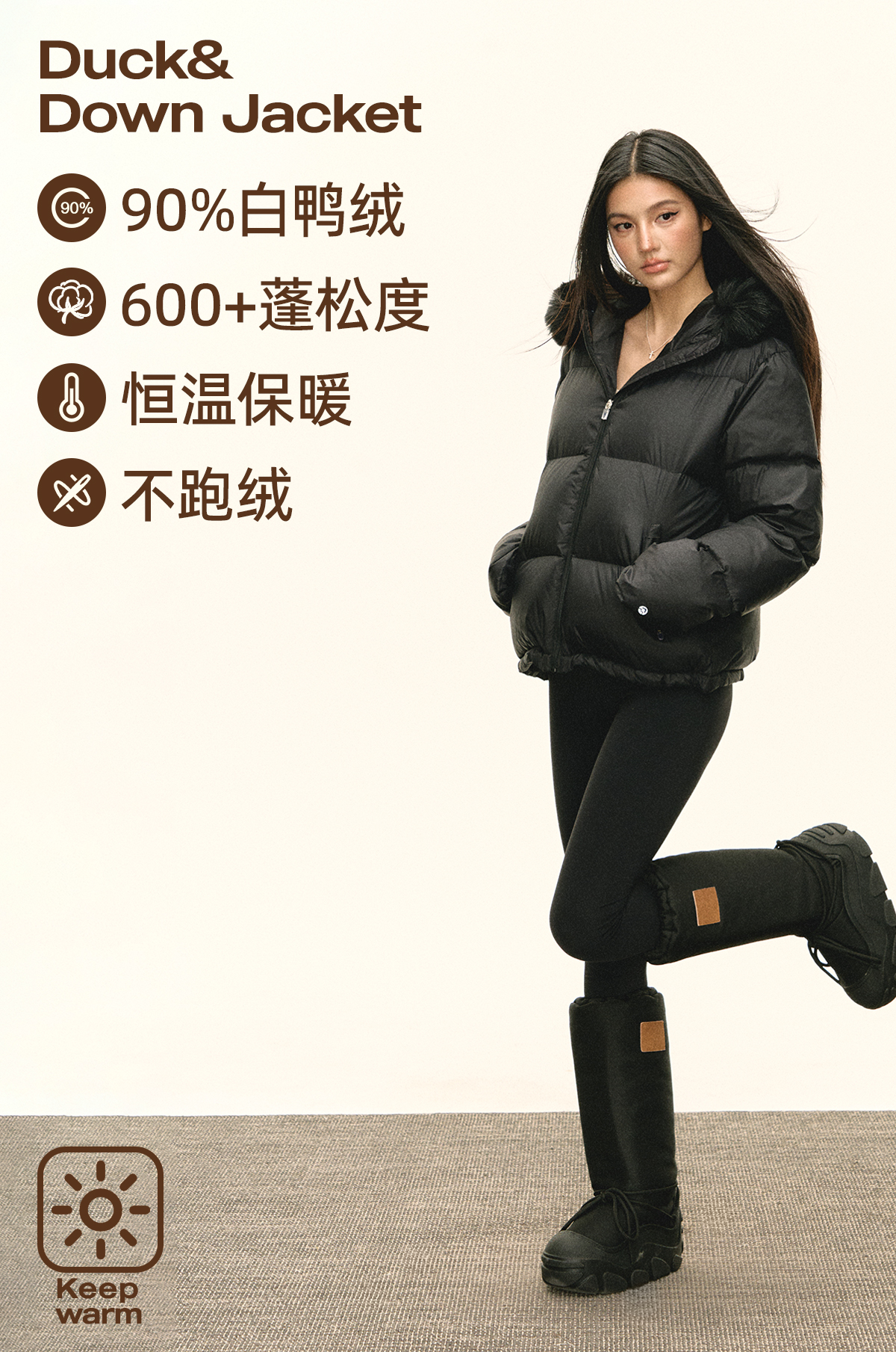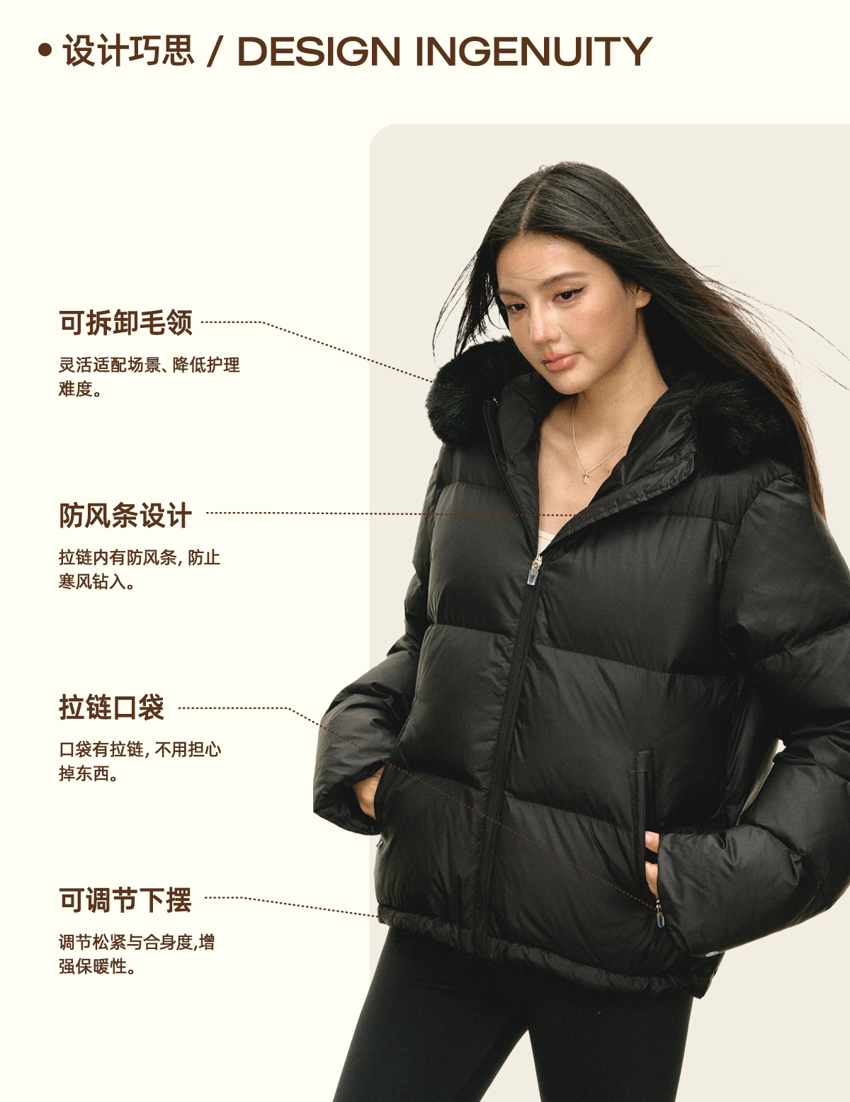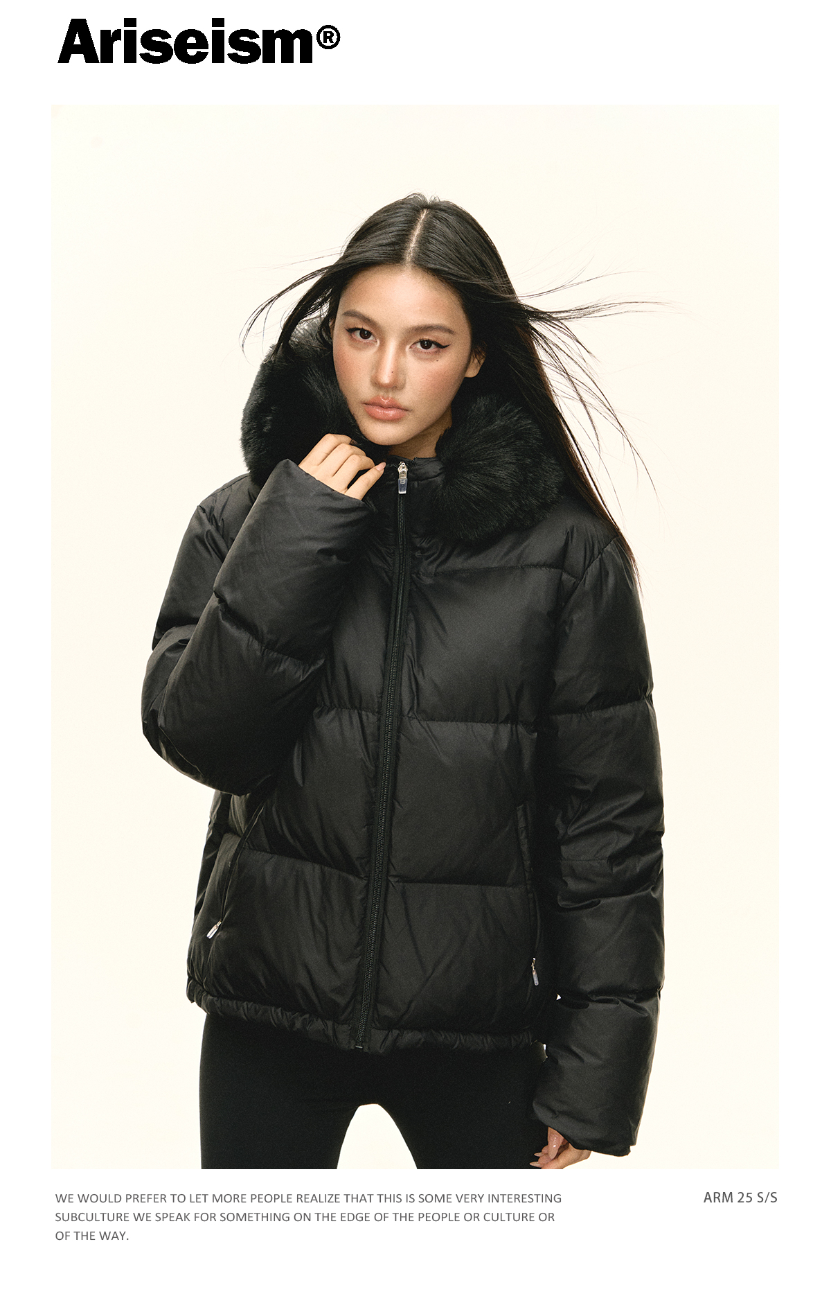 Ariseism 美式复古设计感可脱卸毛领羽绒服女冬季新款面包服外套