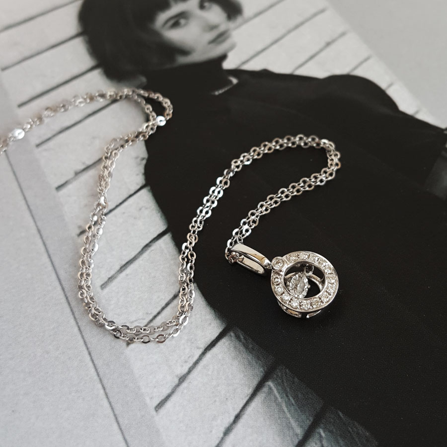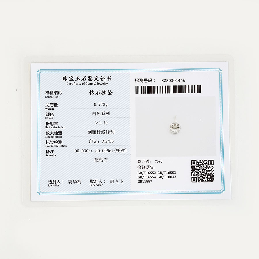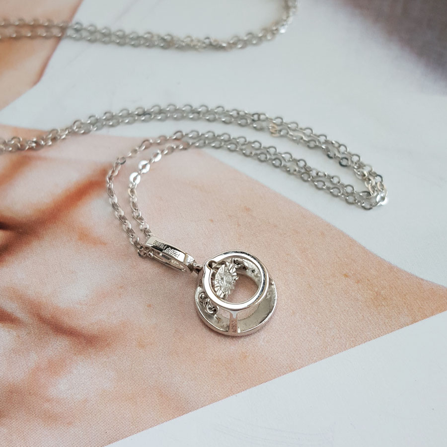 【天然正品】AU750白金镶钻简约时尚款0.03克拉钻石吊坠项链13.1*6.1*4.4MM(皆取最大值)女士现售价:1480特价!210325NJS11