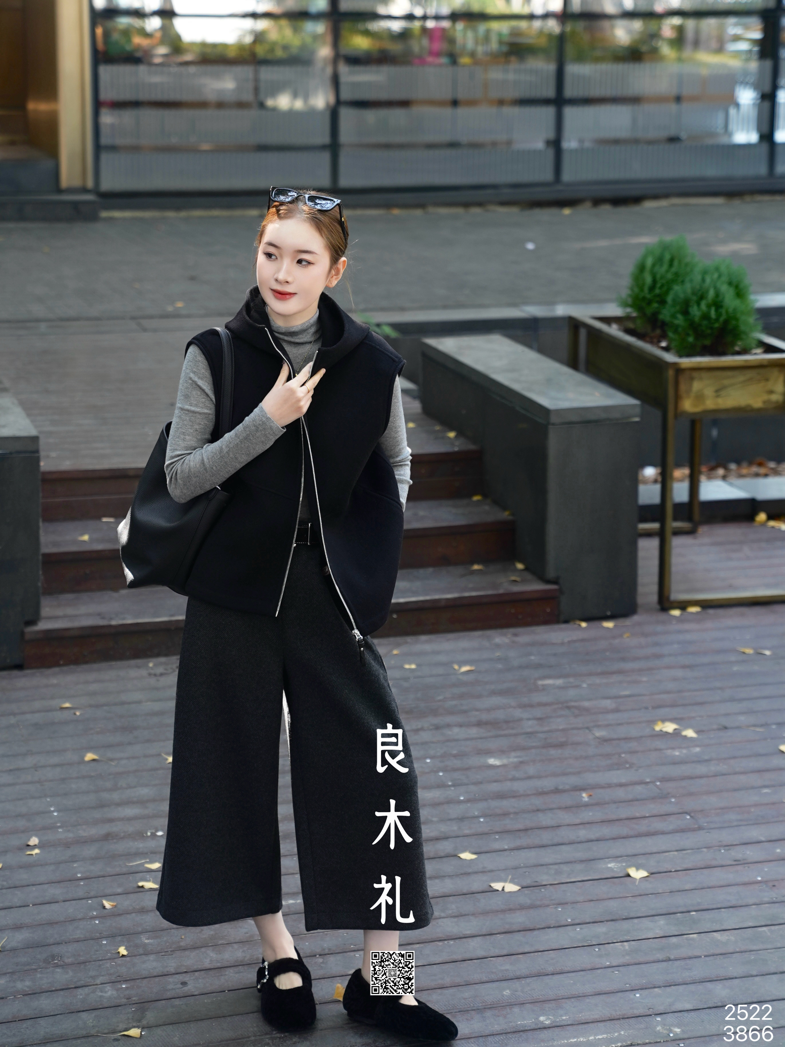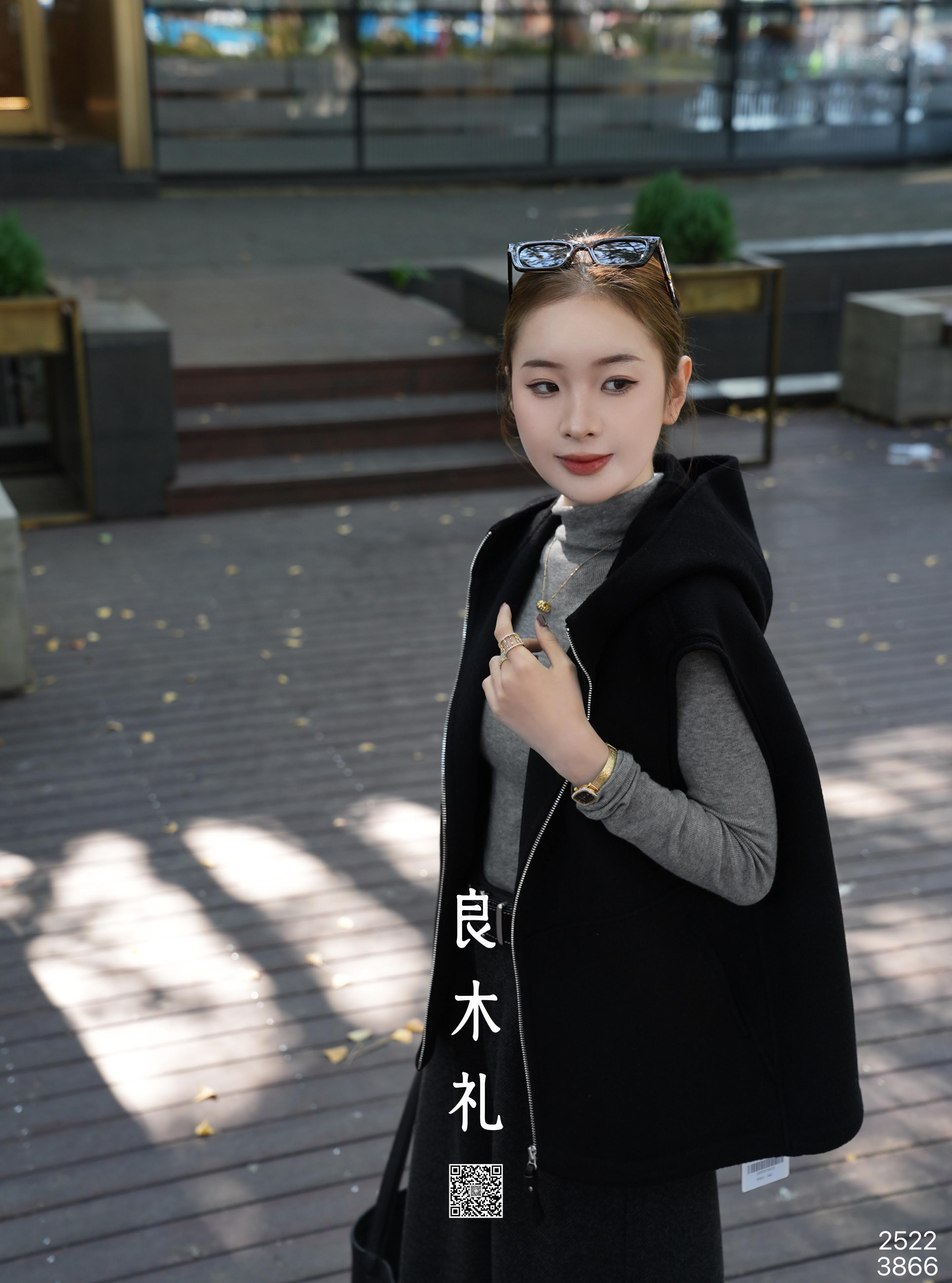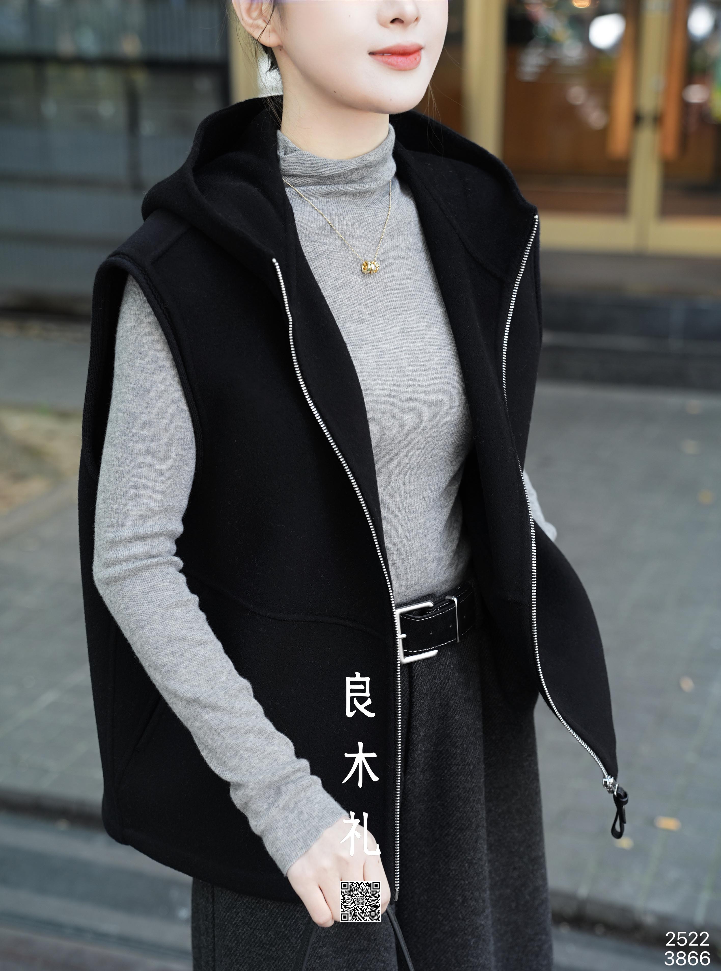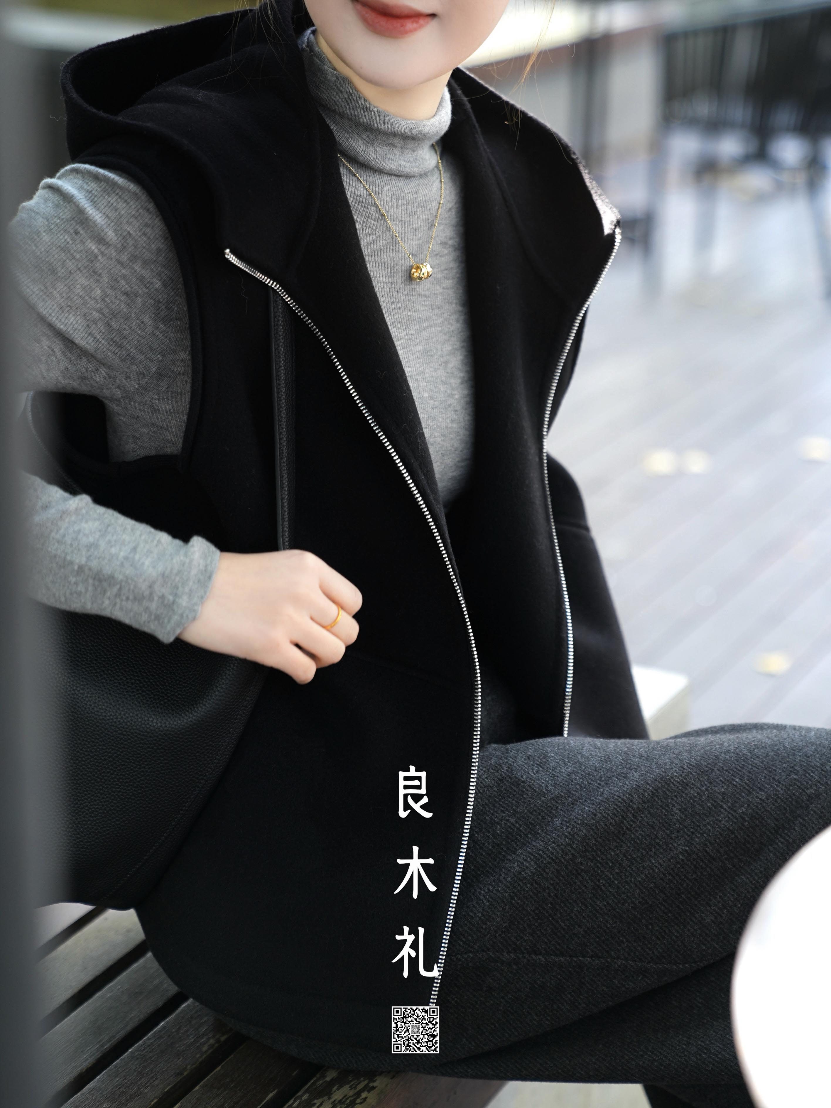 【特价不退换】【部分现货】良木礼羊毛连帽马甲(D2592638)