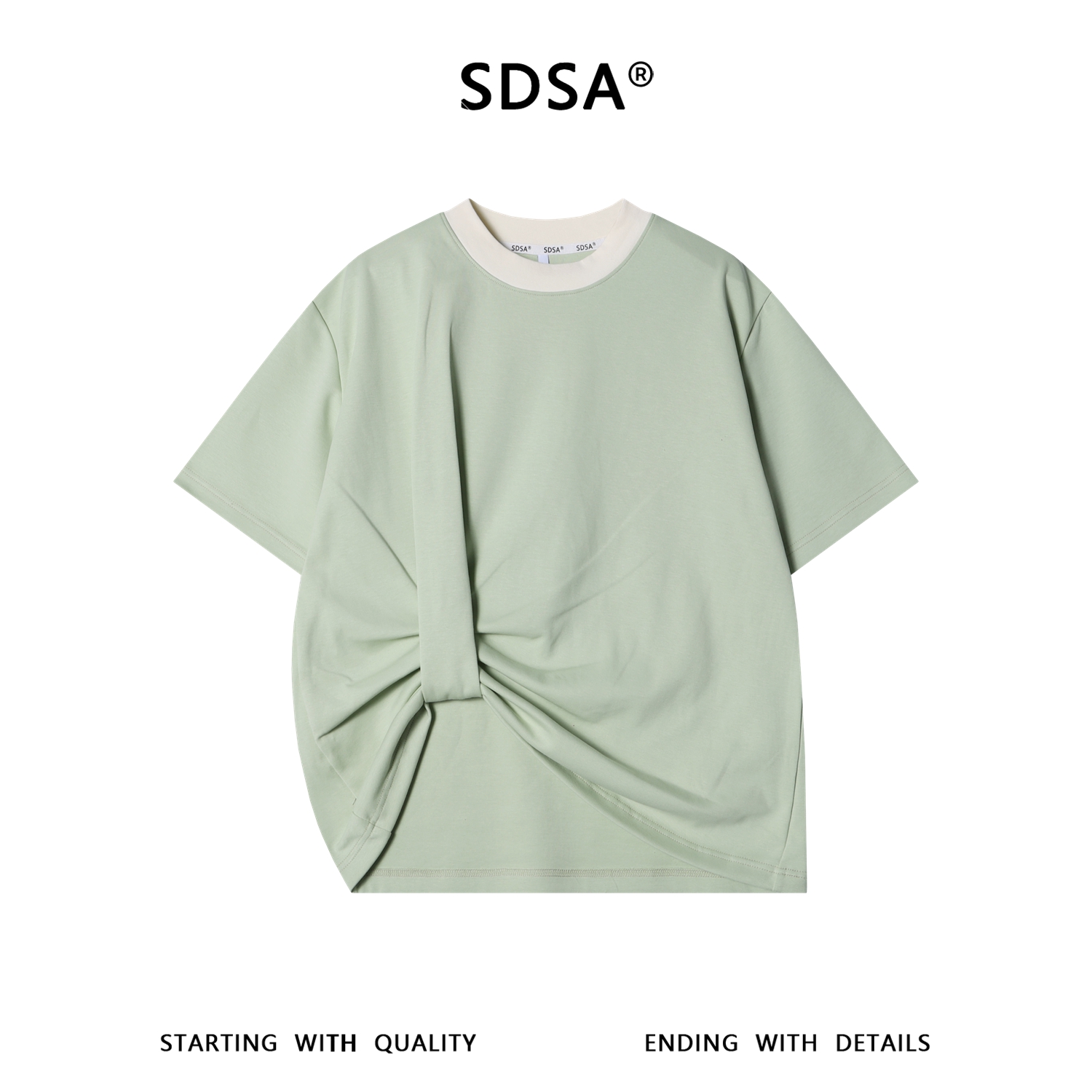 SDSA男装2026新款高贵轻奢小众设计撞色侧边扭结设计圆领短袖T恤