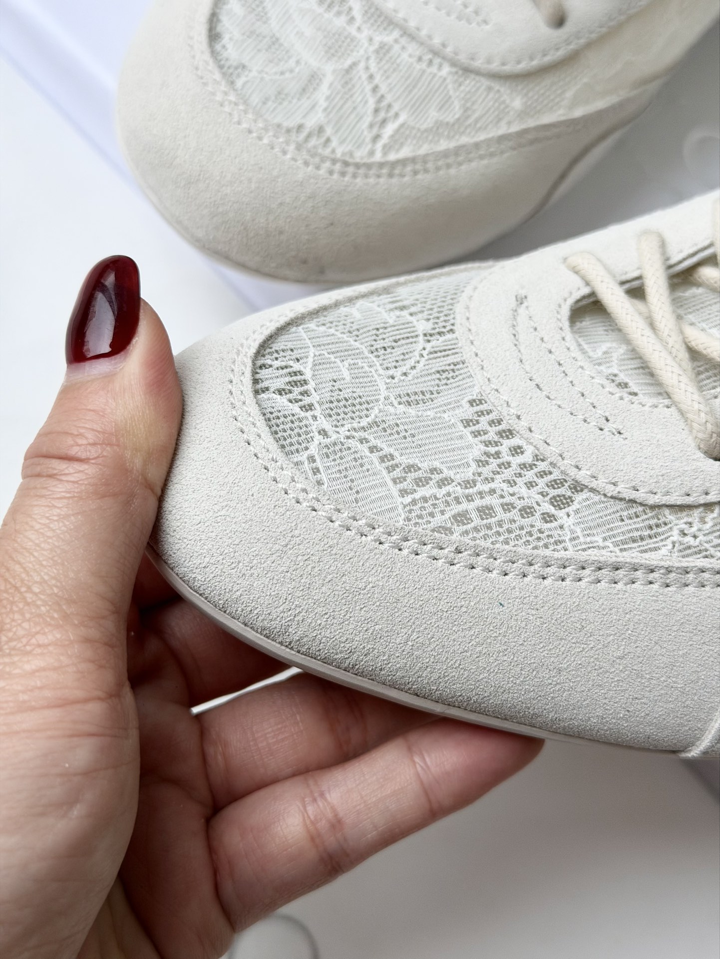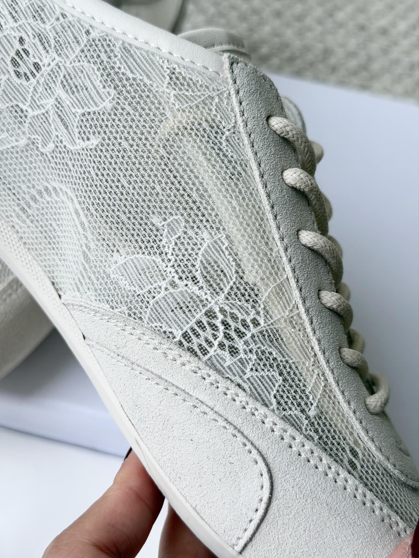 选用花卉蕾丝网面拼接绒面革材质,在保留运动休闲感的同时,融入了法式柔美气息 自带温柔滤镜,无论是搭配牛仔裤还是裙装,都能打造出松弛又精致的造型