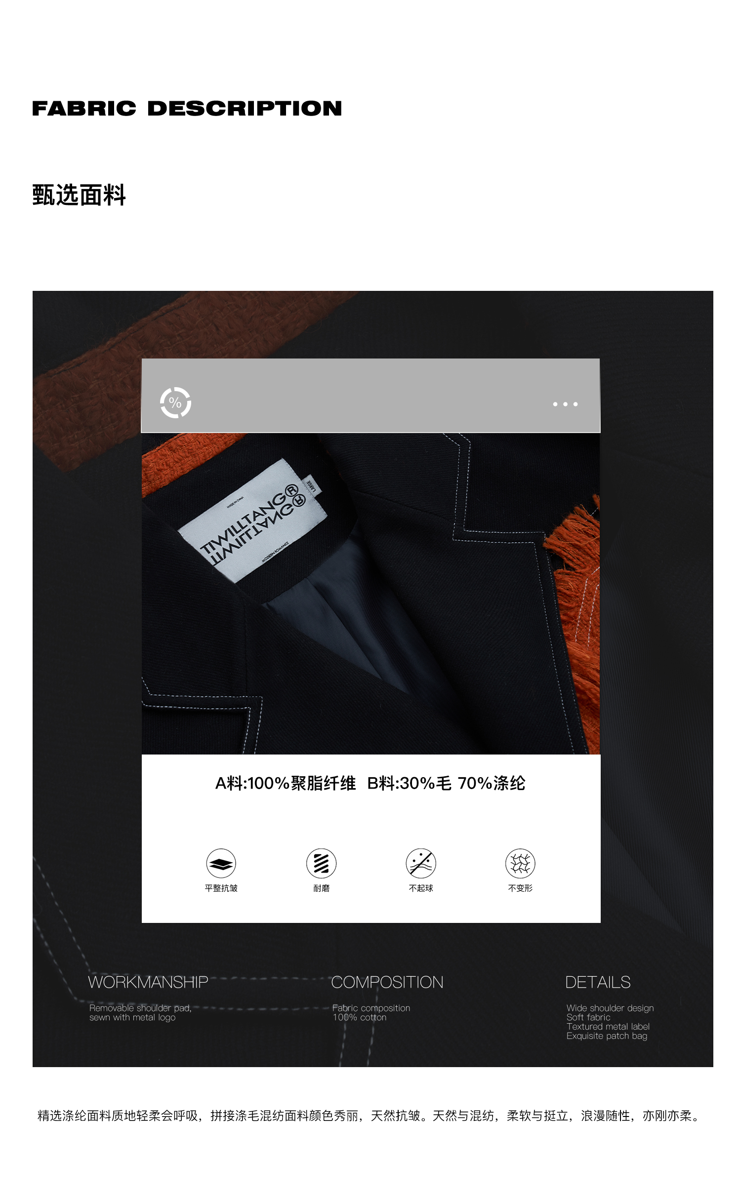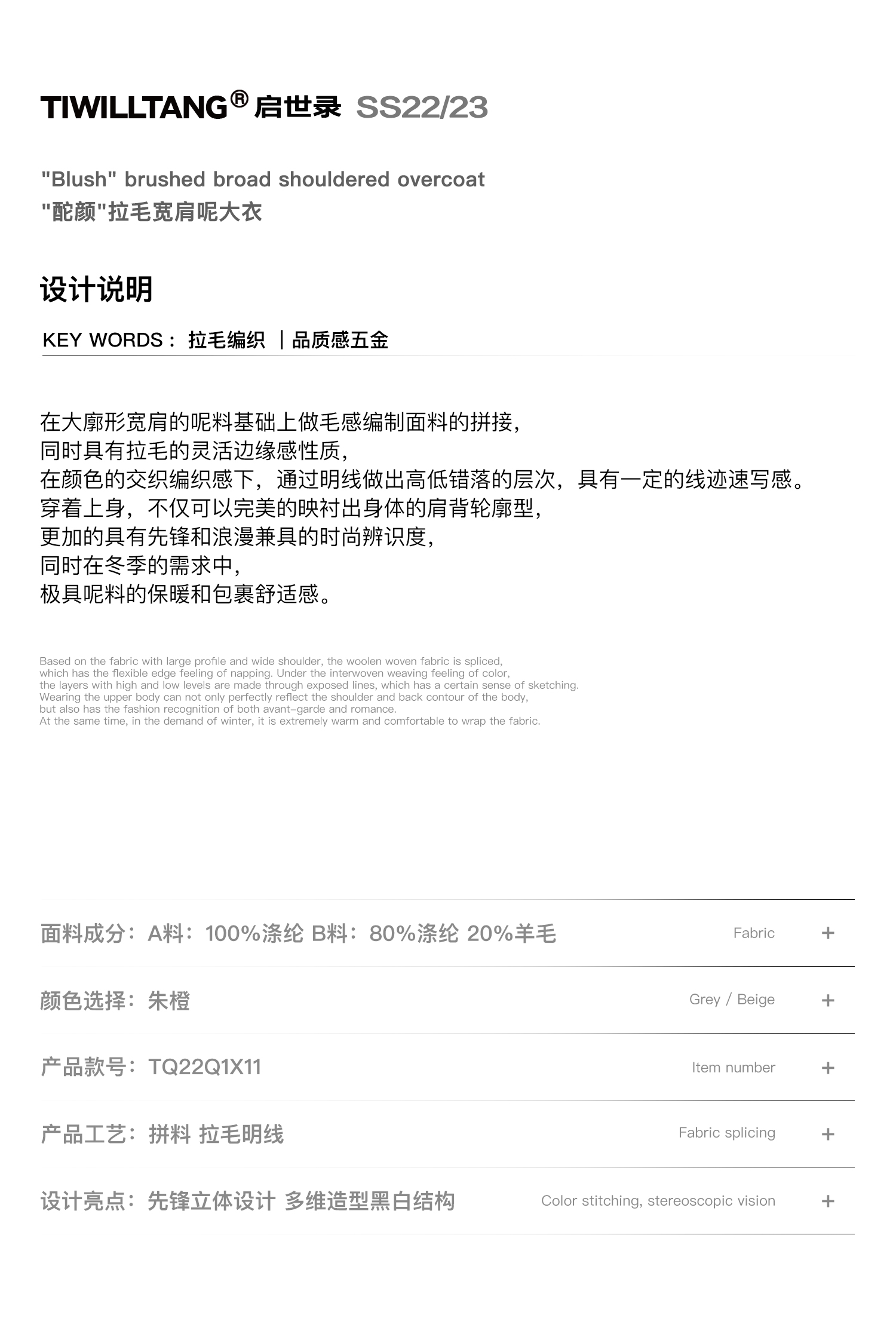 TIWILLTANG启世录"酡颜"拉毛宽肩呢大衣