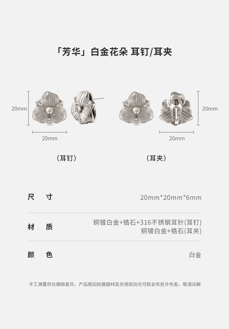 ANGEL ISLAND「芳华」木槿白金花朵耳钉气质耳夹