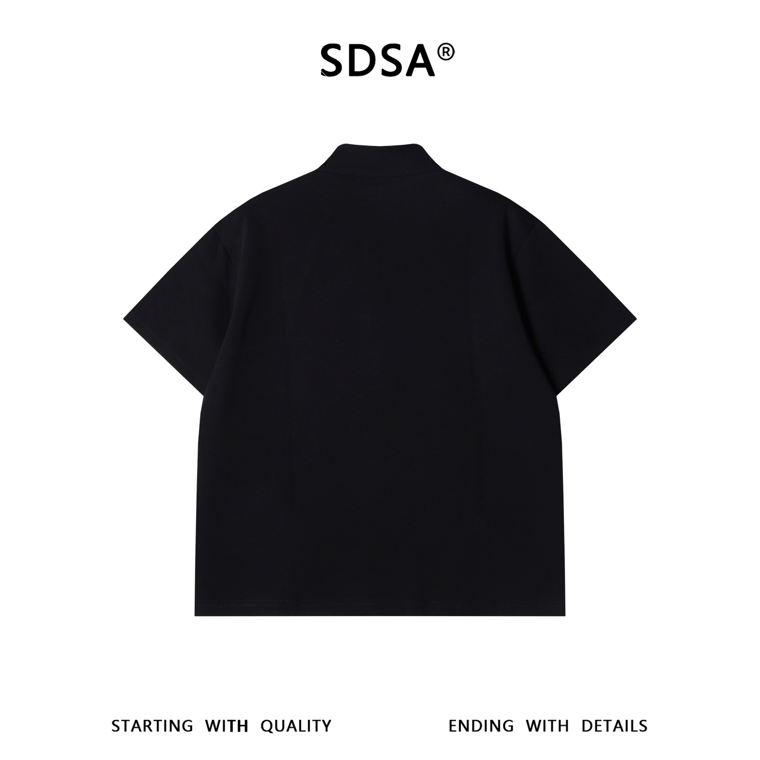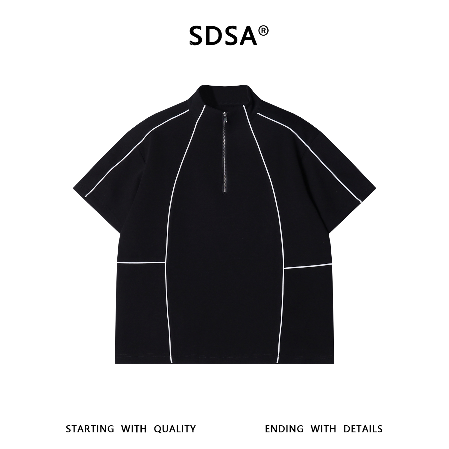 51014SDSA男装2026新款轻奢潮牌半拉链立领短袖T恤撞色明线设计百搭