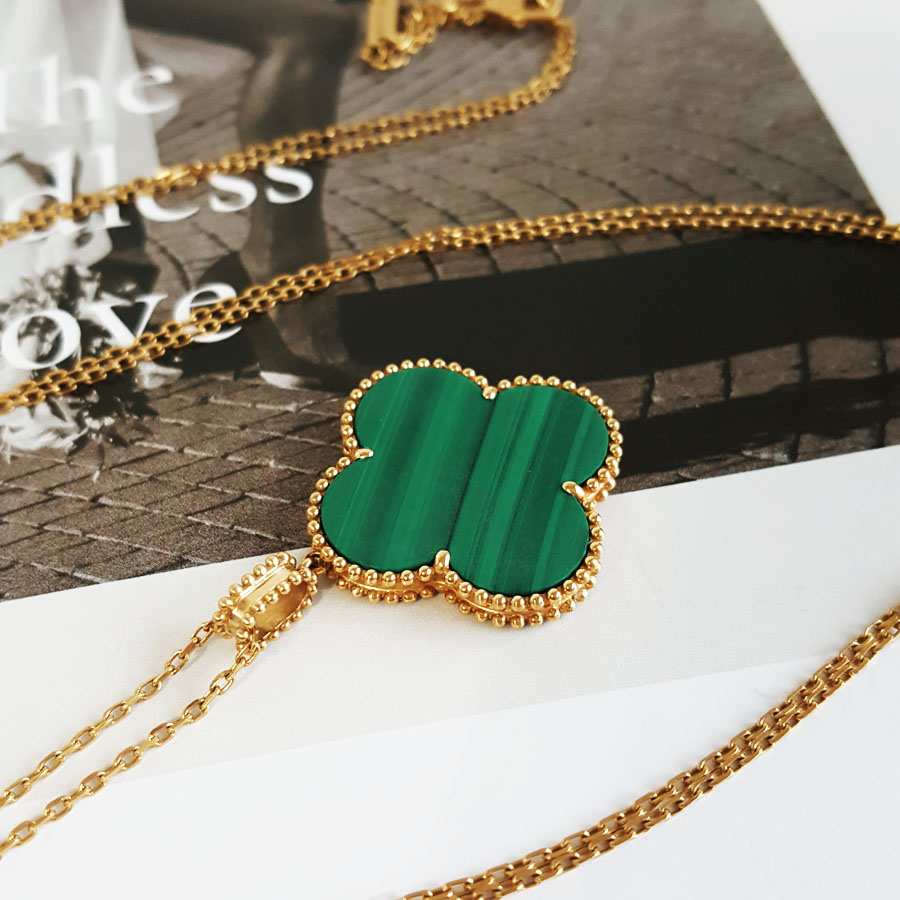 【天然正品】AU750黄金简约时尚高定定制款孔雀石项链毛衣链链长:87CM(长度可调节)女士180925TJ36现售价:6880