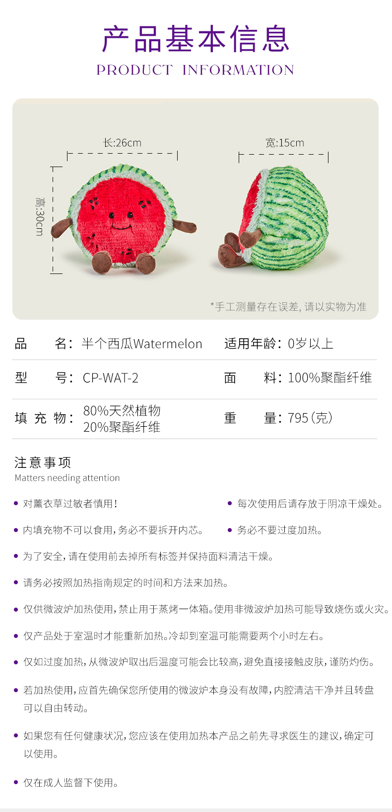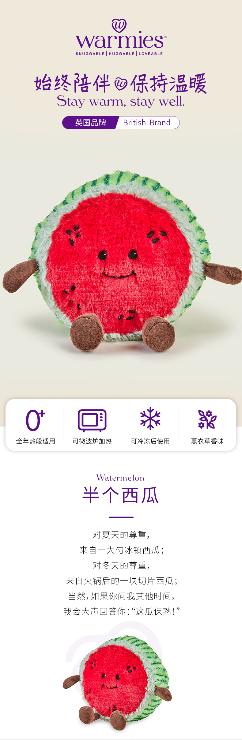 英国warmies 半个西瓜安抚玩偶公仔送礼毛绒可加热抱枕