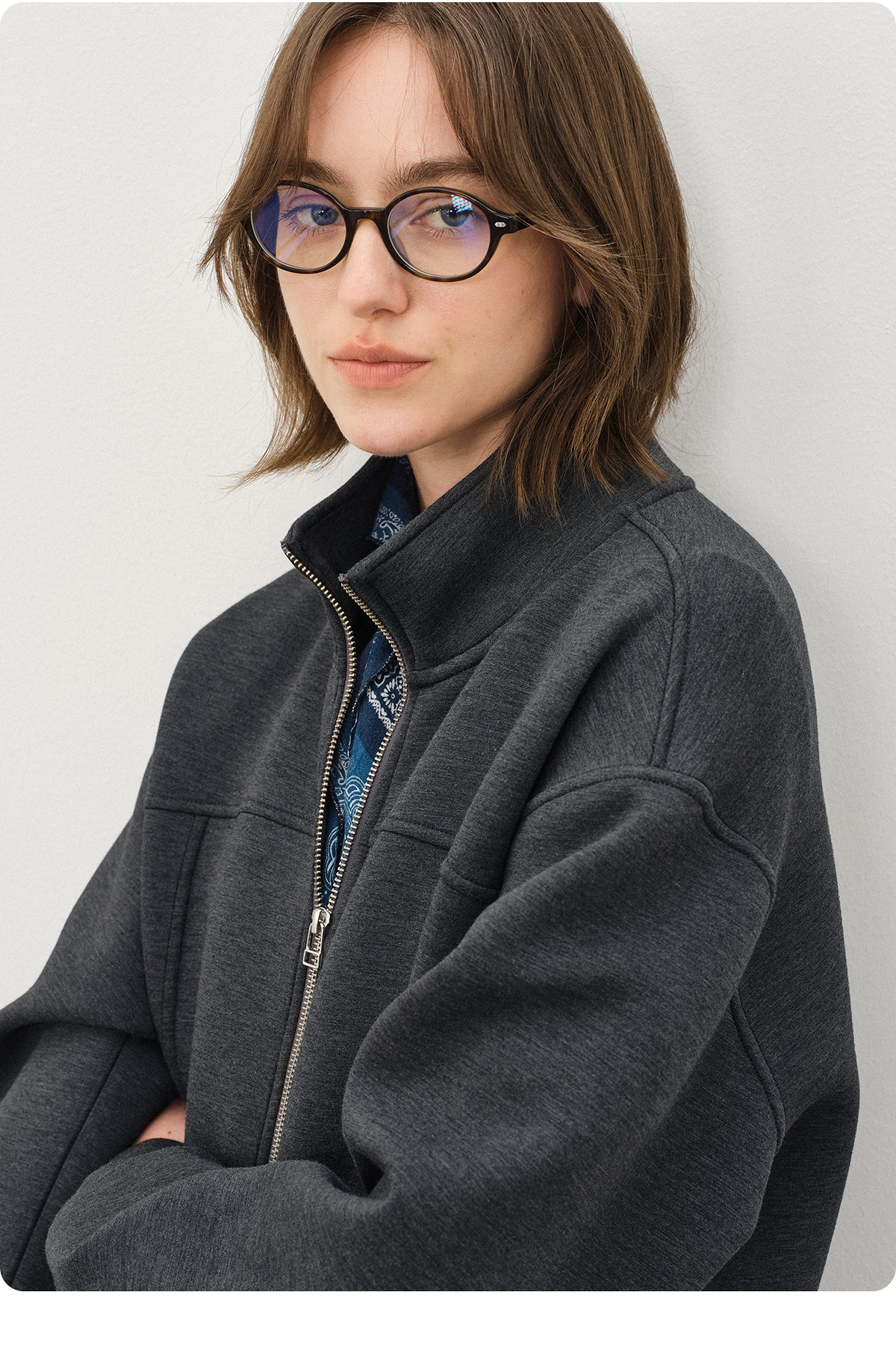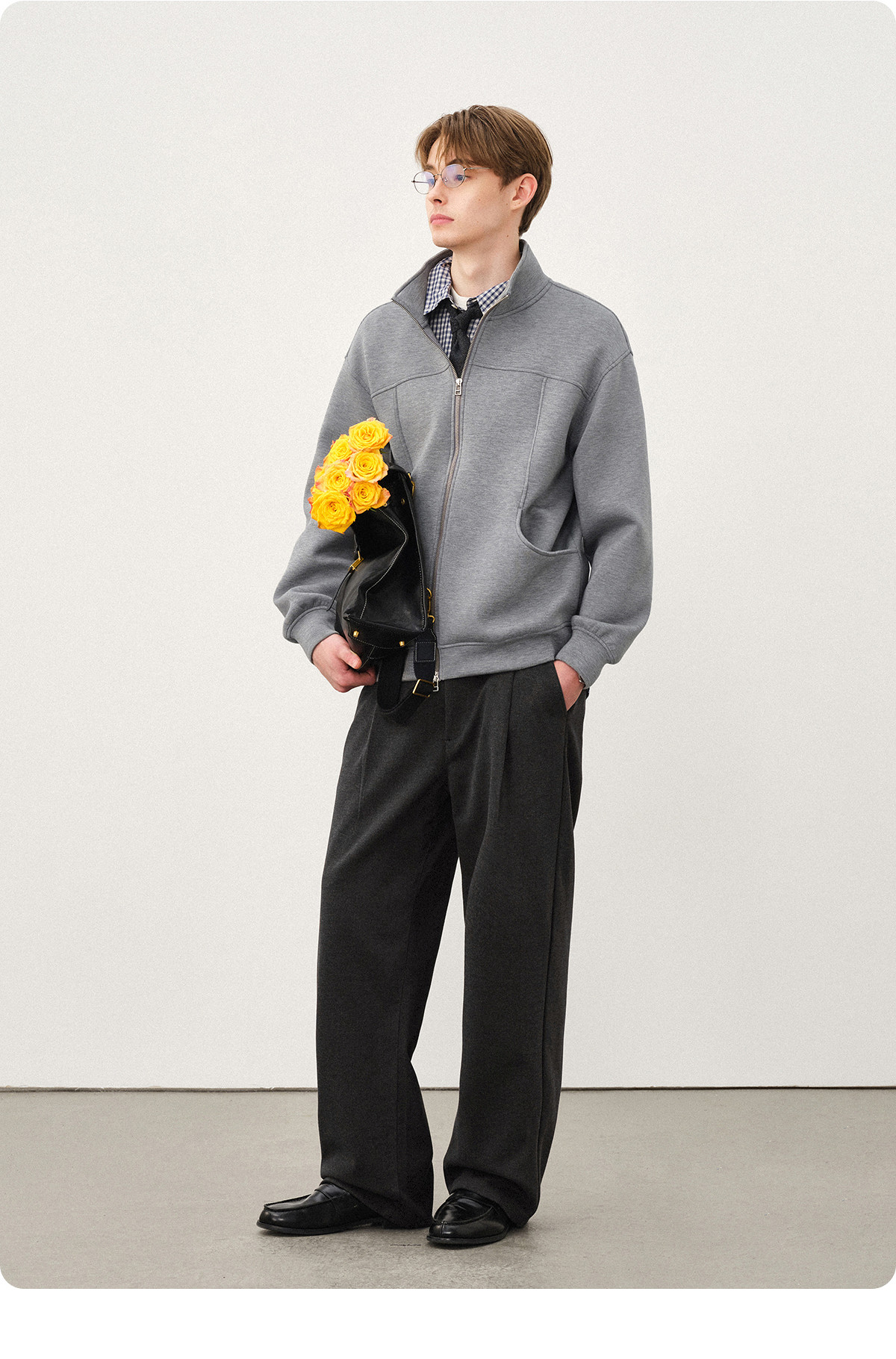 714street美式短廓版型拼接卫衣男2025秋冬新款宽松立领夹克外套