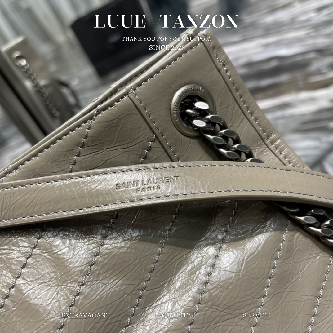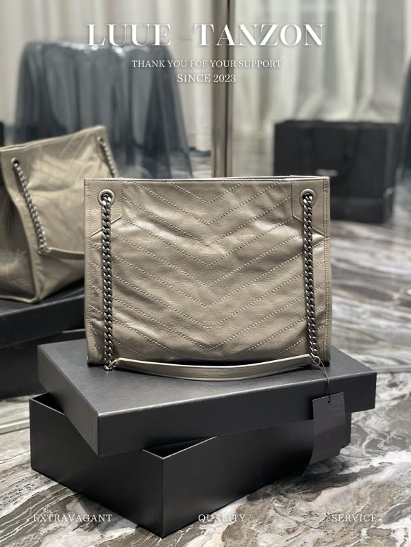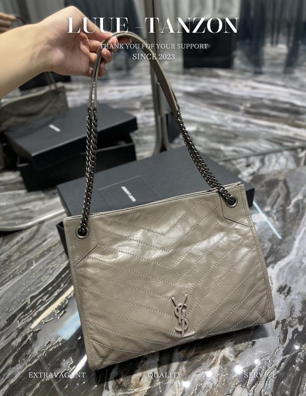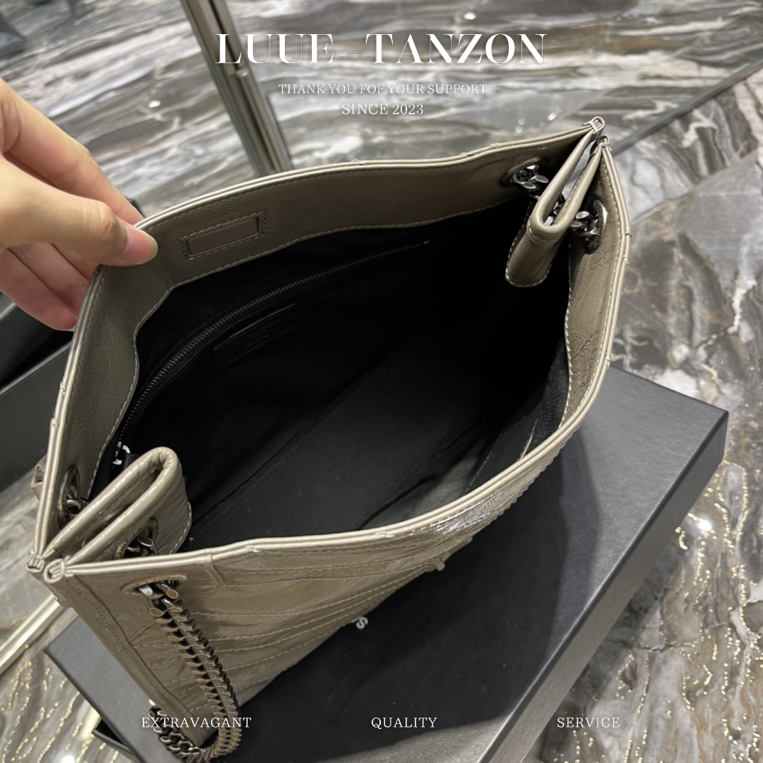 YL Niki Logo标识 复古 褶皱皮革 大容量 托特包 链条单肩手提包 大号 女款 经典推荐