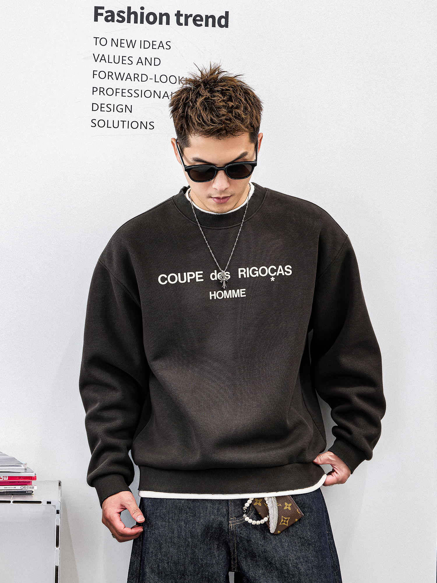 徐太浪【字母印花 休闲风】帅气套头卫衣男秋冬款内搭打底衫上衣