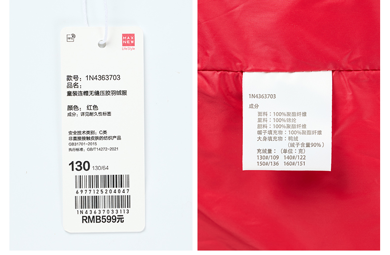【棉羽】童装连帽无缝压胶羽绒服1N4363703