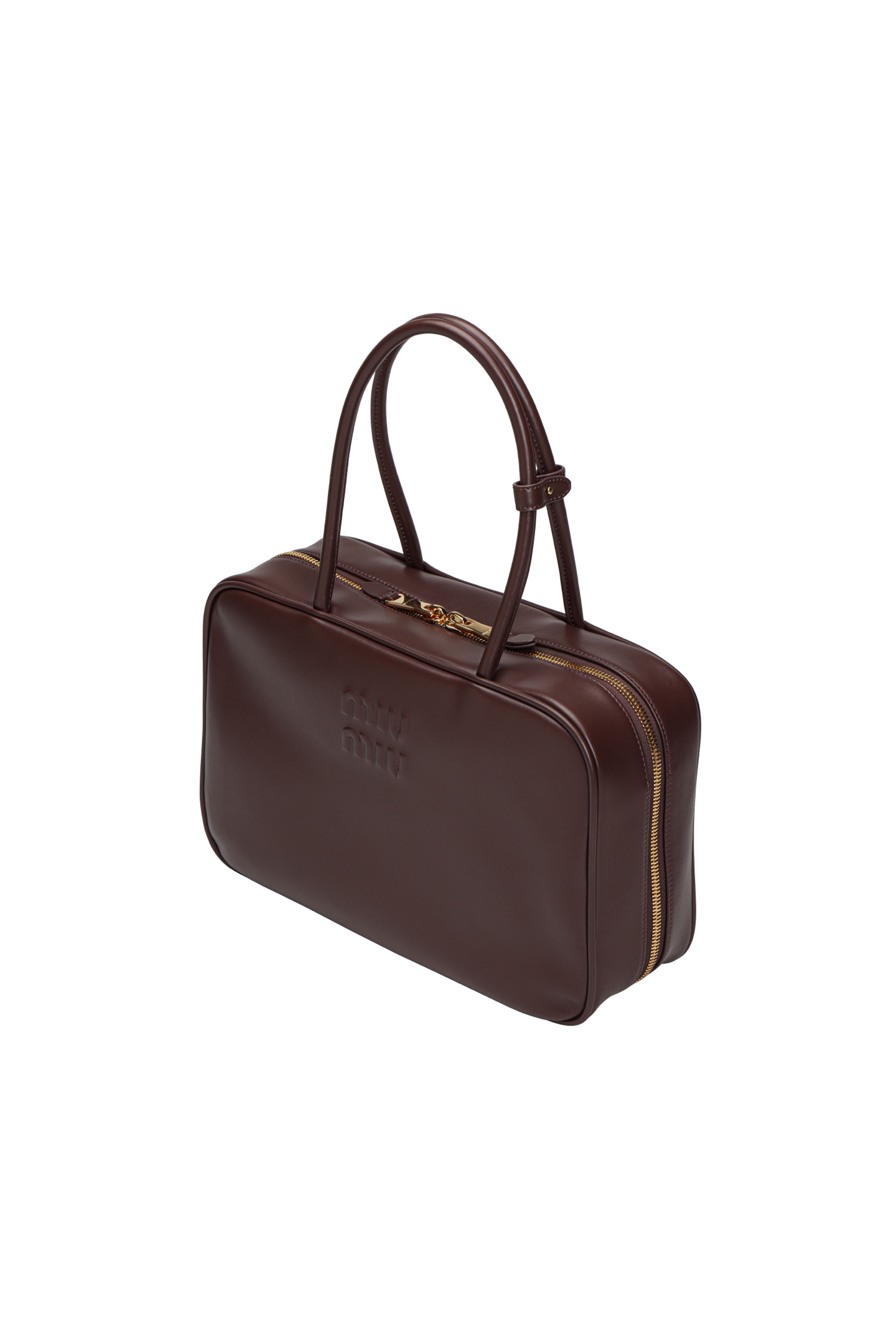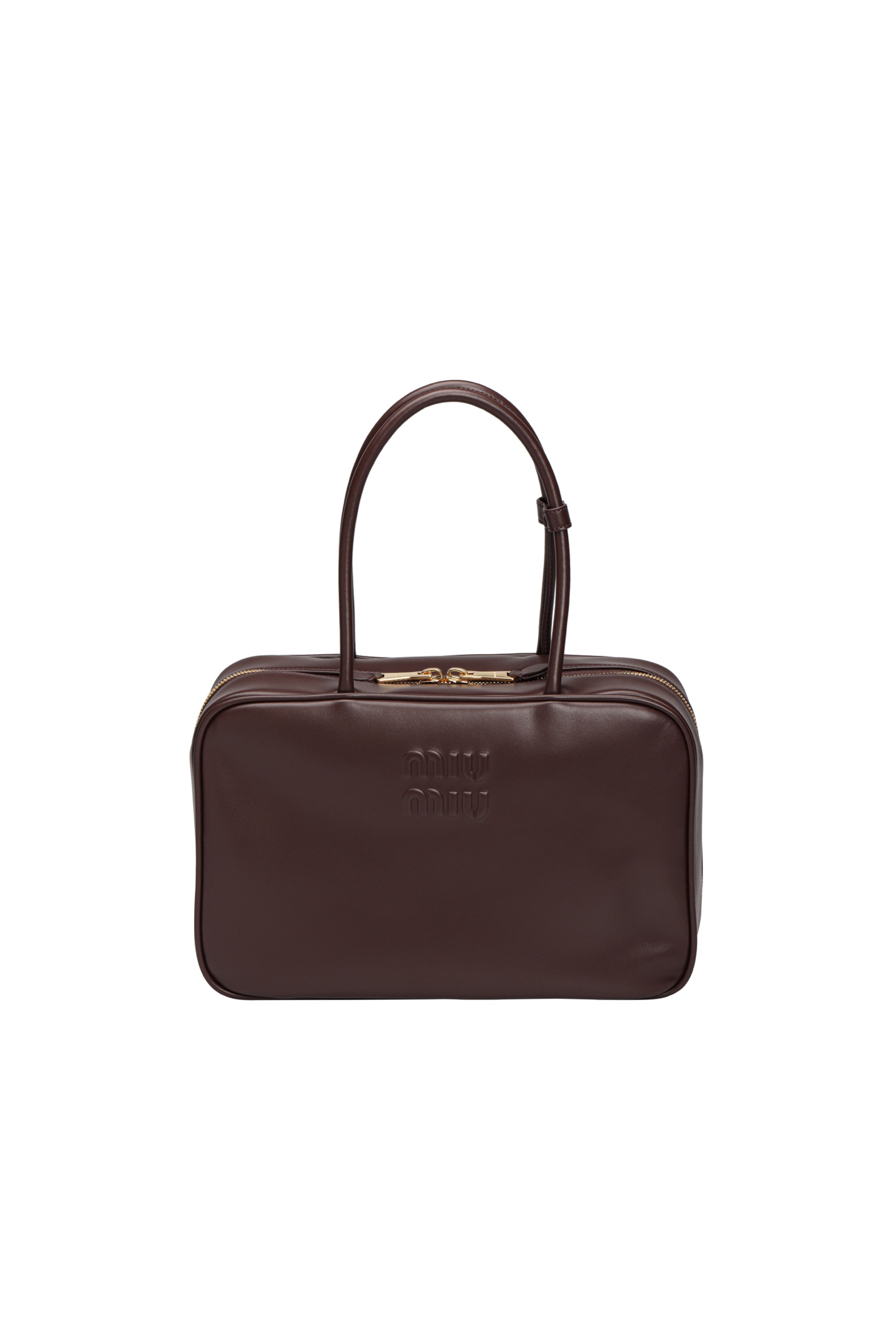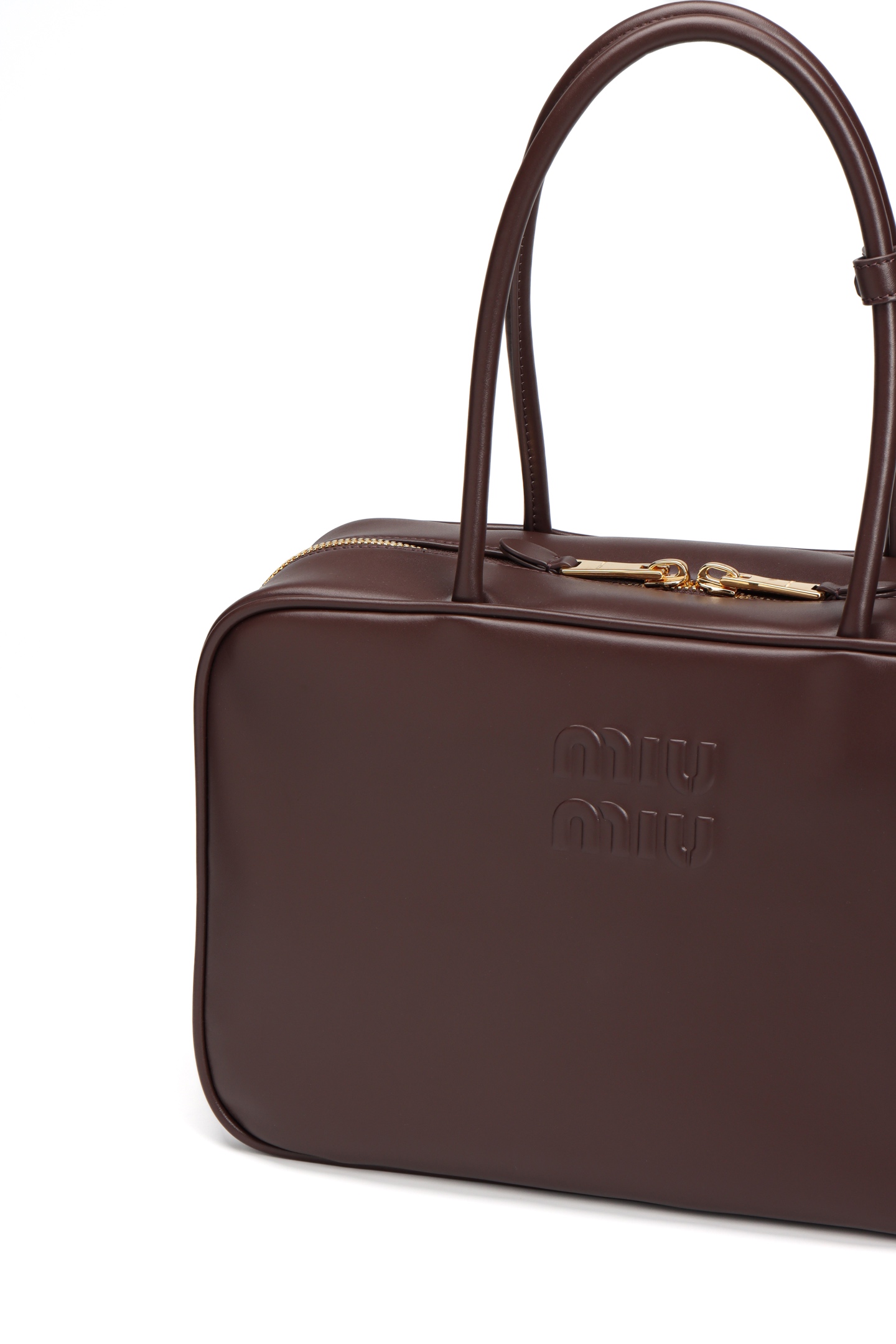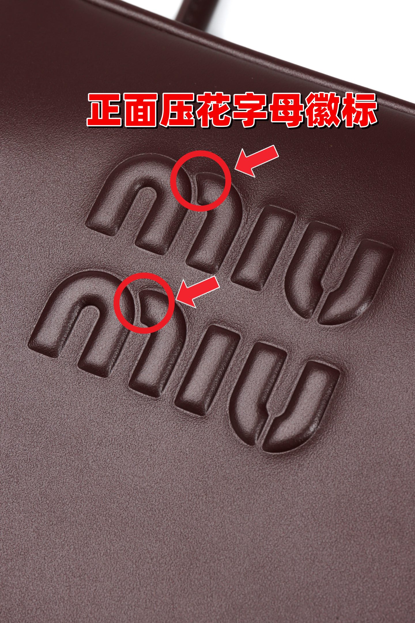 🟫𝐌𝐢𝐮𝐌𝐢𝐮 𝐁𝐞𝐚𝐮&石南木色|细节图 🔔Beau手袋采用柔软光滑皮革,镀金色五金配件等精致细节格外出众,压花字母徽标彰显经典格调。 * 皮革提手,适合用作手提包或单肩包 * 镀金色五金配件 * 正面压花字母徽标 * 拉链包口 * 棉缎衬里,双拉链口袋