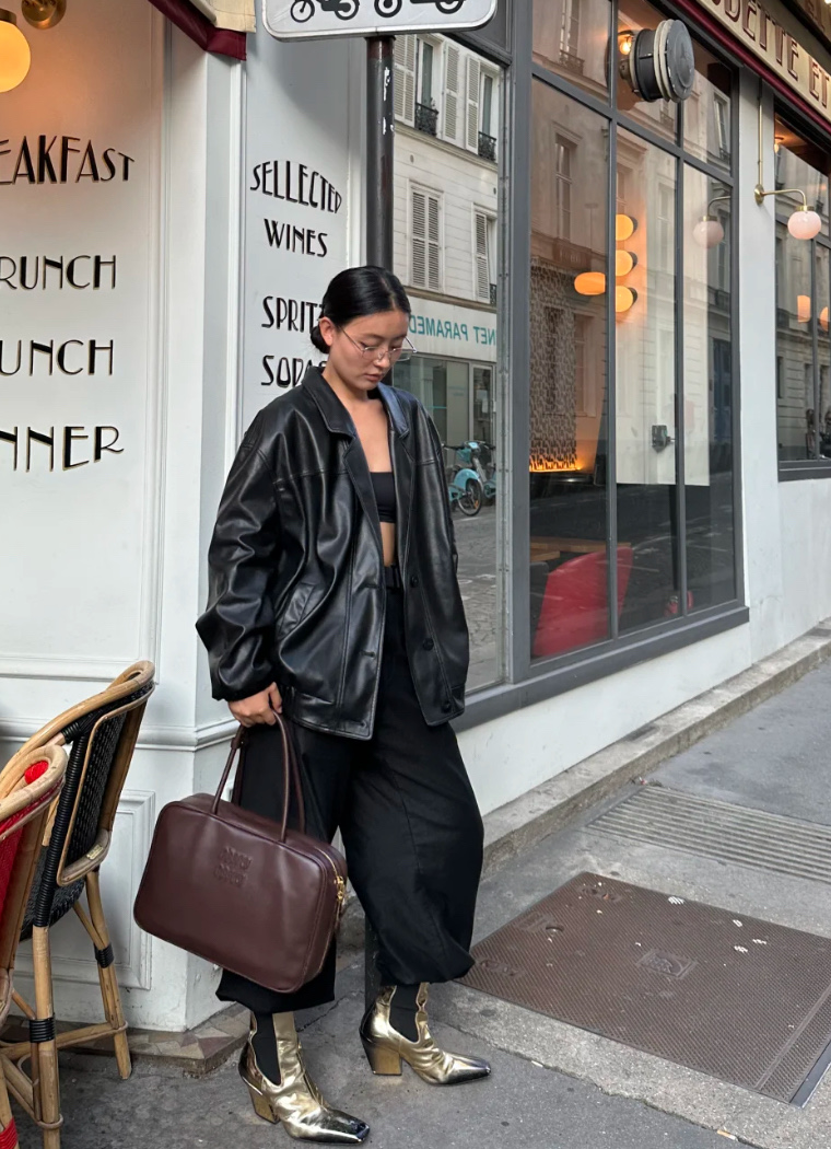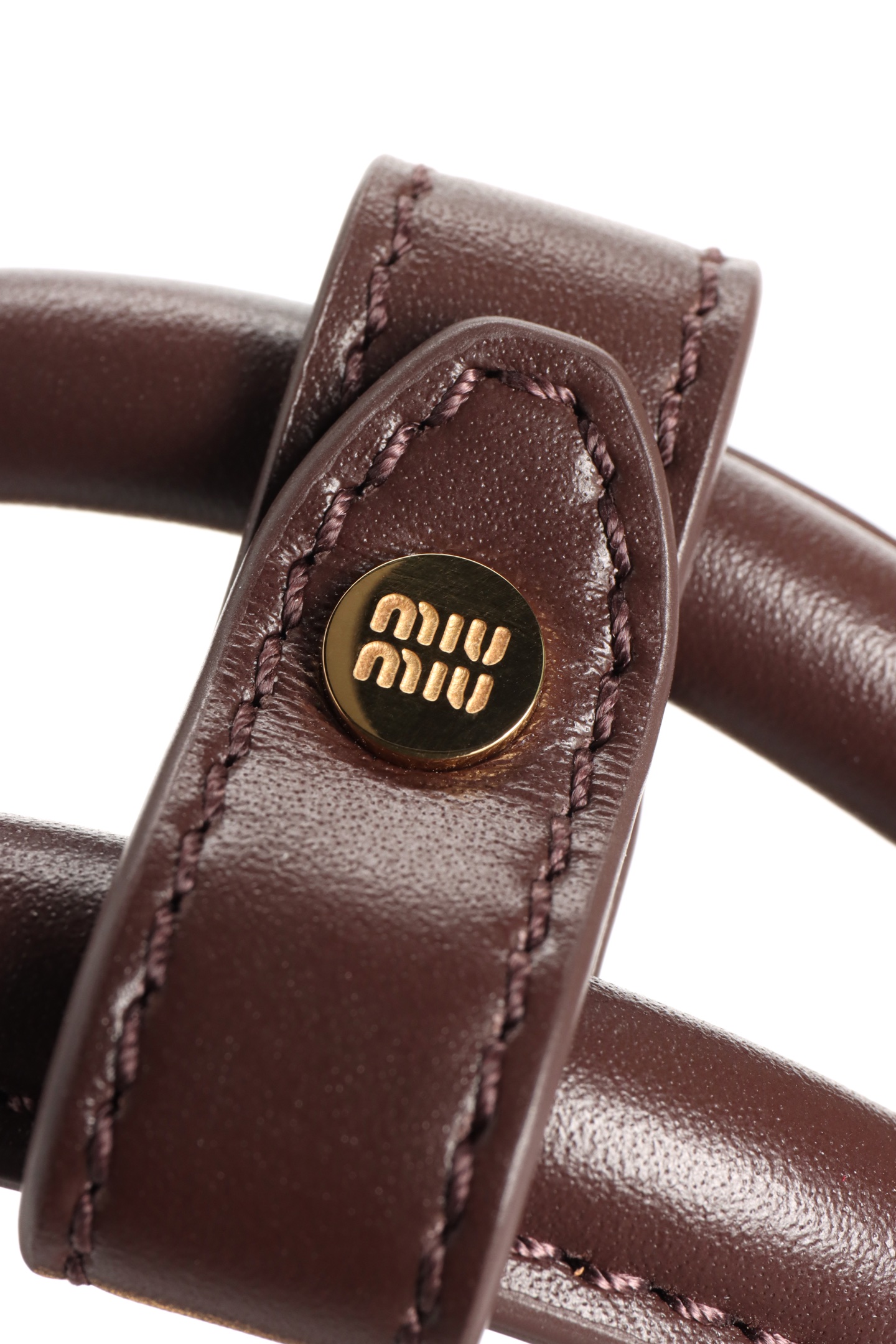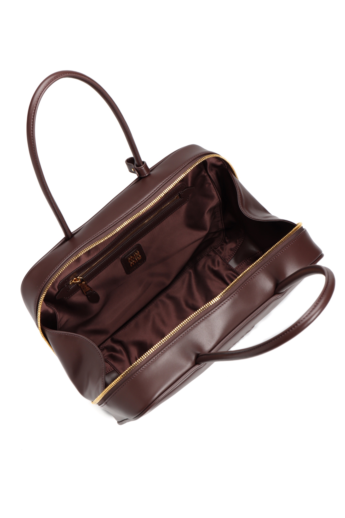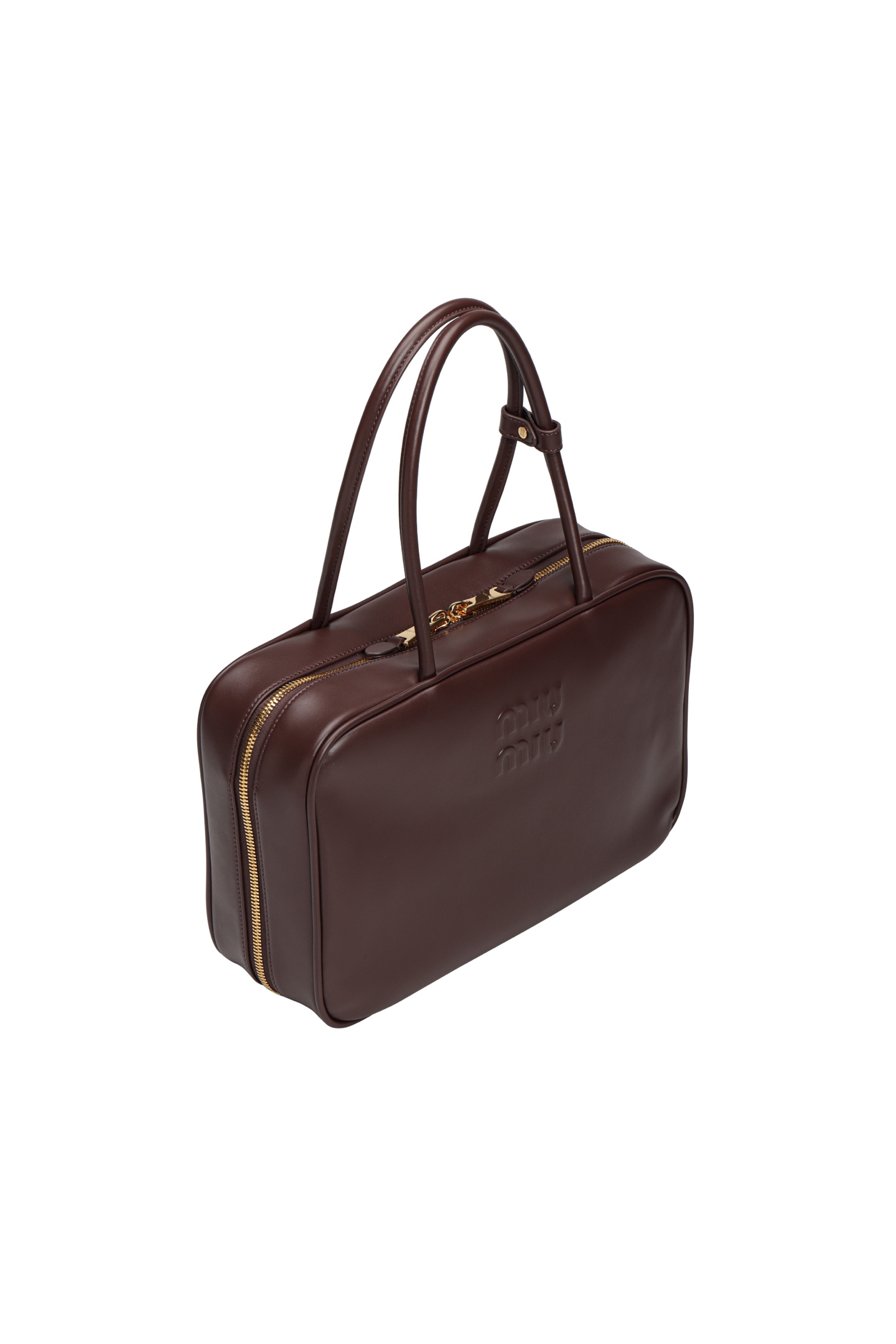 🟫𝐌𝐢𝐮𝐌𝐢𝐮 𝐁𝐞𝐚𝐮&石南木色|细节图 🔔Beau手袋采用柔软光滑皮革,镀金色五金配件等精致细节格外出众,压花字母徽标彰显经典格调。 * 皮革提手,适合用作手提包或单肩包 * 镀金色五金配件 * 正面压花字母徽标 * 拉链包口 * 棉缎衬里,双拉链口袋