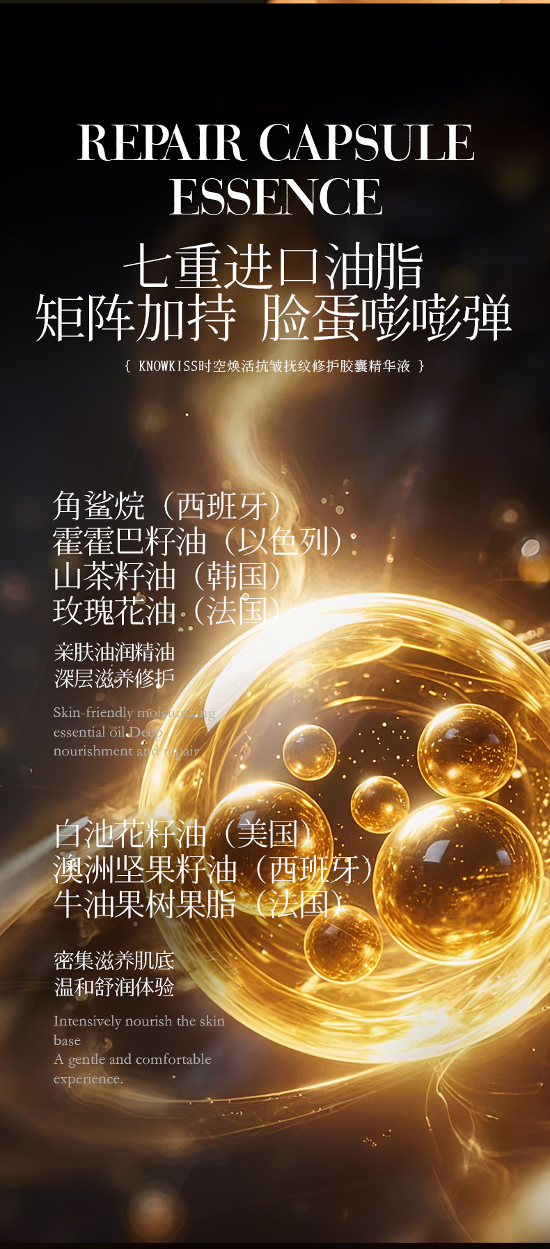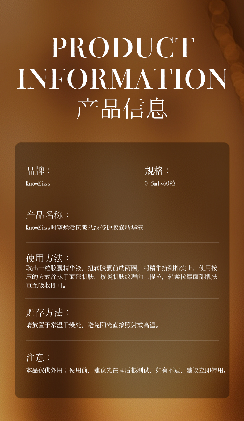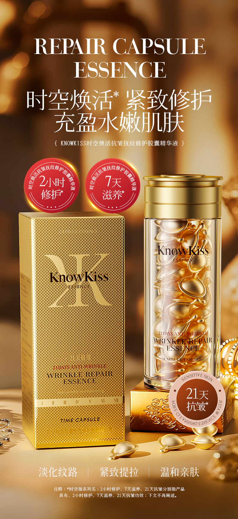【全肤质】KnowKiss时空焕活抗皱抚纹修护胶囊精华液60粒*3(金胶)